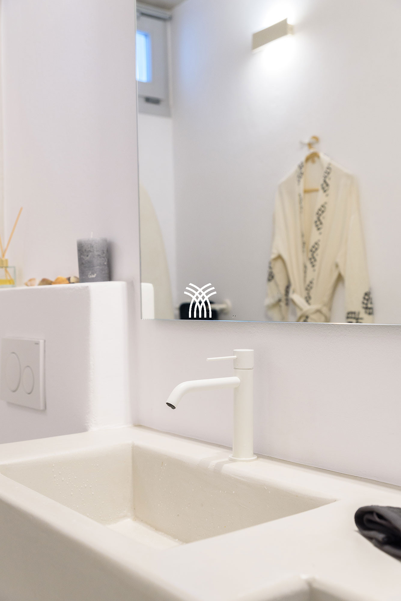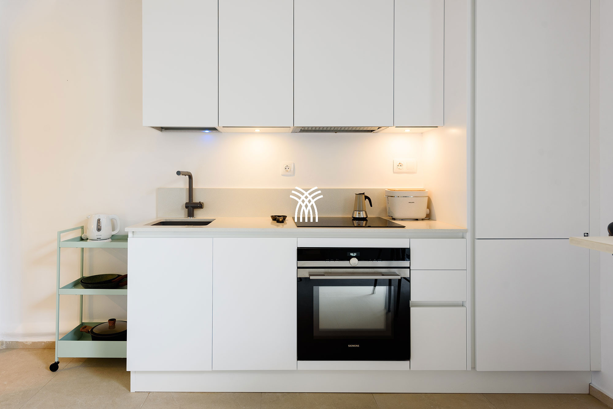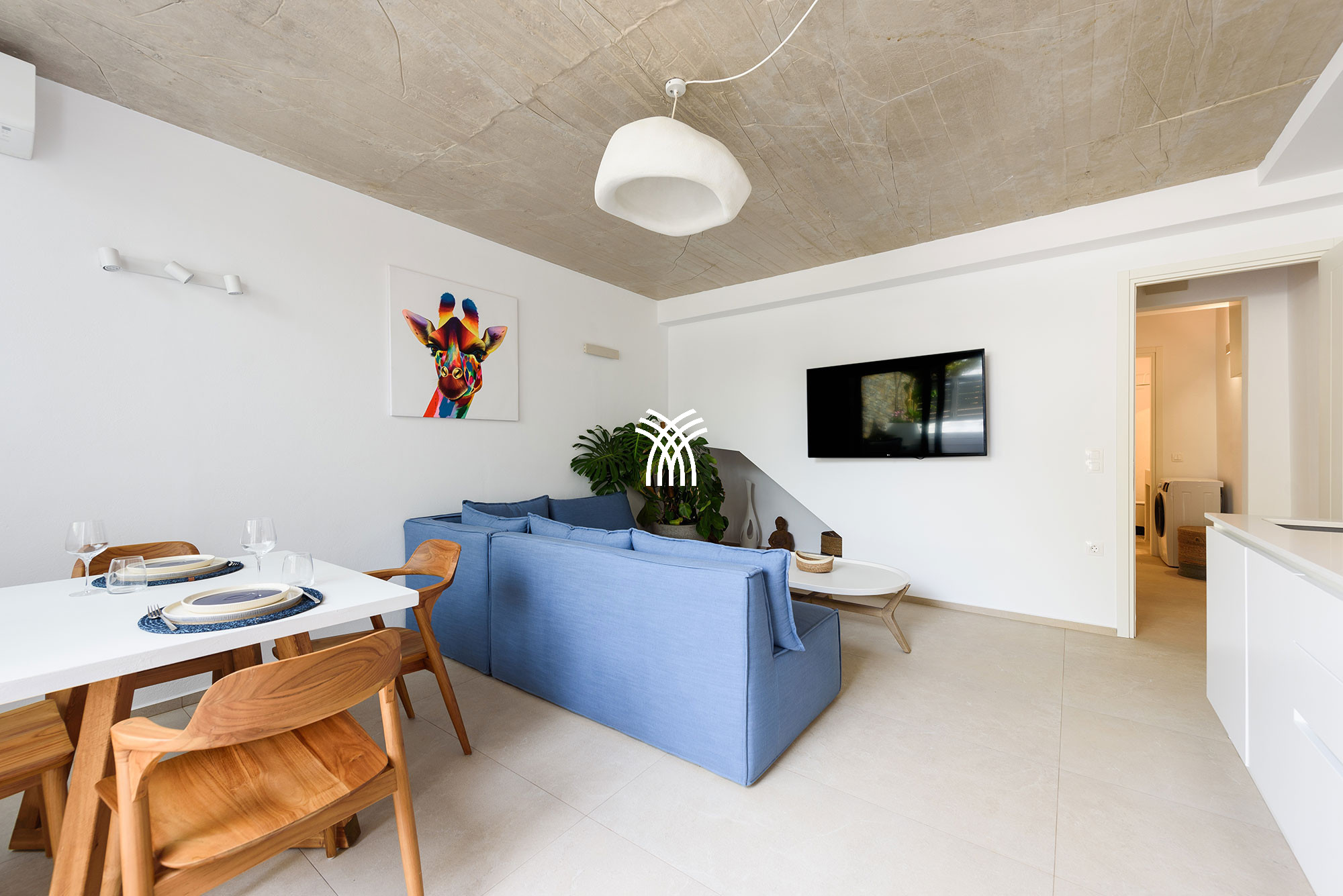 Une unité indépendante supplémentaire, connue sous le nom d'Akoya Pearl 2, est un appartement de 65 m² situé dans le sous-sol de la villa. Il est relié en interne par un escalier avec une double porte et un verrou pour garantir l'intimité et la séparation, et il est également accessible par un portail externe dédié près de l'entrée principale. Cet appartement comprend une cuisine entièrement équipée donnant sur un spacieux séjour et une salle à manger, un couloir menant à une petite réserve idéale pour les articles et accessoires de plage, et une chambre avec deux lits jumeaux qui peuvent être séparés, complétée par un canapé-lit convertible pour un troisième invité et une salle de bain privative.
