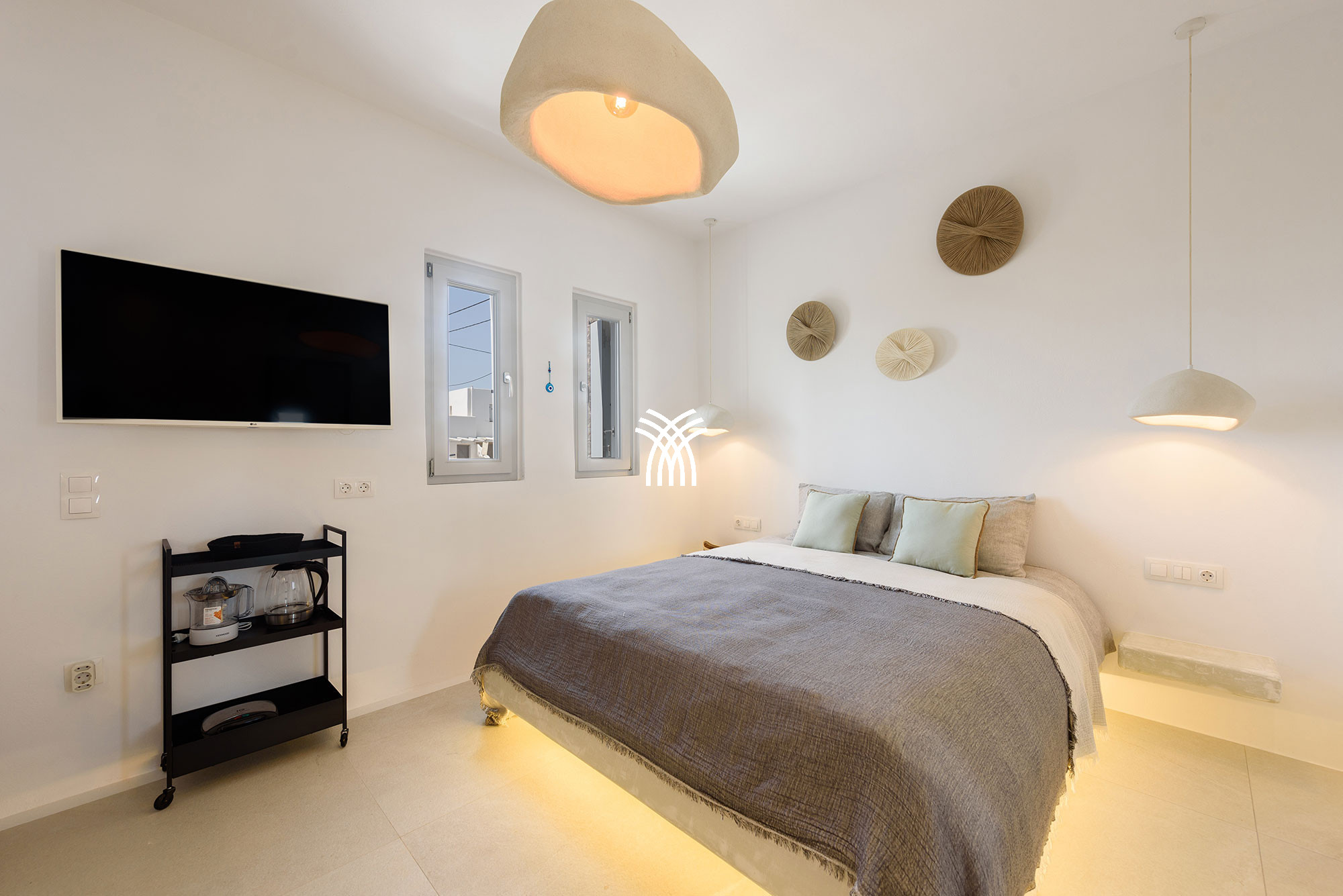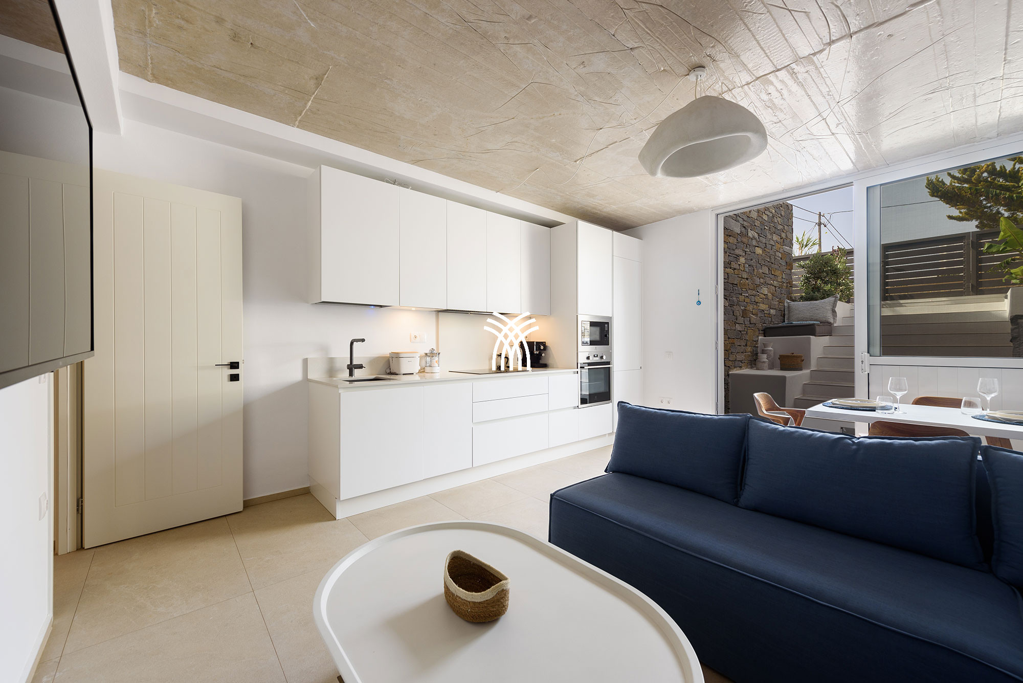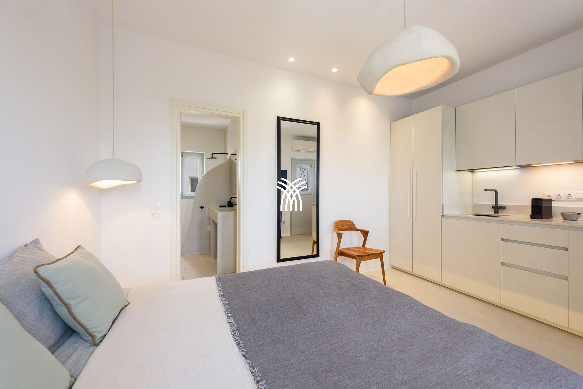 La villa dispose de quatre chambres spacieuses, chacune avec sa propre salle de bain attenante, offrant une atmosphère de confort et de discrétion qui sublime chaque séjour. Conçus avec une attention méticuleuse aux détails, les intérieurs révèlent une esthétique sophistiquée où les équipements modernes et la décoration élégante se mêlent harmonieusement. Les espaces de vie ouverts relient le salon, la salle à manger et la cuisine dans une disposition fluide et accueillante, créant un environnement lumineux idéal pour des moments partagés et une détente sans effort. De grandes fenêtres et des portes vitrées invitent une abondante lumière naturelle tout en encadrant des vues pittoresques du paysage environnant, renforçant le sentiment d'ouverture et de connexion avec la nature qui caractérise une location de villa de luxe à Paros.