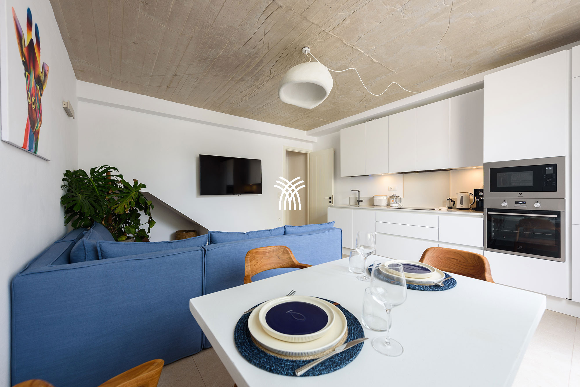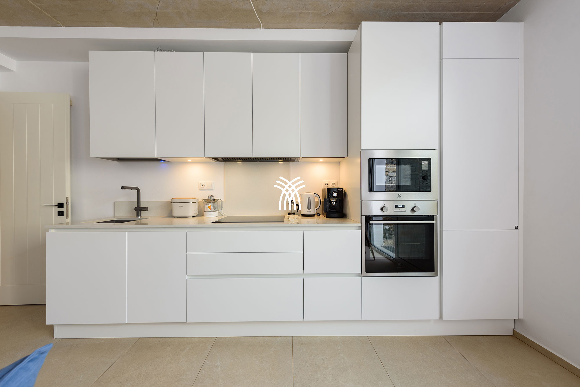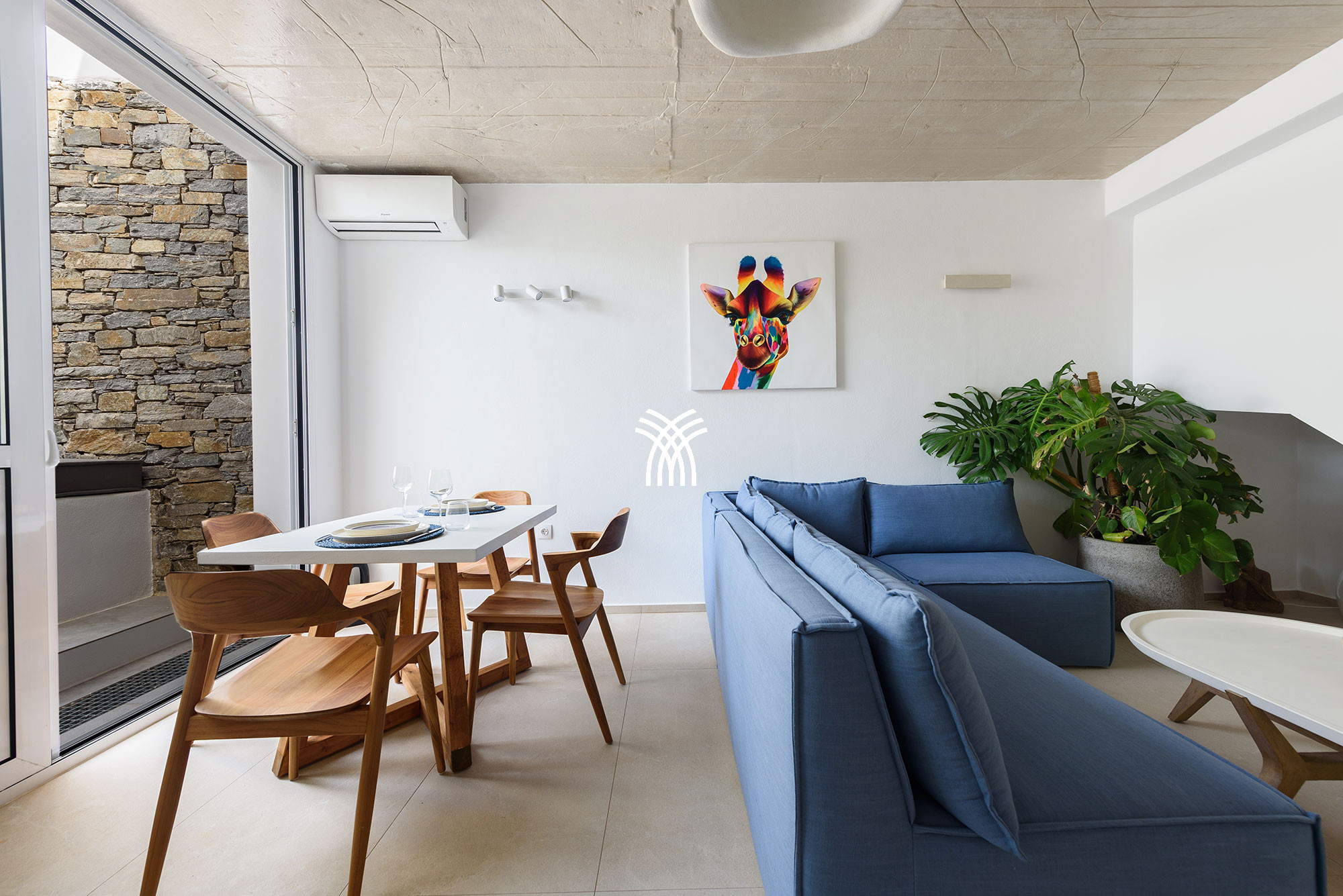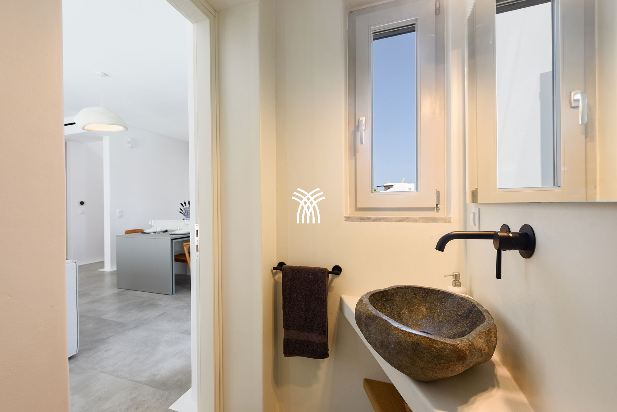 La villa dispose de quatre chambres spacieuses, chacune avec sa propre salle de bain attenante, offrant une atmosphère de confort et de discrétion qui sublime chaque séjour. Conçus avec une attention méticuleuse aux détails, les intérieurs révèlent une esthétique sophistiquée où les équipements modernes et la décoration élégante se mêlent harmonieusement. Les espaces de vie ouverts relient le salon, la salle à manger et la cuisine dans une disposition fluide et accueillante, créant un environnement lumineux idéal pour des moments partagés et une détente sans effort. De grandes fenêtres et des portes vitrées invitent une abondante lumière naturelle tout en encadrant des vues pittoresques du paysage environnant, renforçant le sentiment d'ouverture et de connexion avec la nature qui caractérise une location de villa de luxe à Paros.