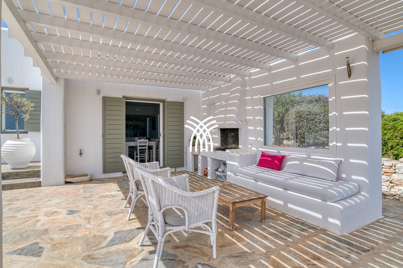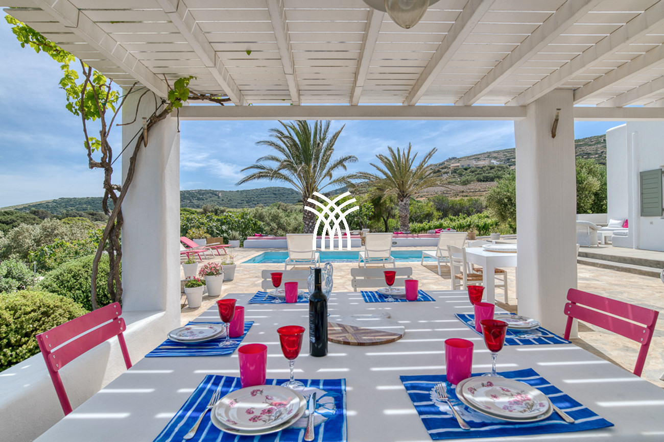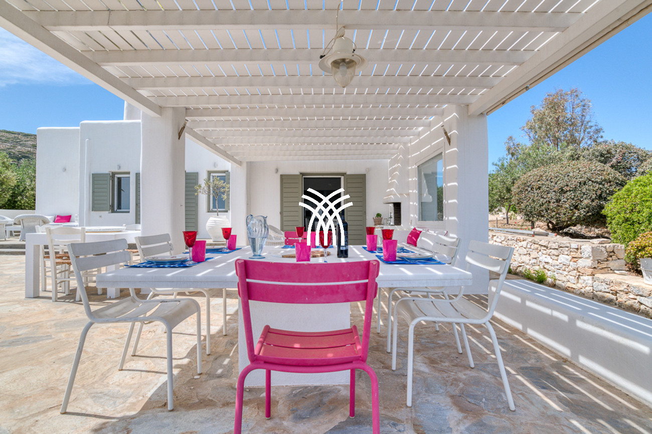 La vie en extérieur se déploie à travers plusieurs espaces soigneusement conçus, où le rythme de la vie insulaire est embrassé du lever au coucher du soleil. Que ce soit en se détendant près de la piscine, en partageant des repas sous le ciel ouvert ou simplement en contemplant l'horizon sans fin, les invités sont immergés dans une atmosphère de calme et d'inspiration, où la nature et le design convergent en parfaite harmonie. Les vues panoramiques sur Paros et Naxos offrent un arrière-plan en constante évolution, transformant chaque moment en une expérience d'une beauté rare.