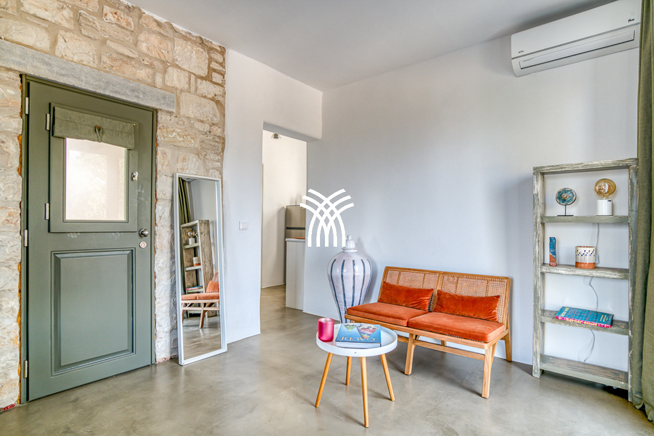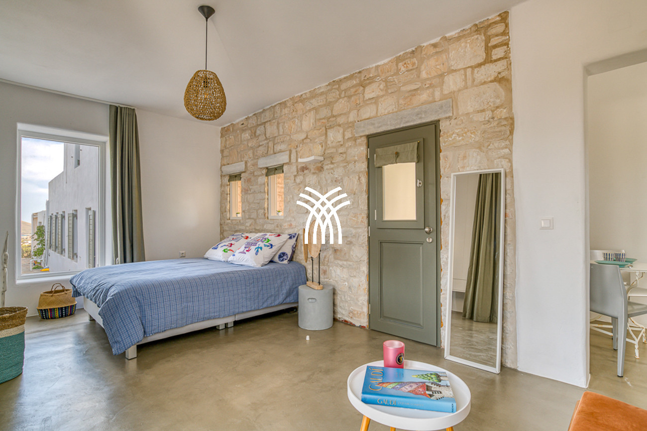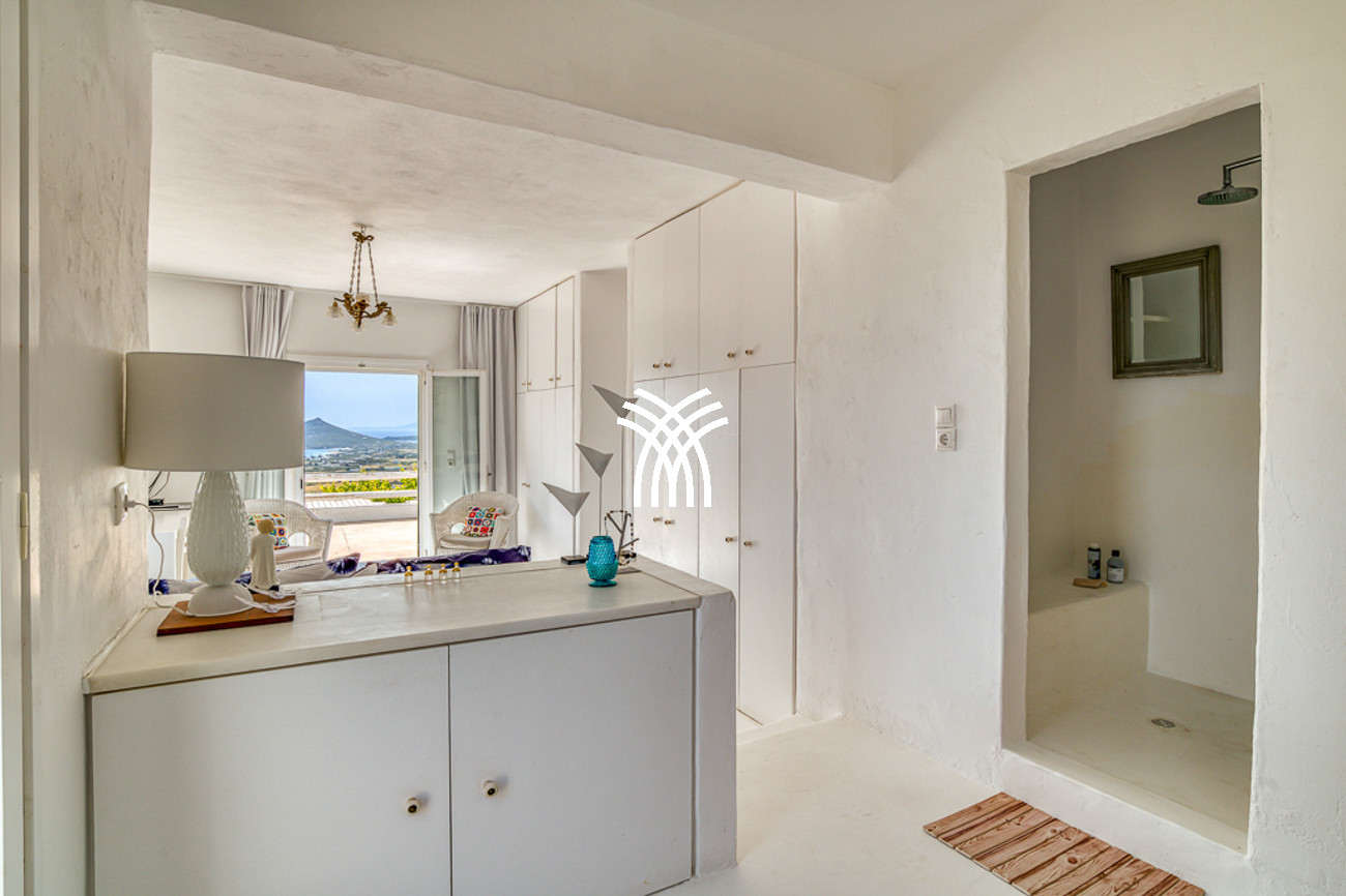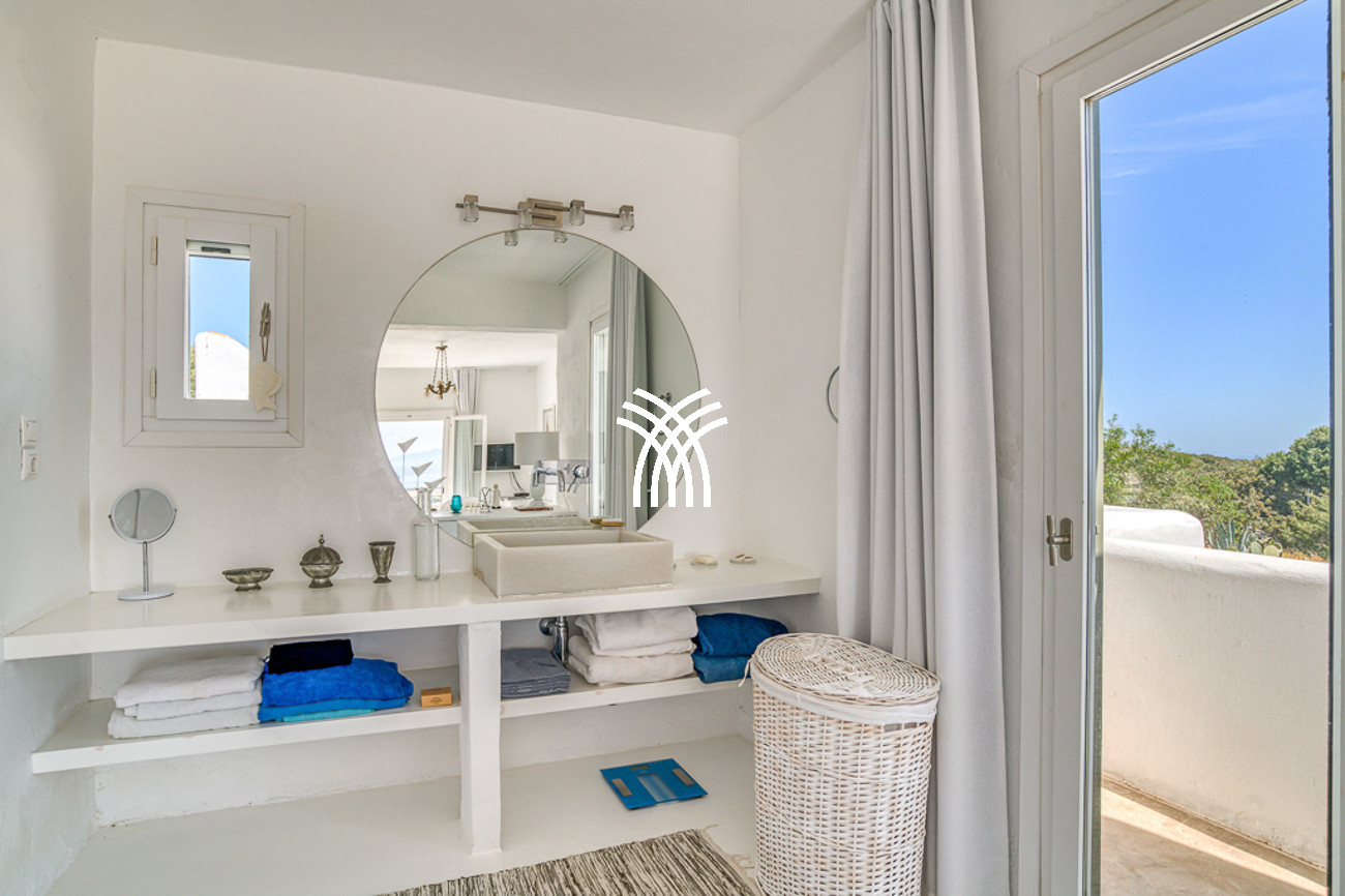 Célébrée comme un chef-d'œuvre de l'architecture cycladique, la conception de la villa est si distinctive qu'elle est exposée au prestigieux Musée Benaki à Athènes, soulignant son importance culturelle et esthétique. Les formes traditionnelles se mêlent harmonieusement aux équipements modernes, créant un dialogue harmonieux entre l'héritage et l'élégance contemporaine. Chaque ligne architecturale et détail intérieur reflète un profond respect de l'identité cycladique, élevé par une approche sophistiquée de la vie moderne.