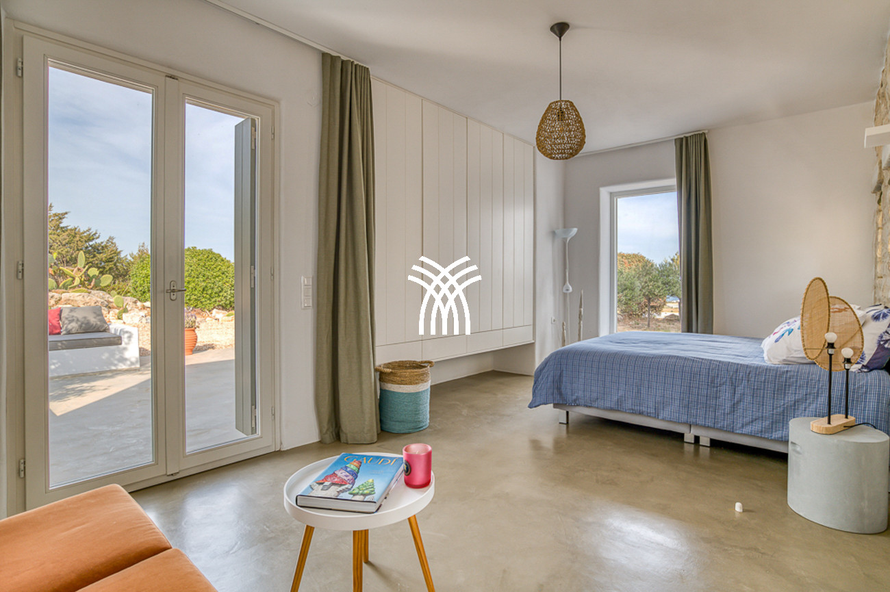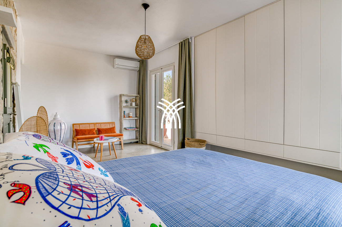La villa dispose de sept chambres spacieuses, dont deux maisons d'hôtes indépendantes, offrant un équilibre idéal entre convivialité et intimité pour les grandes familles ou groupes d'amis. Chaque espace est soigneusement conçu pour offrir confort, discrétion et sérénité, créant une atmosphère où la détente semble naturelle et sans effort dans l'environnement raffiné d'une location de villa de luxe à Paros.