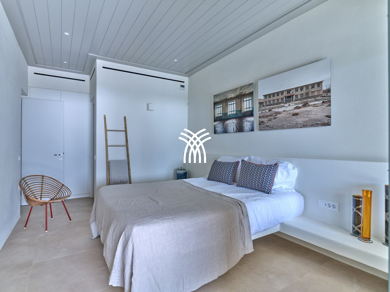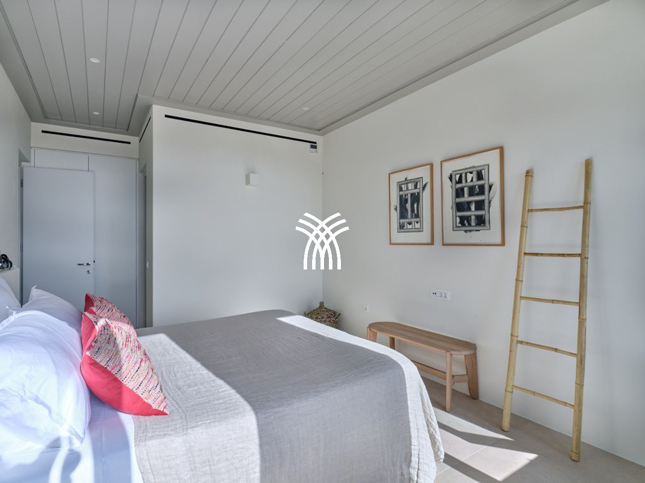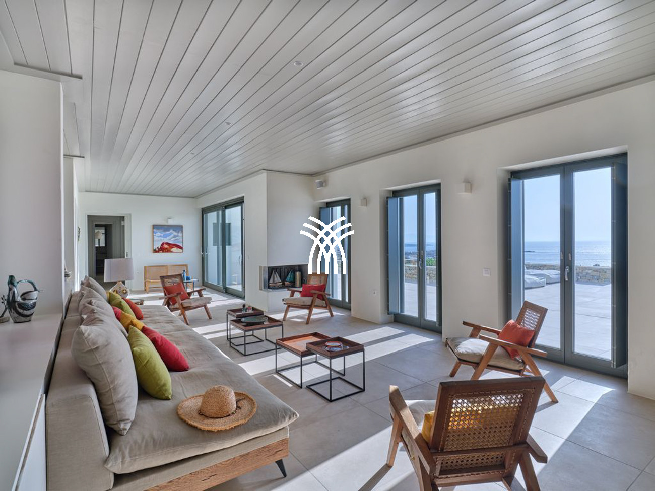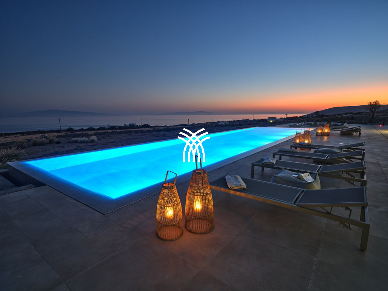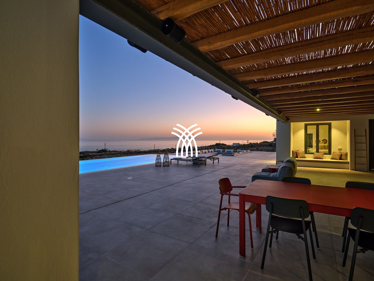 La vie en plein air est au cœur du style de vie de la villa, avec des terrasses expansives encadrant la mer et le côté du lever du soleil de l'île. Douze transats avec parasols invitent à de longues journées de détente, tandis qu'un bar équipé crée l'ambiance pour des cocktails raffinés et des apéritifs inoubliables. La piscine à débordement de 15 x 4 mètres semble se fondre avec l'horizon, offrant une connexion visuelle extraordinaire au paysage et un spectacle quotidien de lumière et de couleur. Des commodités pratiques telles qu'une buanderie avec machine à laver et sèche-linge, ainsi que des installations de repassage, assurent un confort absolu tout au long de votre séjour, tandis que l'accès complet à l'ensemble de la propriété garantit une intimité totale.