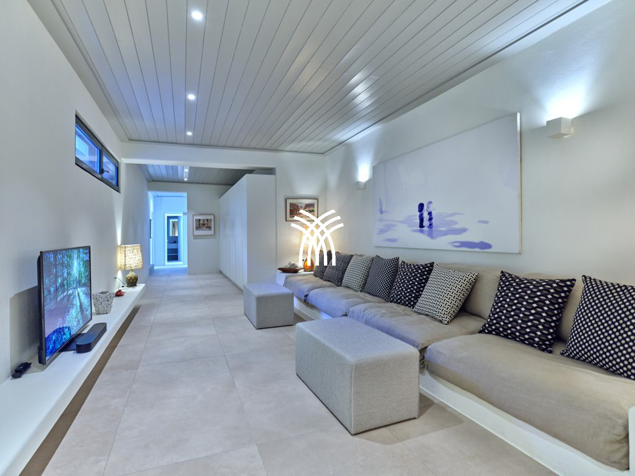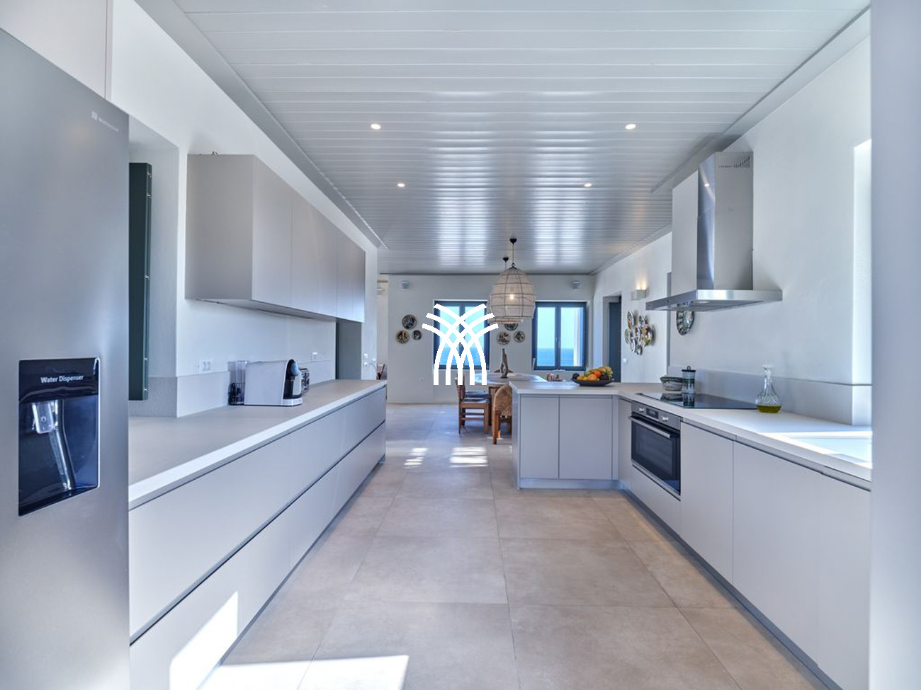 L'intérieur se déploie en espaces de vie spacieux et lumineux, finement aménagés et équipés d'équipements modernes, offrant un environnement à la fois élégant et accueillant. La villa dispose de cinq chambres doubles avec lits queen-size et une chambre avec quatre lits simples, offrant un hébergement généreux pour les familles ou les groupes en quête de confort et de intimité. Une cuisine entièrement équipée invite à la créativité culinaire du monde entier, avec la possibilité de demander un chef privé pour une expérience gastronomique élevée.