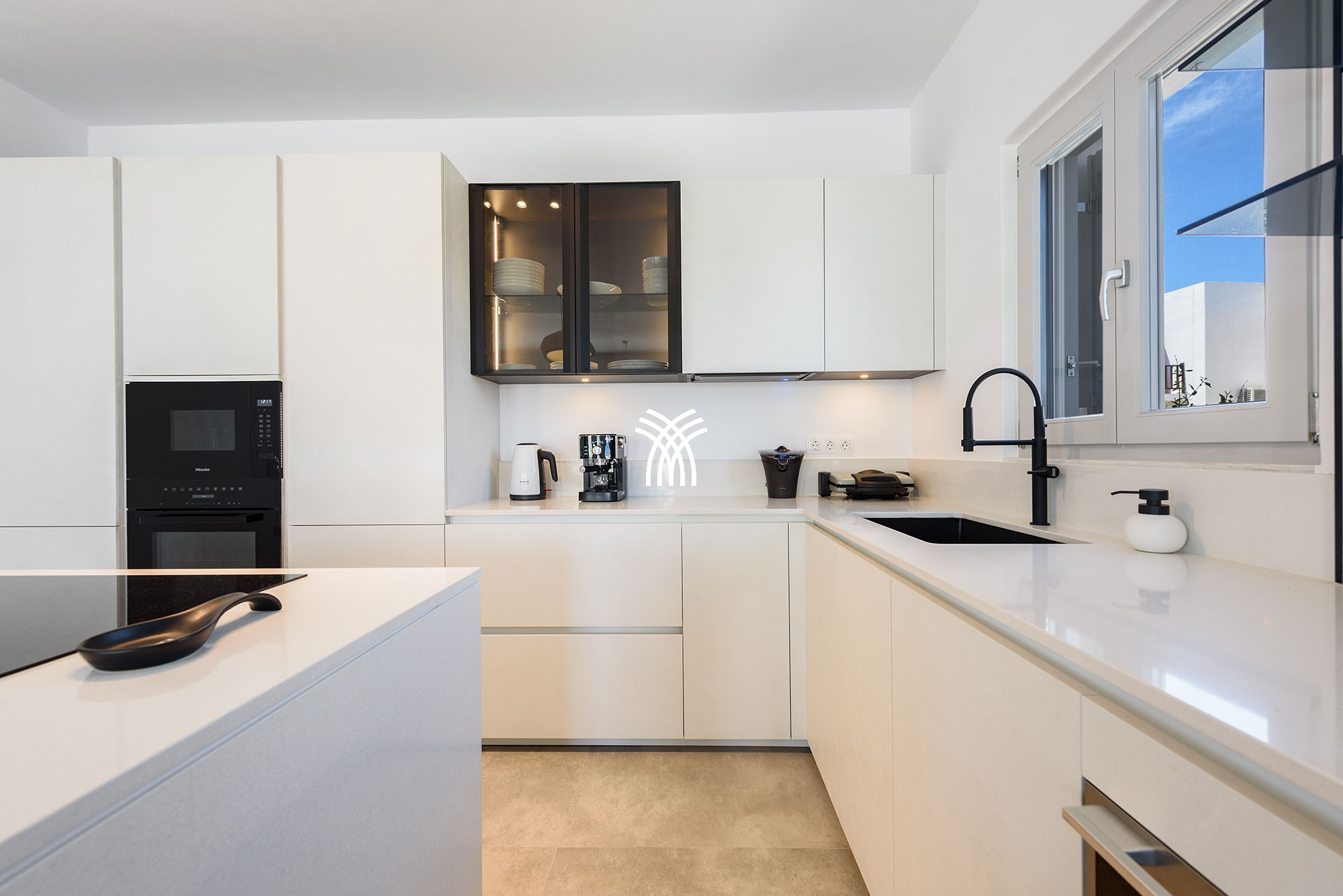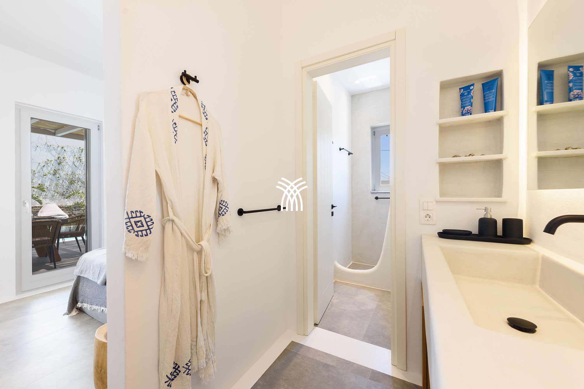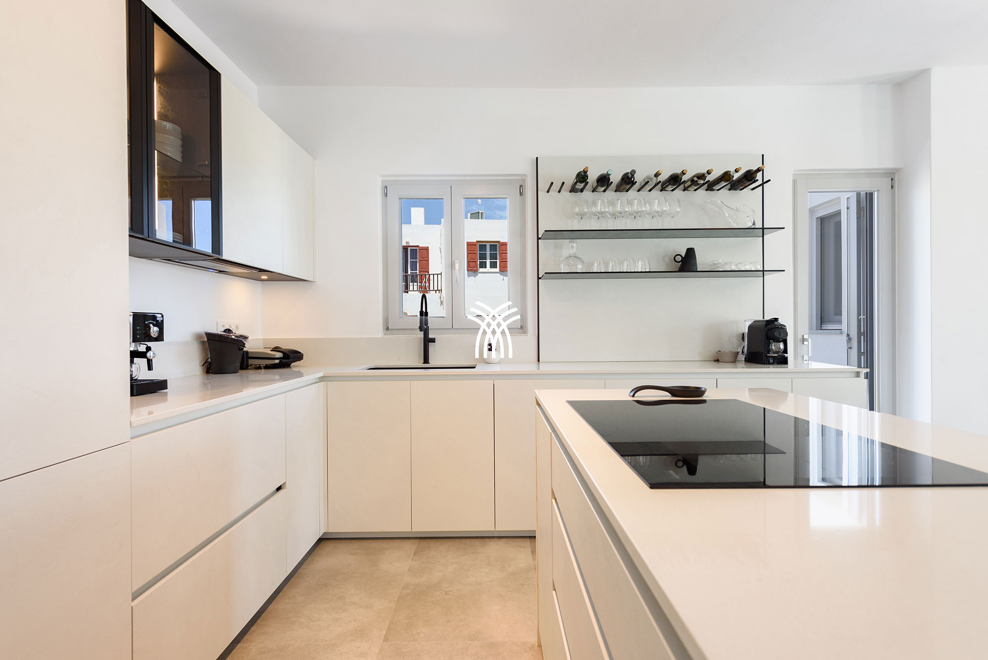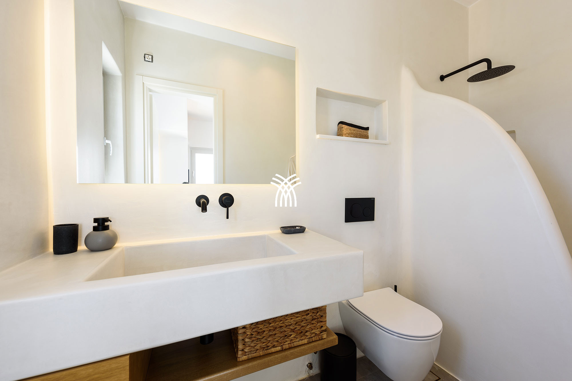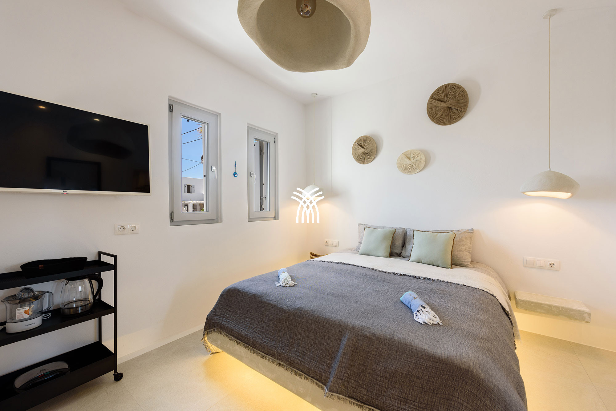 À l'intérieur, la villa mêle le charme traditionnel cycladique à un design contemporain, où une architecture lumineuse, des textures subtiles et des finitions modernes créent une ambiance chaleureuse et élégante qui se veut à la fois authentique et sophistiquée. Chaque espace est conçu pour favoriser la détente et le bien-être, invitant les invités à ralentir et à embrasser le rythme de la vie insulaire dans un environnement où chaque détail reflète un luxe discret.