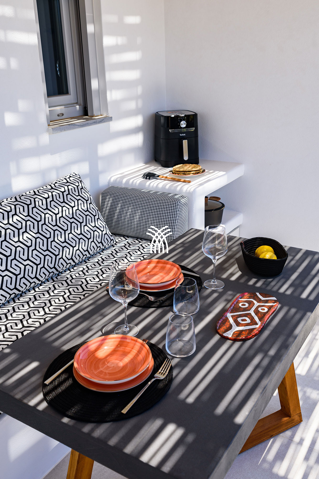 La vie en plein air se déploie sur trois vérandas fixes et deux auvents électriques, créant des espaces ombragés et ensoleillés qui s'adaptent naturellement à chaque moment de la journée. Avec trois entrées séparées et deux annexes indépendantes, la propriété offre une circulation fluide et un confort exceptionnel, permettant aux invités de profiter à la fois de rassemblements communautaires et de retraites privées dans le cadre d'une location de villa de luxe à Paros qui élève chaque séjour en une escapade mémorable.