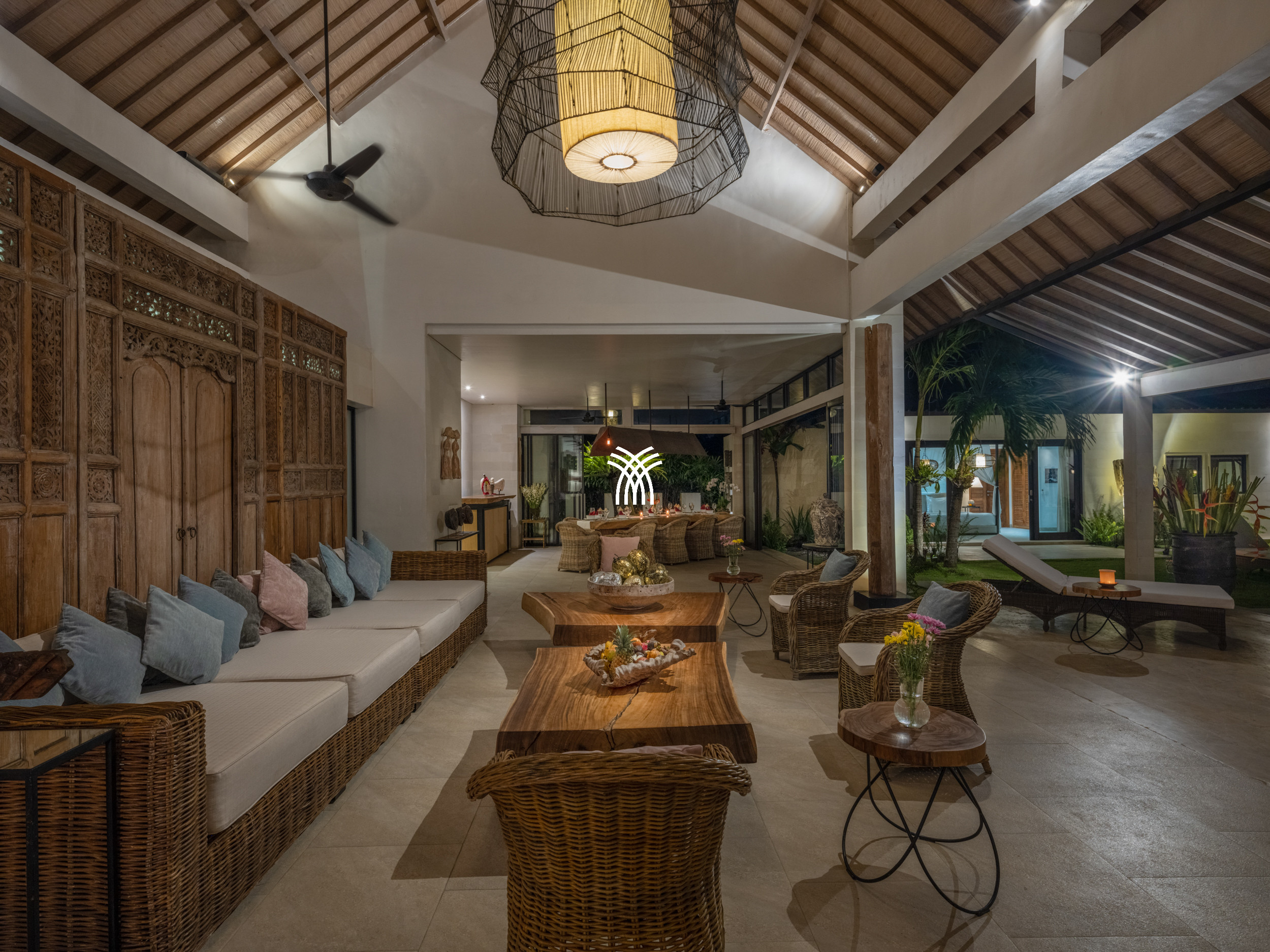 Réparti sur 3 700 mètres carrés de terres tropicales de premier choix, le domaine se distingue par son sens remarquable de l'espace et de l'intimité. L'arrivée commence le long d'une large voie privée juste à côté de l'animée Petitenget Strip, s'ouvrant sur un monde d'espaces de vie ouverts et de jardins luxuriants et interconnectés. Composé de trois villas, chaque résidence offre des espaces de vie généreux qui se fondent harmonieusement dans l'extérieur, créant une atmosphère de luxe décontracté et de pure détente. Ici, chaque moment se déroule dans un cadre conçu pour le confort, la beauté et un séjour insulaire inoubliable.