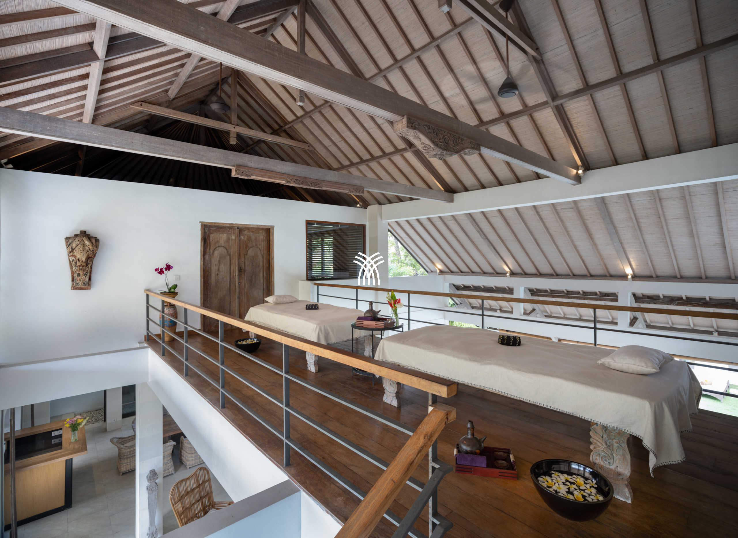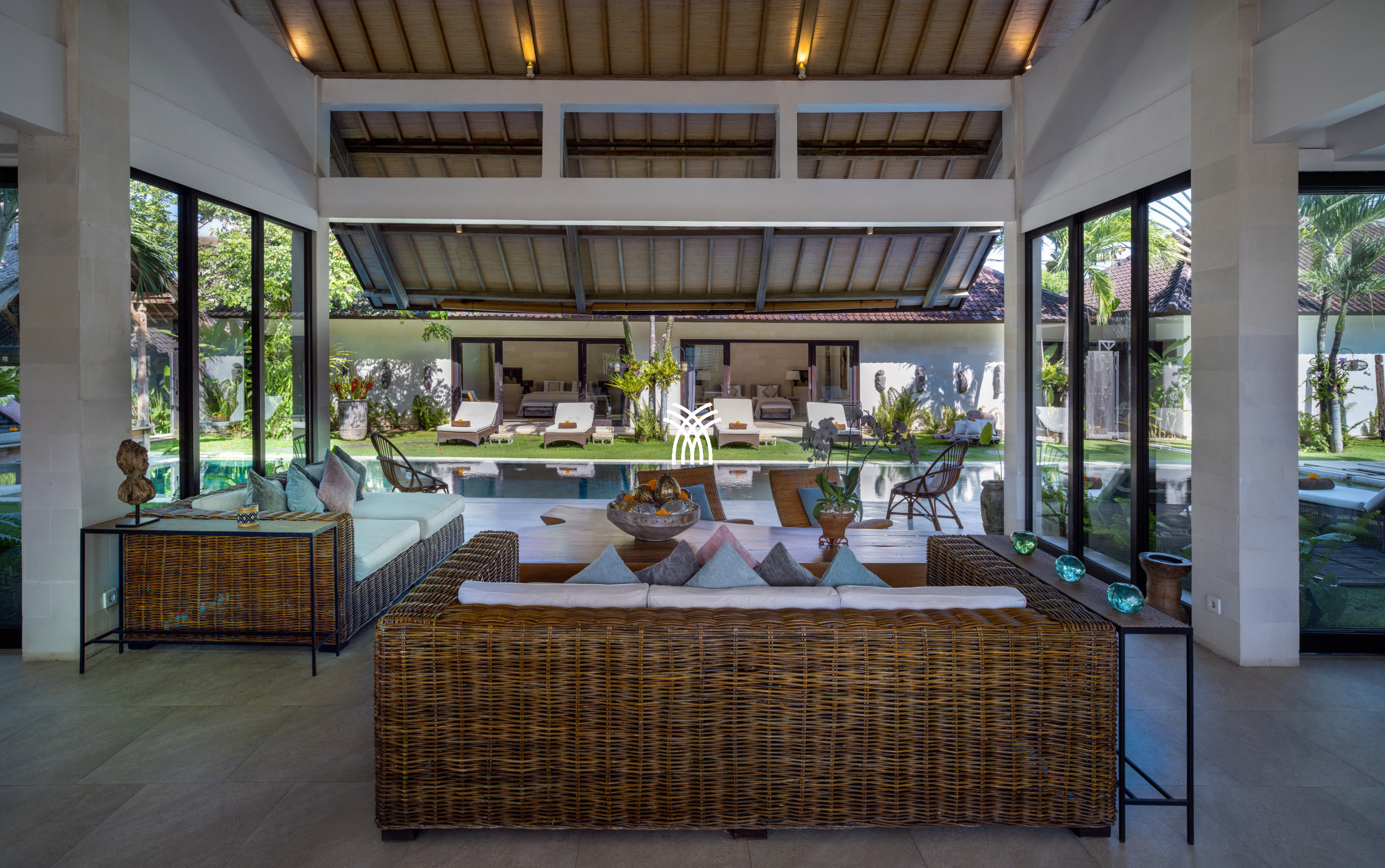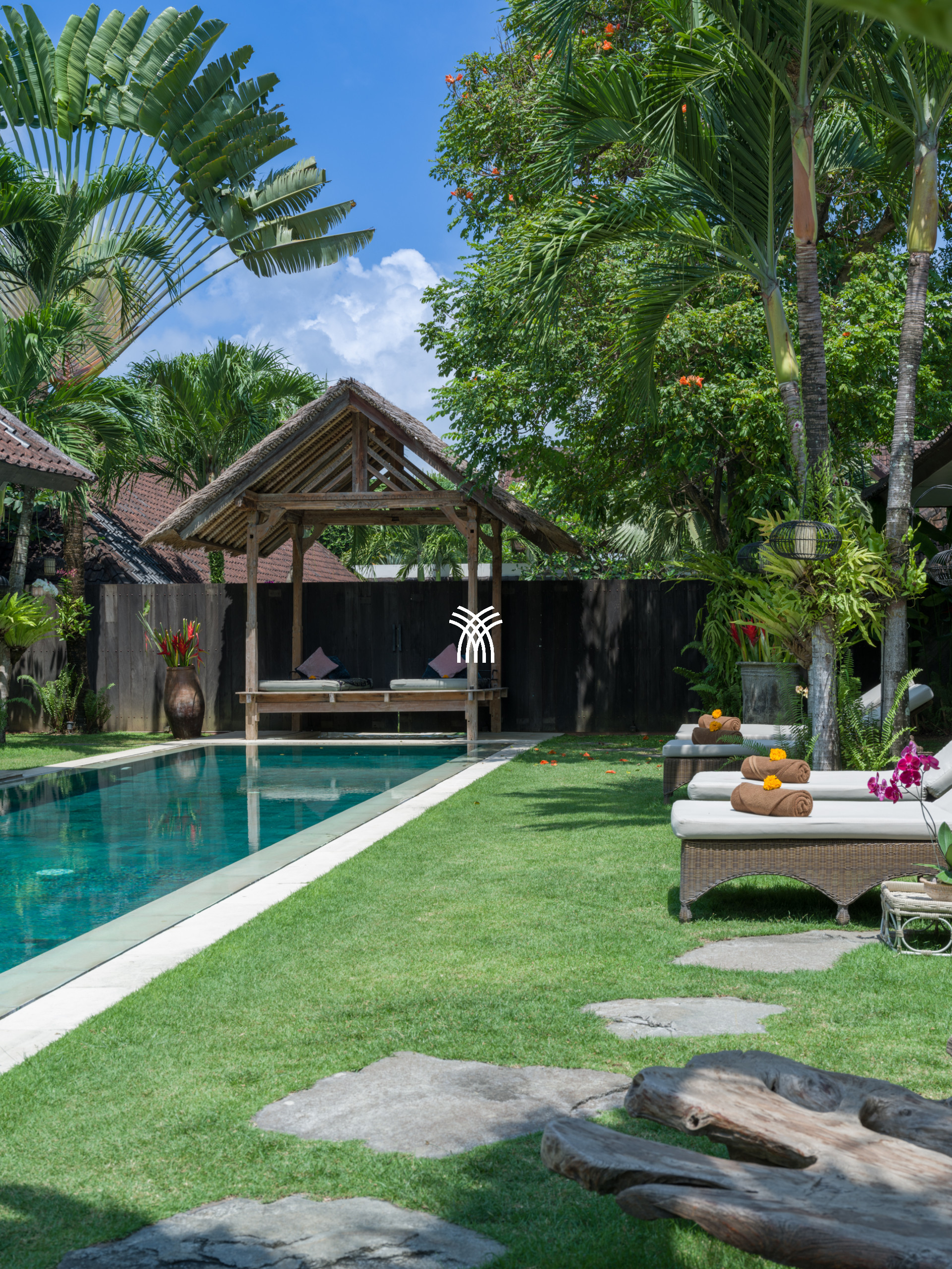 La villa offre une abondance d'espaces de vie magnifiquement conçus, des zones de détente intérieures et extérieures spacieuses aux coins lecture intimes et aux divans invitants qui encouragent des moments de repos tranquilles. Au cœur de la villa se trouve une impressionnante piscine de 18 mètres, un point focal saisissant idéal pour des après-midis de détente en famille et entre amis. Flottant sans effort dans ce cadre tranquille, un gazebo traditionnel au toit de chaume est perché au-dessus de la piscine, offrant une retraite unique pour des soins spa en villa ou des rassemblements détendus, que ce soit pour profiter d'un massage apaisant ou d'un déjeuner barbecue privé dans une atmosphère d'élégance tropicale pure.
