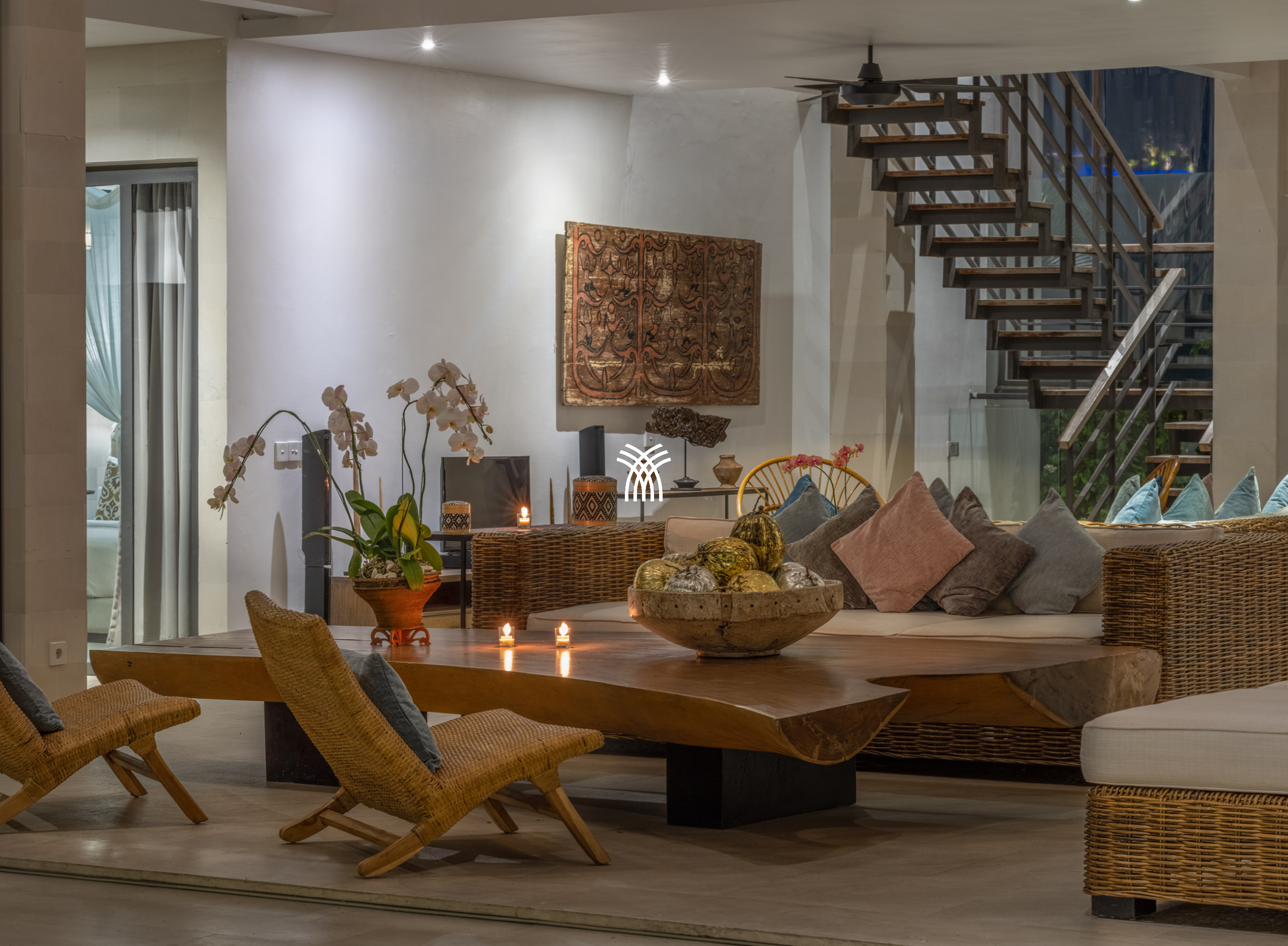 Des intérieurs soigneusement sélectionnés présentent une collection élégante d'antiquités de designers et d'œuvres d'art provenant de Java et de Bali, créant une atmosphère riche en authenticité culturelle et en sophistication intemporelle. Ce sens de l'héritage est harmonieusement équilibré avec des conforts modernes, notamment un téléviseur familial spacieux, un système audio stéréo de haute qualité et une cuisine entièrement équipée complétée par un réfrigérateur à vin dédié, garantissant que chaque moment soit à la fois indulgent et détendu.