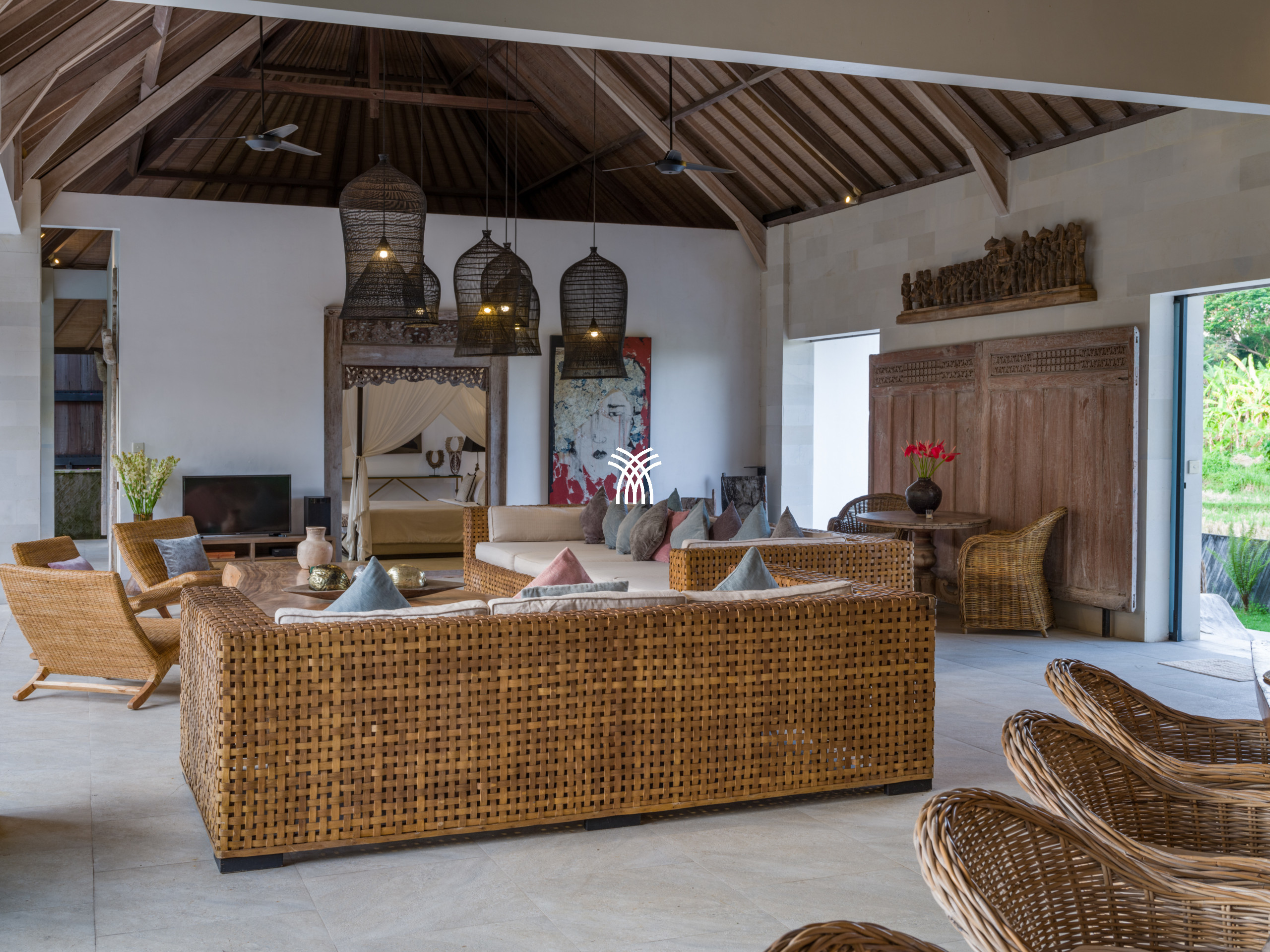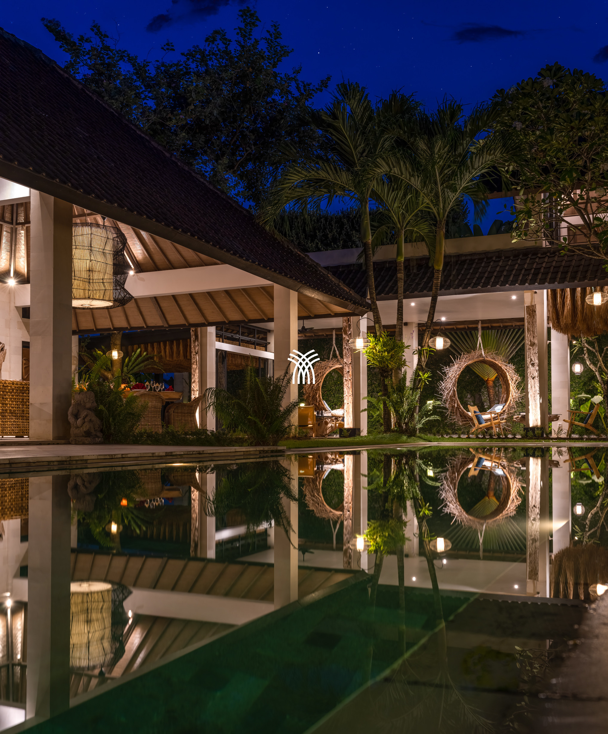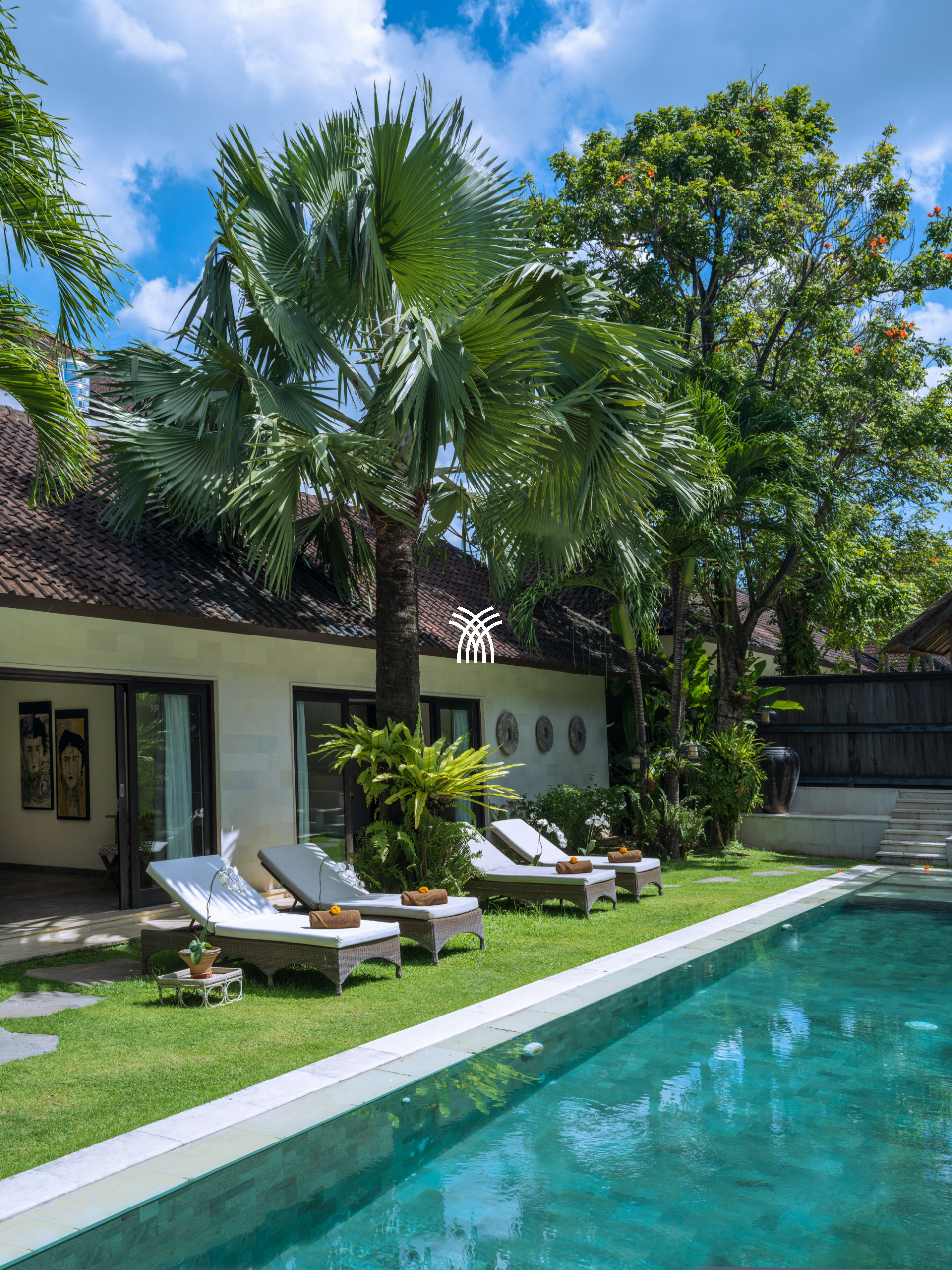 Les intérieurs célèbrent une esthétique balinaise contemporaine, enrichie d'accents chaleureux en bois javanais et d'une collection soigneusement sélectionnée d'œuvres d'art inspirées des tribus, qui confèrent de la profondeur et un caractère culturel à l'espace. Chaque détail a été soigneusement réfléchi pour équilibrer l'authenticité et la vie moderne, y compris une cuisine entièrement équipée et des fonctionnalités de divertissement avancées telles qu'un téléviseur familial et un système de son surround.