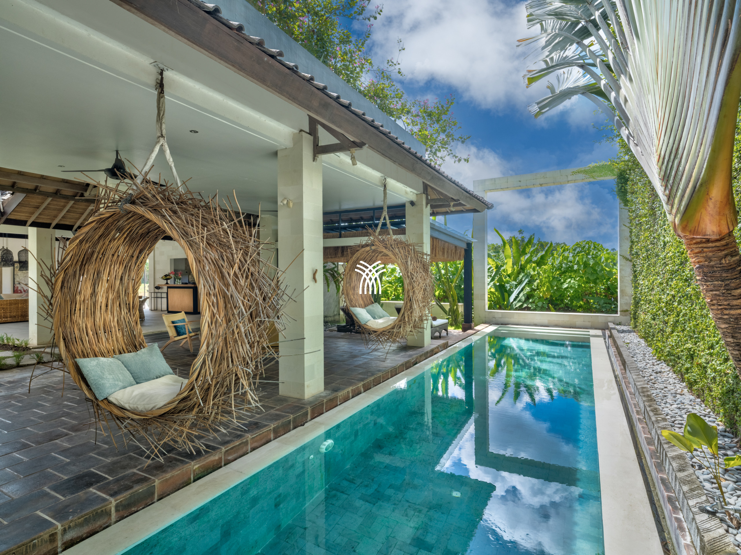 Entouré de verdure luxuriante et encadré par des vues sur les rizières, la villa se distingue non pas par un, mais par deux piscines élégamment conçues qui renforcent son sens de l'espace et de la tranquillité. L'espace de vie ouvert invite les douces brises tropicales à circuler, créant une connexion harmonieuse entre le confort intérieur et l'extérieur, tandis que quatre chambres magnifiquement aménagées bénéficient d'une vue directe sur la piscine. Une chambre supplémentaire à l'étage offre une retraite plus isolée, avec un grand balcon privé qui surplombe le paysage serein.