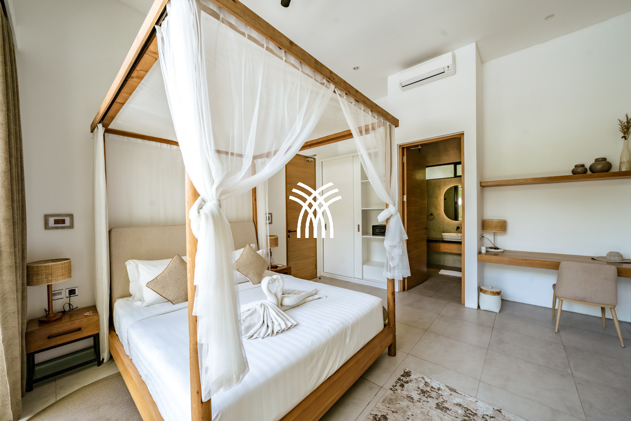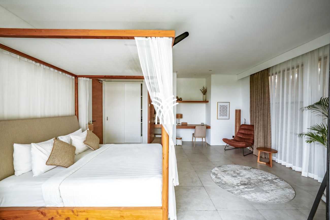 Conçue avec une élégance bohème distinctive, la villa accueille jusqu'à six invités dans un espace où le confort moderne rencontre le charme tropical. Chacune des trois chambres est soigneusement aménagée avec la climatisation et une salle de bain privative, créant des sanctuaires intimes rehaussés par une décoration raffinée et des détails soigneusement sélectionnés.
