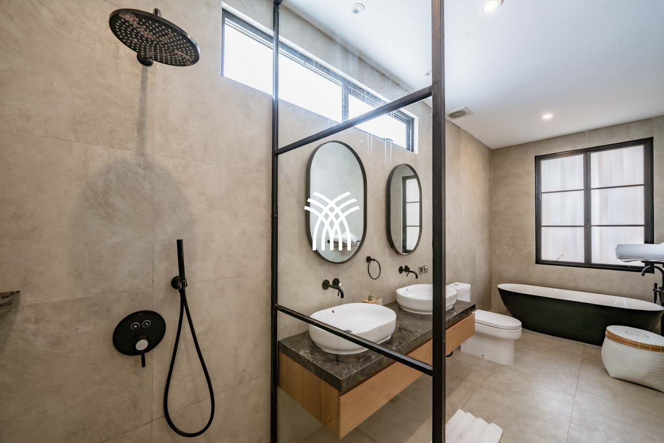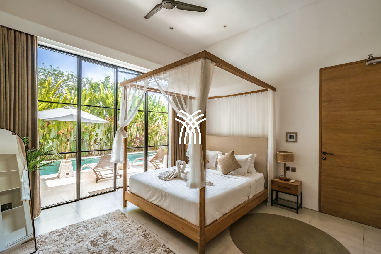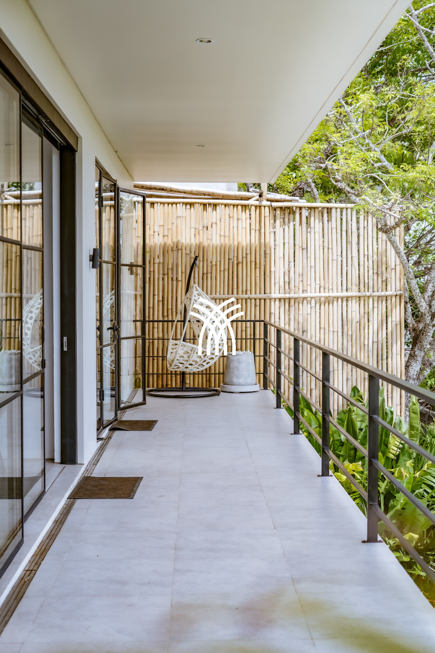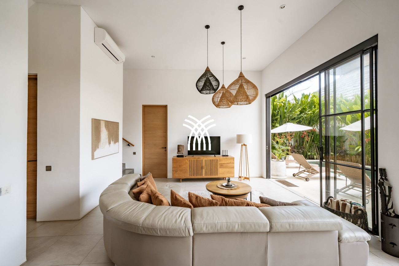 L'espace de vie ouvert se fond harmonieusement dans un jardin tropical luxuriant, où une piscine privée devient le point focal d'un cadre extérieur tranquille. Cette conception intérieure-extérieure harmonieuse invite à des matinées détendues, des après-midis ensoleillés et des soirées paisibles dans une atmosphère à la fois raffinée et accueillante.