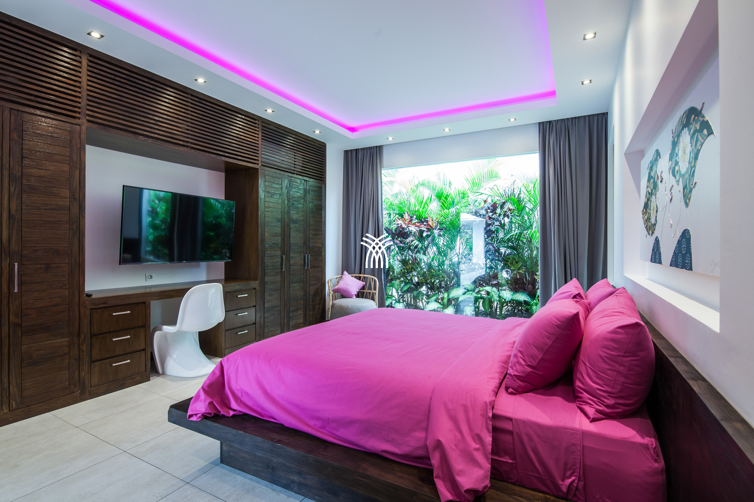 Situé sur un terrain impressionnant de 1 600 m², le bien se déploie dans un jardin tropical luxuriant où une piscine privée devient le point central d'un mode de vie insulaire détendu. Les journées se passent sans effort à profiter du soleil de Bali, à se détendre près de l'eau ou à se réunir dans le salon extérieur accueillant, tandis que les espaces de vie intérieurs s'ouvrent avec grâce sur le jardin, créant une transition harmonieuse entre le raffinement intérieur et la beauté naturelle.