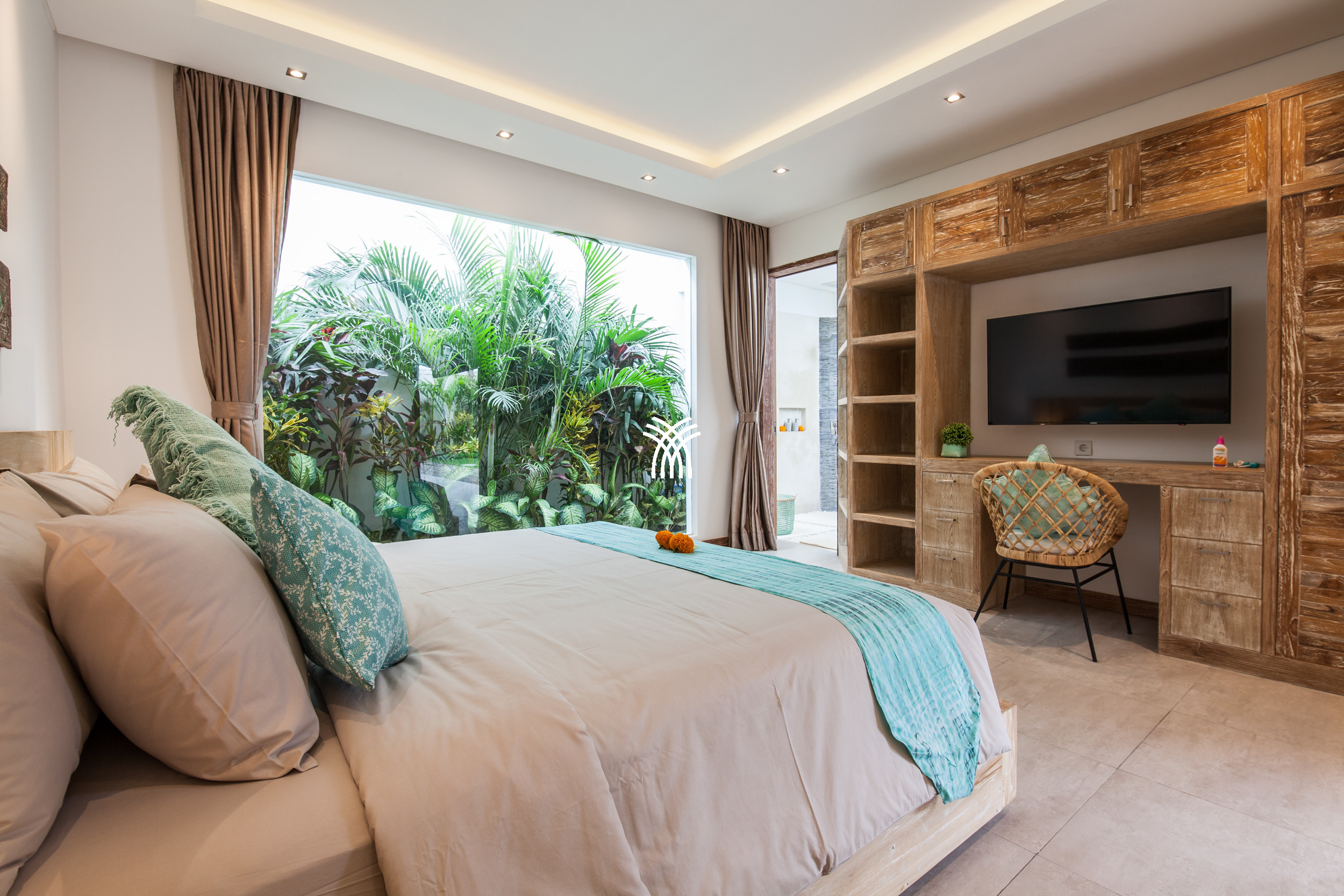 Conçue avec une élégance bohème distinctive, la villa accueille jusqu'à six invités dans un espace où le confort moderne rencontre le charme tropical. Chacune des trois chambres est soigneusement aménagée avec la climatisation et une salle de bain privative, créant des sanctuaires intimes rehaussés par une décoration raffinée et des détails soigneusement sélectionnés.