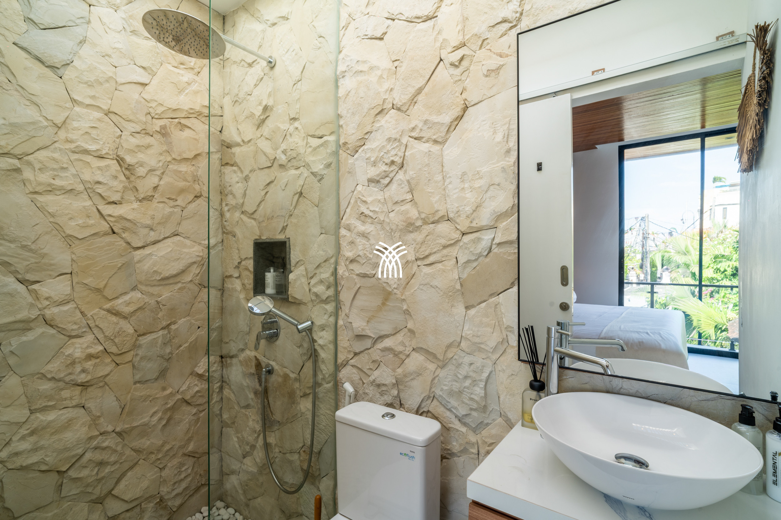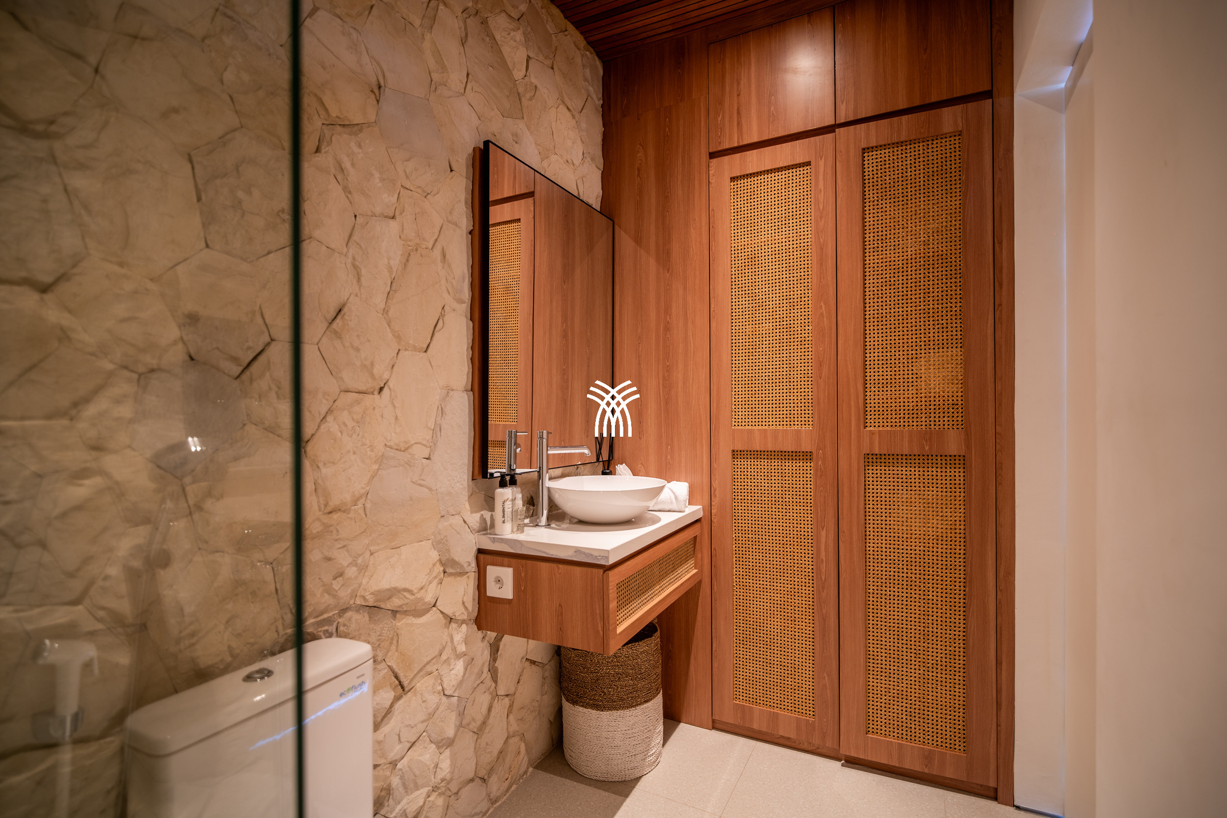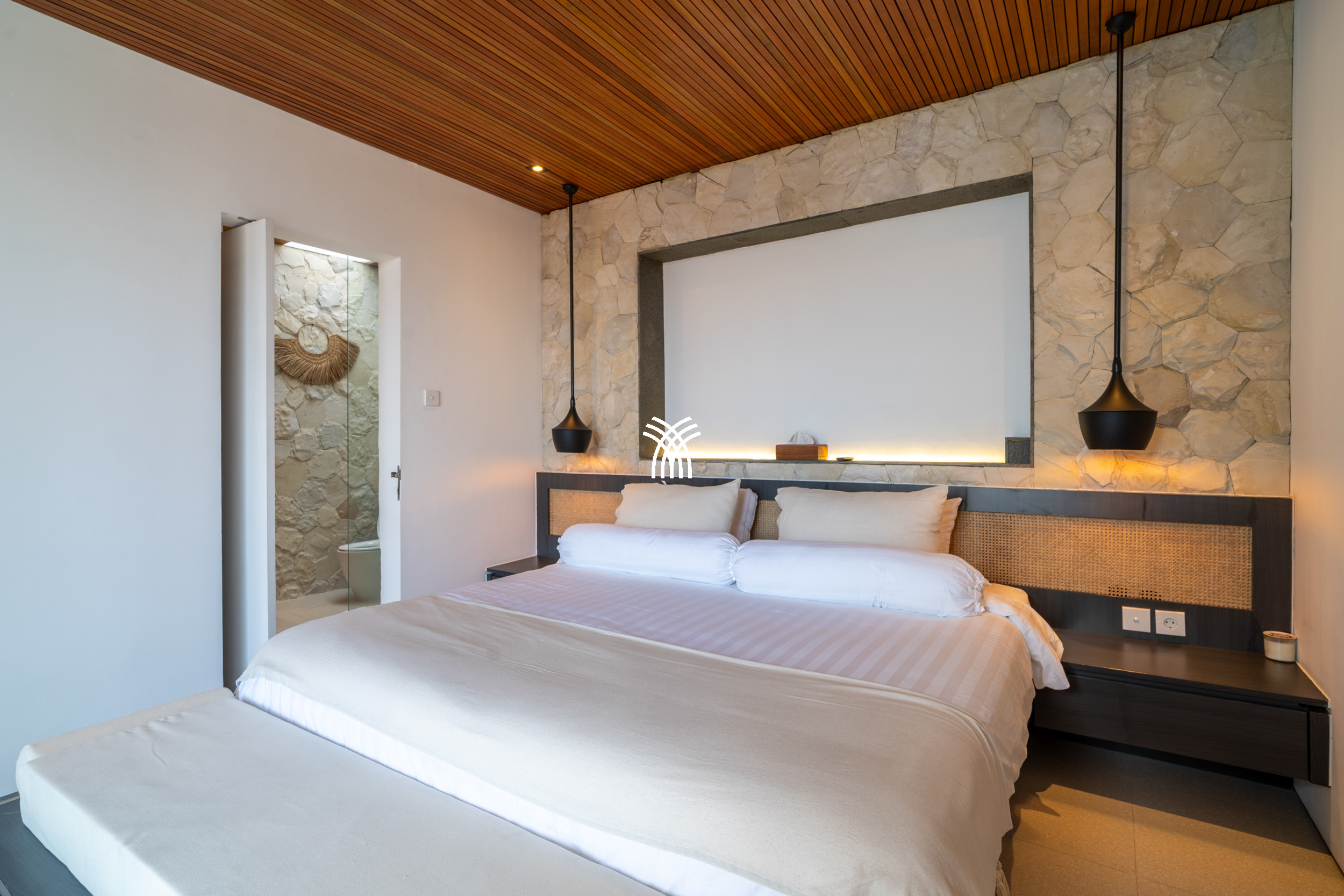 Conçue avec une élégance bohème distinctive, la villa accueille jusqu'à six invités dans un espace où le confort moderne rencontre le charme tropical. Chacune des trois chambres est soigneusement aménagée avec la climatisation et une salle de bain privative, créant des sanctuaires intimes rehaussés par une décoration raffinée et des détails soigneusement sélectionnés.