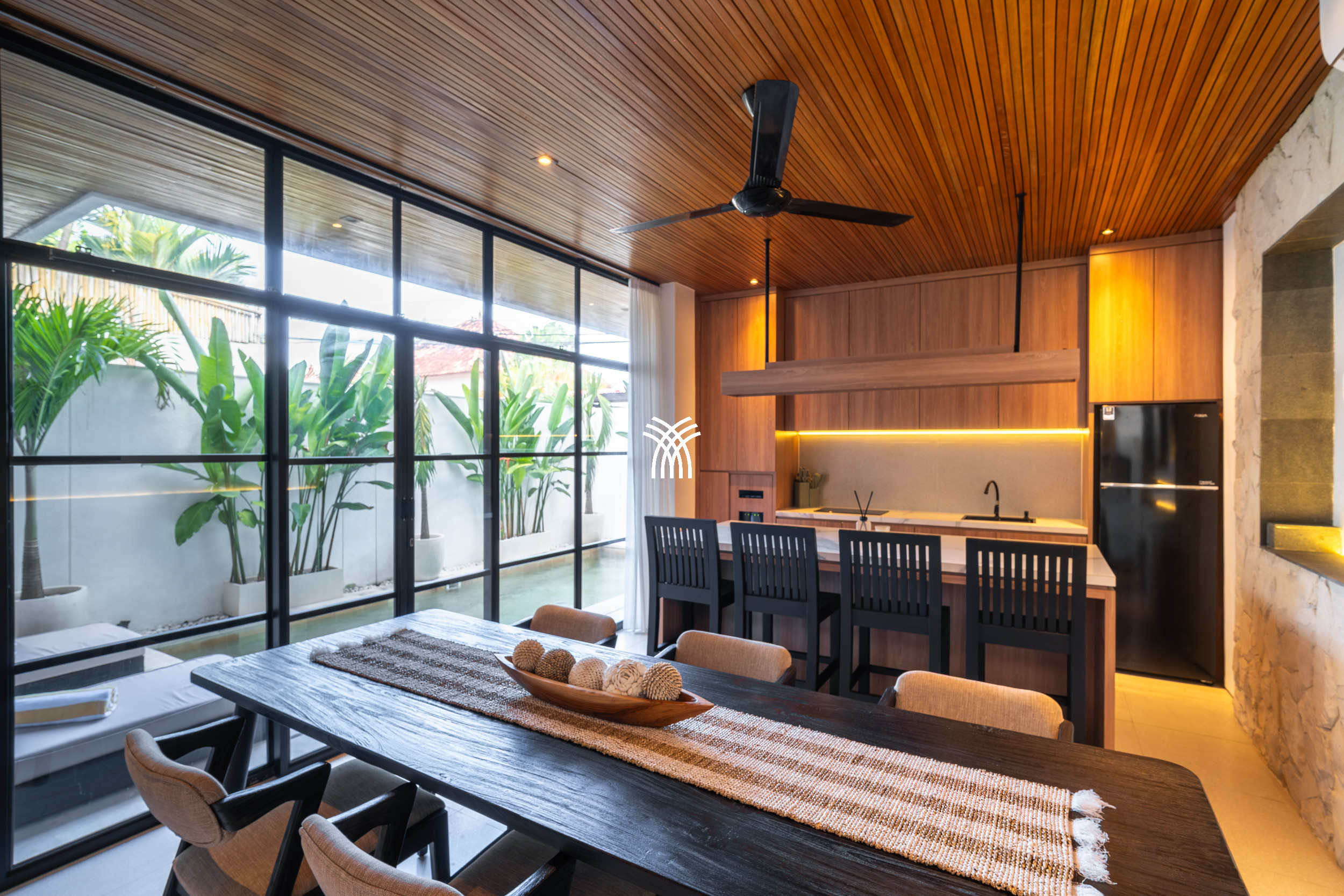 L'espace de vie ouvert se fond harmonieusement dans un jardin tropical luxuriant, où une piscine privée devient le point focal d'un cadre extérieur tranquille. Cette conception intérieure-extérieure harmonieuse invite à des matinées détendues, des après-midis ensoleillés et des soirées paisibles dans une atmosphère à la fois raffinée et accueillante.