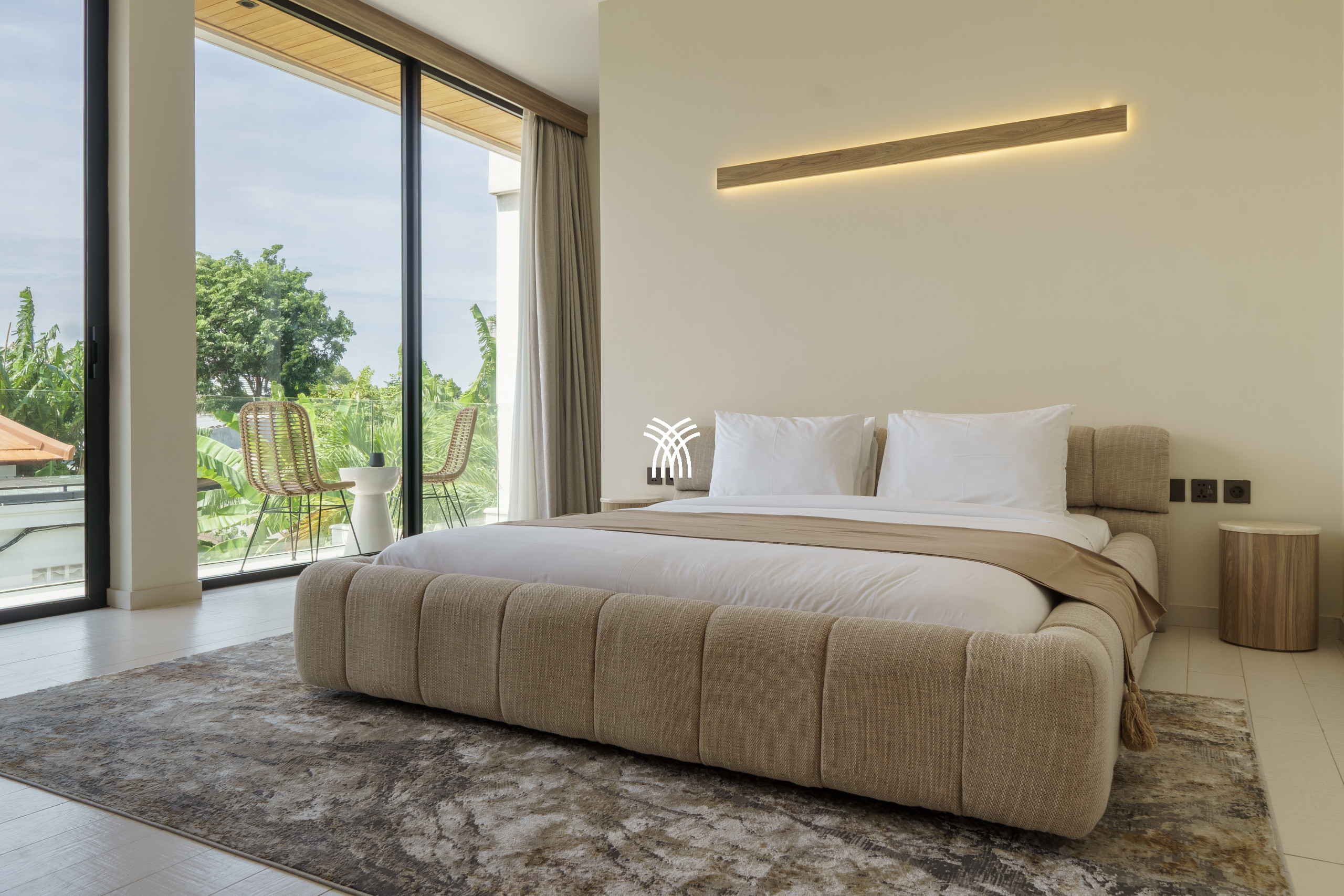 Dès votre arrivée, la villa révèle une atmosphère de sophistication discrète, où des intérieurs soigneusement sélectionnés mêlent design moderne et touches chaleureuses et accueillantes. Chacune des deux chambres est conçue comme un havre privé, présentant une décoration contemporaine et une ambiance apaisante. La suite principale spacieuse est ornée d'un lit king-size moelleux, de linges doux et d'accents vibrants, tandis que de grandes fenêtres encadrent des vues sur un jardin tranquille, créant une connexion harmonieuse avec la nature. La deuxième chambre est tout aussi accueillante, combinant des éléments en bois rustiques avec des conforts modernes et offrant un accès direct aux espaces extérieurs luxuriants, renforçant le sentiment d'ouverture et de détente.