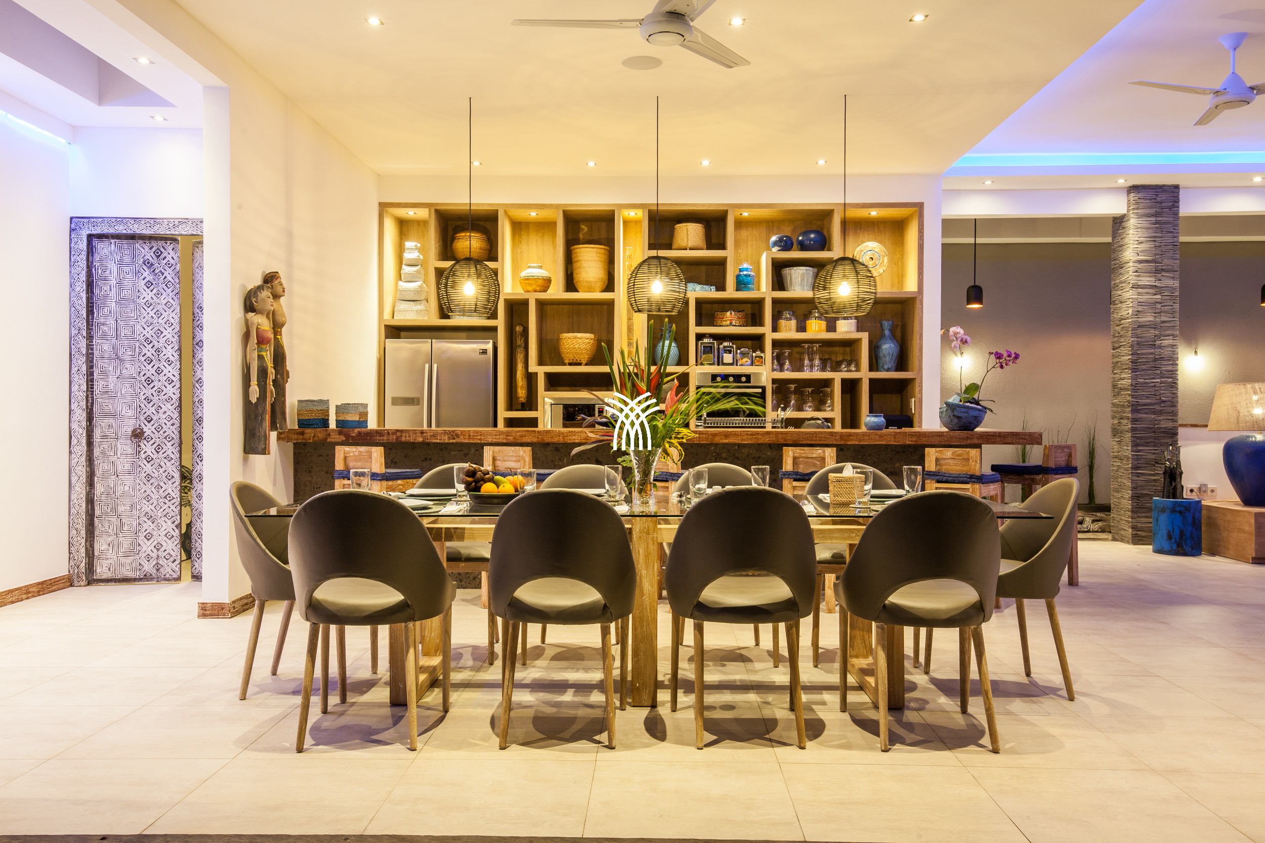 La villa dispose de quatre chambres avec salle de bain privative magnifiquement aménagées, chacune équipée de la climatisation et de coffres-forts personnels, créant des sanctuaires privés de repos et de détente. Au cœur de la maison, un salon confortable avec un système audio intégré invite aux moments partagés, tandis que la cuisine entièrement équipée offre le cadre idéal pour préparer des repas ou profiter d'un service de petit-déjeuner sur demande.