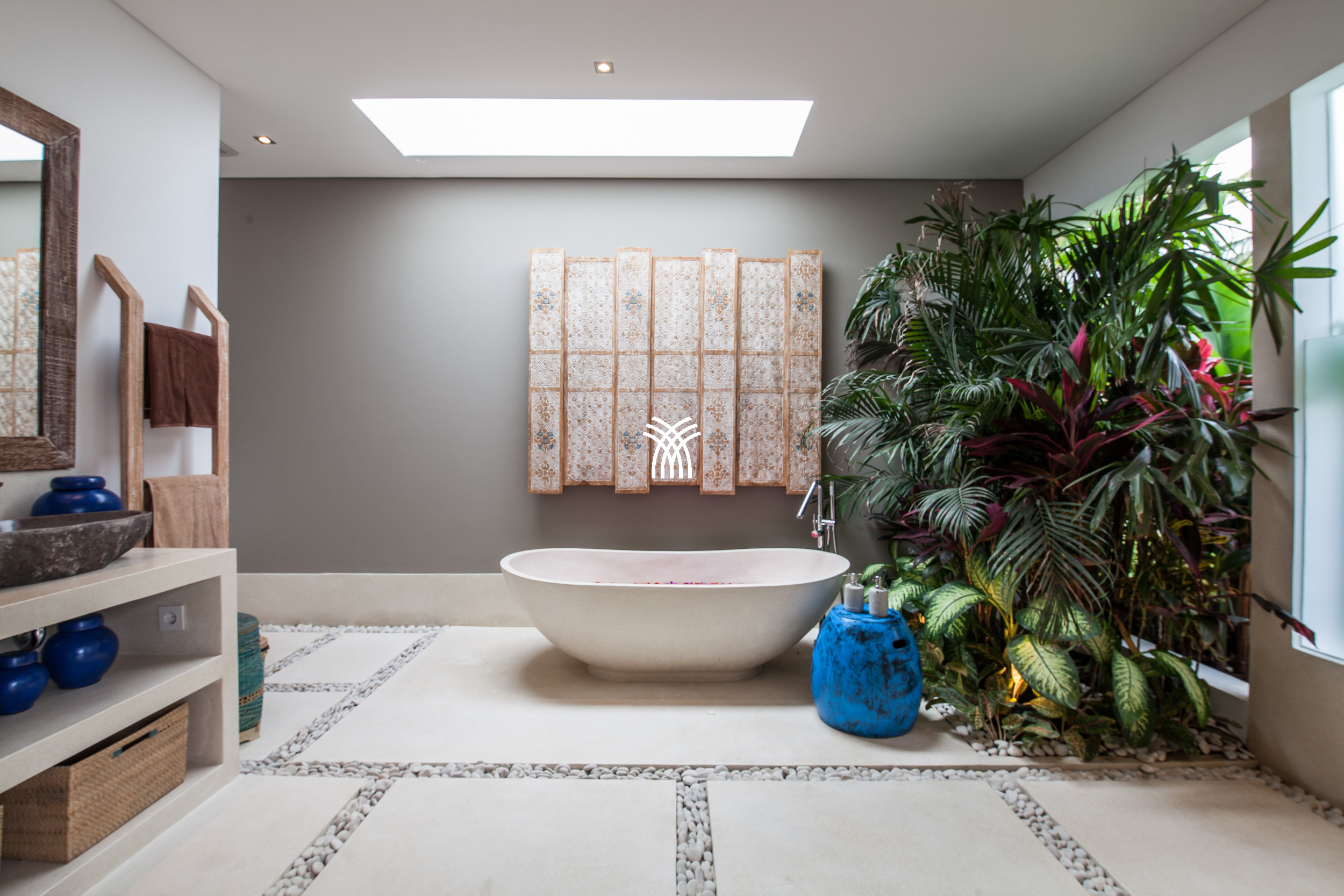 Villa Simprana est un sanctuaire spacieux de quatre chambres niché dans le quartier paisible de Bidadari à Seminyak, offrant une échappatoire invitante à ceux qui recherchent une location de villa de luxe en Indonésie et une location de villa de luxe à Bali sereine mais bien desservie. Entourée d'un grand jardin tropical, la villa crée une atmosphère tranquille où une piscine privée et des transats invitent à de longues journées paisibles sous le soleil de l'île.