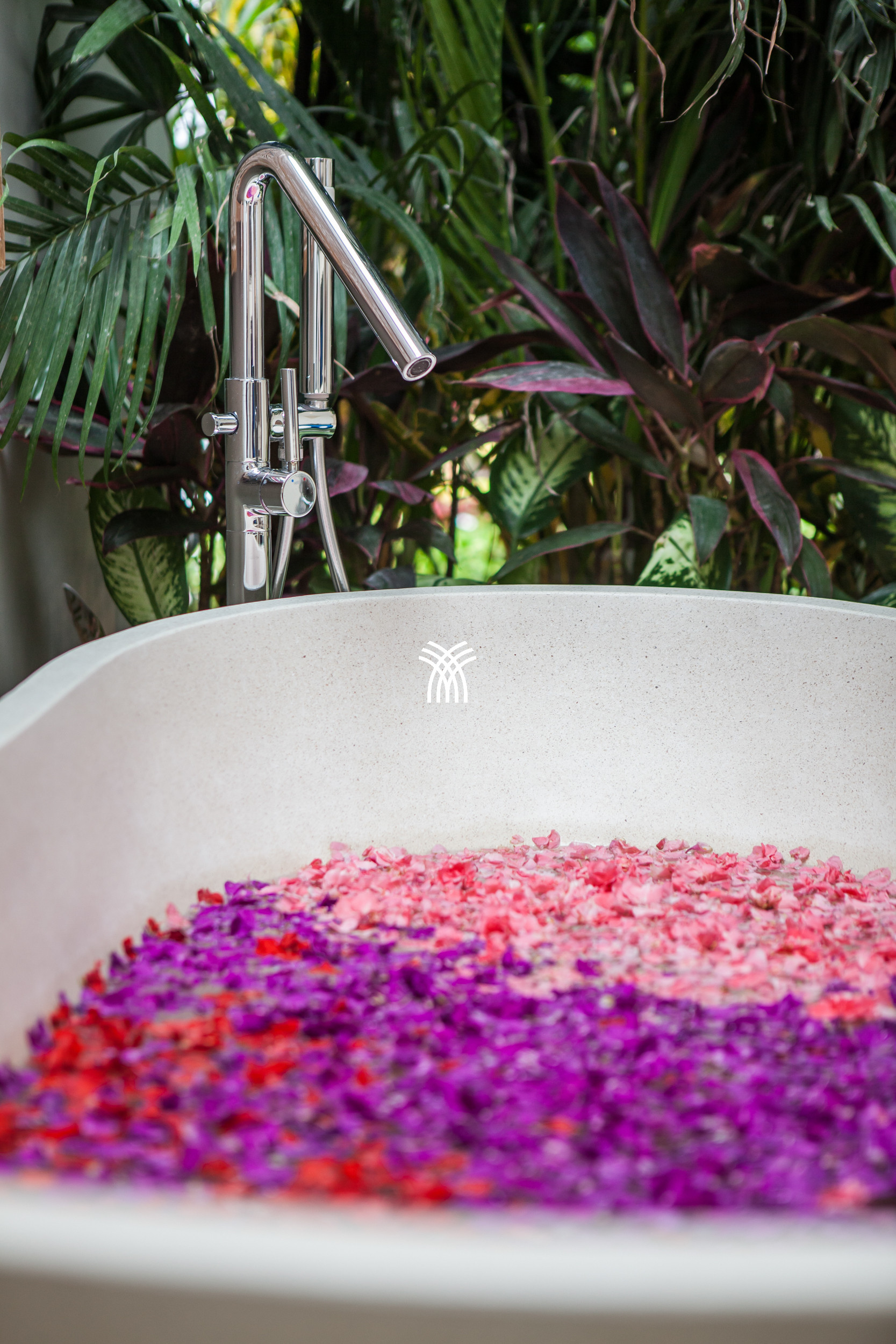 En extérieur, un jardin tropical luxuriant se déploie autour d'une piscine à débordement spectaculaire de 12 mètres, véritable point focal de la Villa Amantara. Ce cadre serein invite à des baignades paisibles, des après-midis ensoleillés ou des moments de tranquillité avec un livre, le tout encadré par la beauté naturelle de Bali.