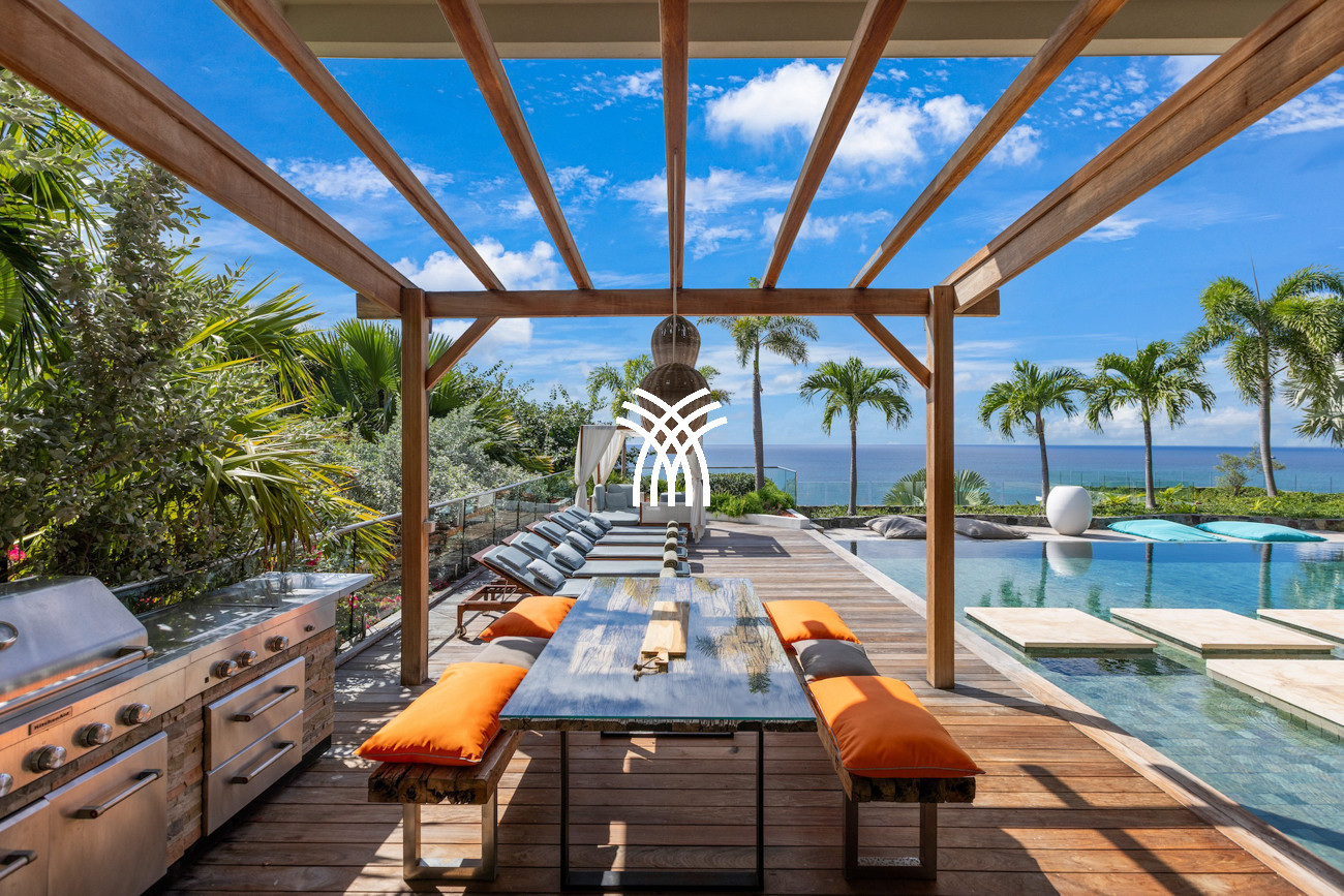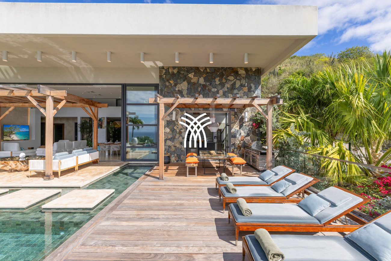 À l'extérieur, une piscine privée scintillante invite à de longues après-midis baignées de soleil, tandis que la salle de fitness entièrement équipée permet aux invités de maintenir leur routine de bien-être sans quitter le confort de cette retraite exclusive. Disponible en configuration de quatre ou cinq chambres, Villa Emeraude se distingue comme une location de villa de luxe extraordinaire à Saint-Martin, combinant des vues à couper le souffle, un confort raffiné et une confidentialité totale pour créer une escapade caribéenne inspirante pour les familles et les amis.