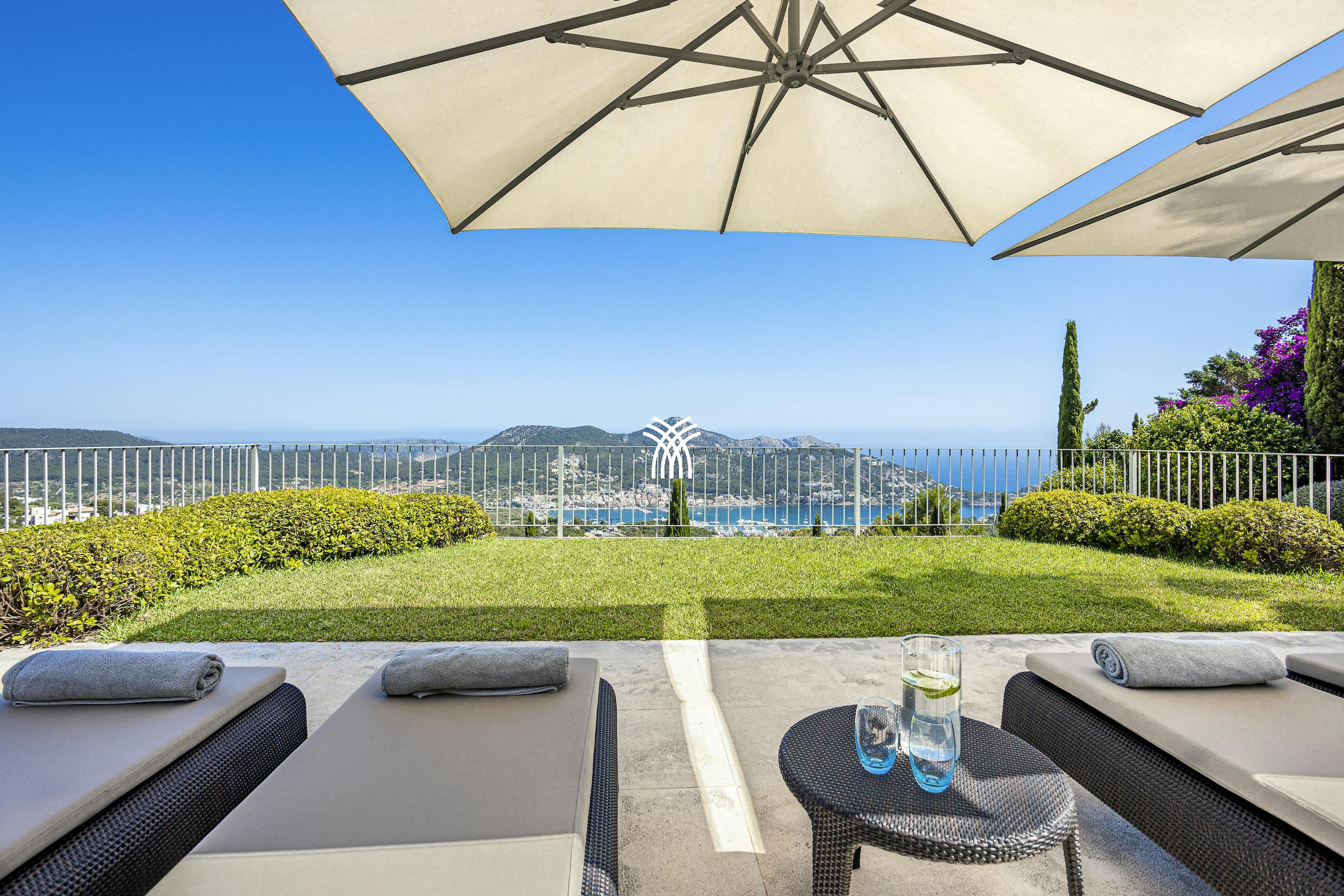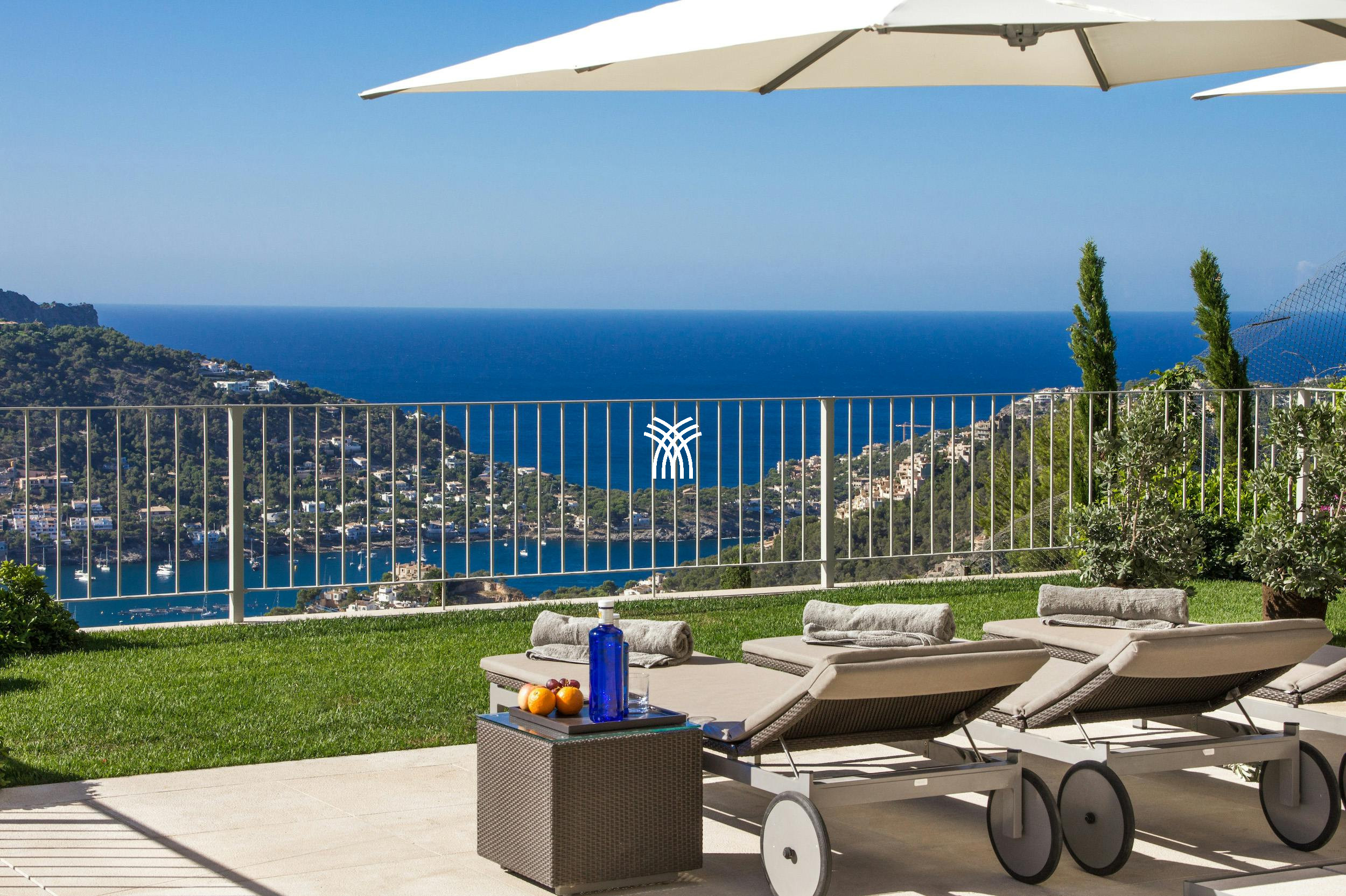Depuis sa position surélevée, les invités peuvent profiter de vues sur la mer sans interruption, de couchers de soleil toute l'année, et même de vues lointaines sur Ibiza par temps clair. Entourée de nature au bout d'une impasse tranquille, la villa offre un isolement complet tout en restant à quelques minutes des plages, des terrains de golf et du centre animé de Port d'Andratx.