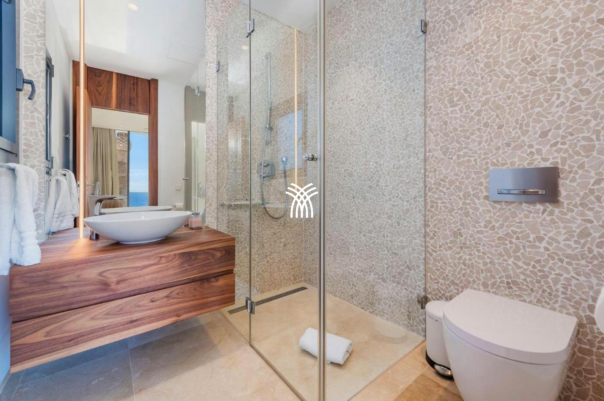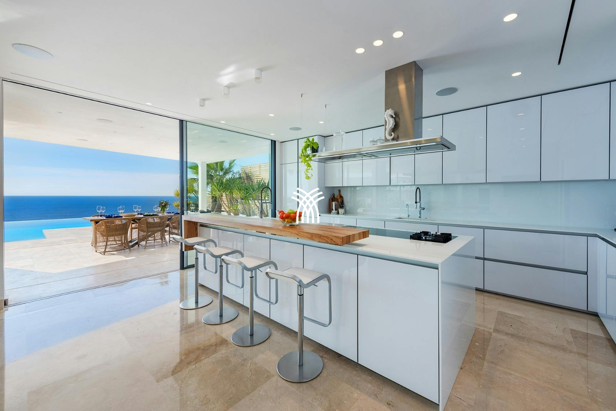 Le luxe rencontre le divertissement avec un cinéma privé ultramoderne au format ultra-large 21:9, accueillant neuf invités dans un confort douillet. La cuisine de niveau professionnel de la villa rend la cuisine gastronomique sans effort, tandis que la piscine à débordement d'eau salée de 100 mètres carrés offre un espace serein pour la baignade ou la contemplation des vues sur la Méditerranée.