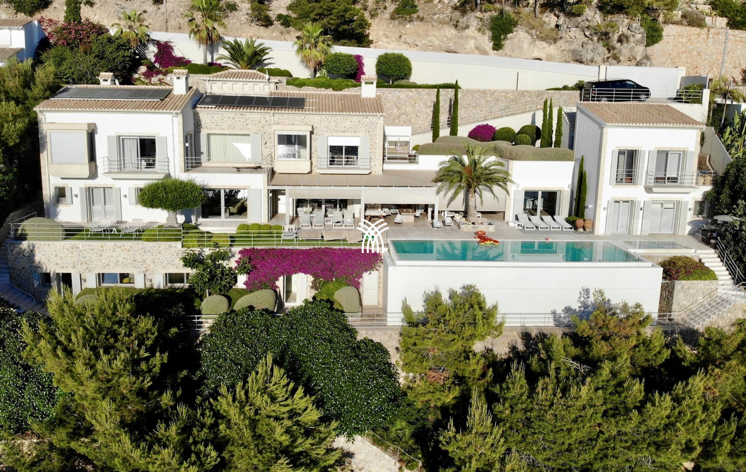 Depuis sa position surélevée, les invités peuvent profiter de vues sur la mer sans interruption, de couchers de soleil toute l'année, et même de vues lointaines sur Ibiza par temps clair. Entourée de nature au bout d'une impasse tranquille, la villa offre un isolement complet tout en restant à quelques minutes des plages, des terrains de golf et du centre animé de Port d'Andratx.