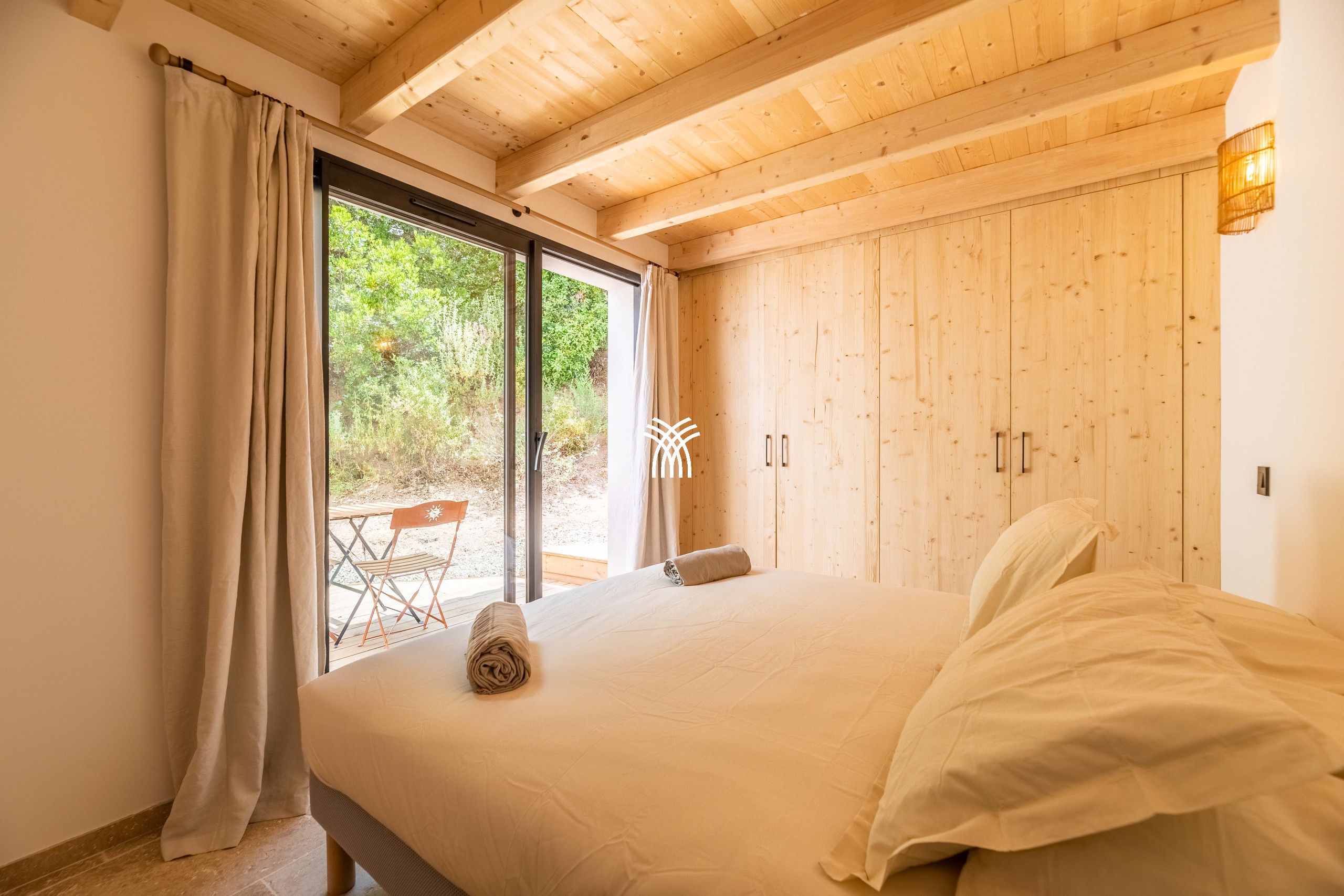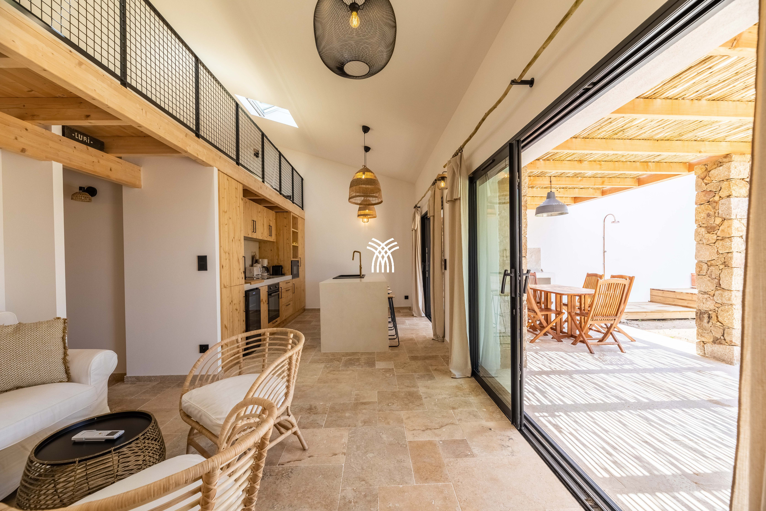 À seulement quelques kilomètres de Porto-Vecchio et Bonifacio, la Villa Caza Enjoy A est une adresse confidentielle et privilégiée pour savourer la Corse du Sud, entre nature, confort et art de vivre.