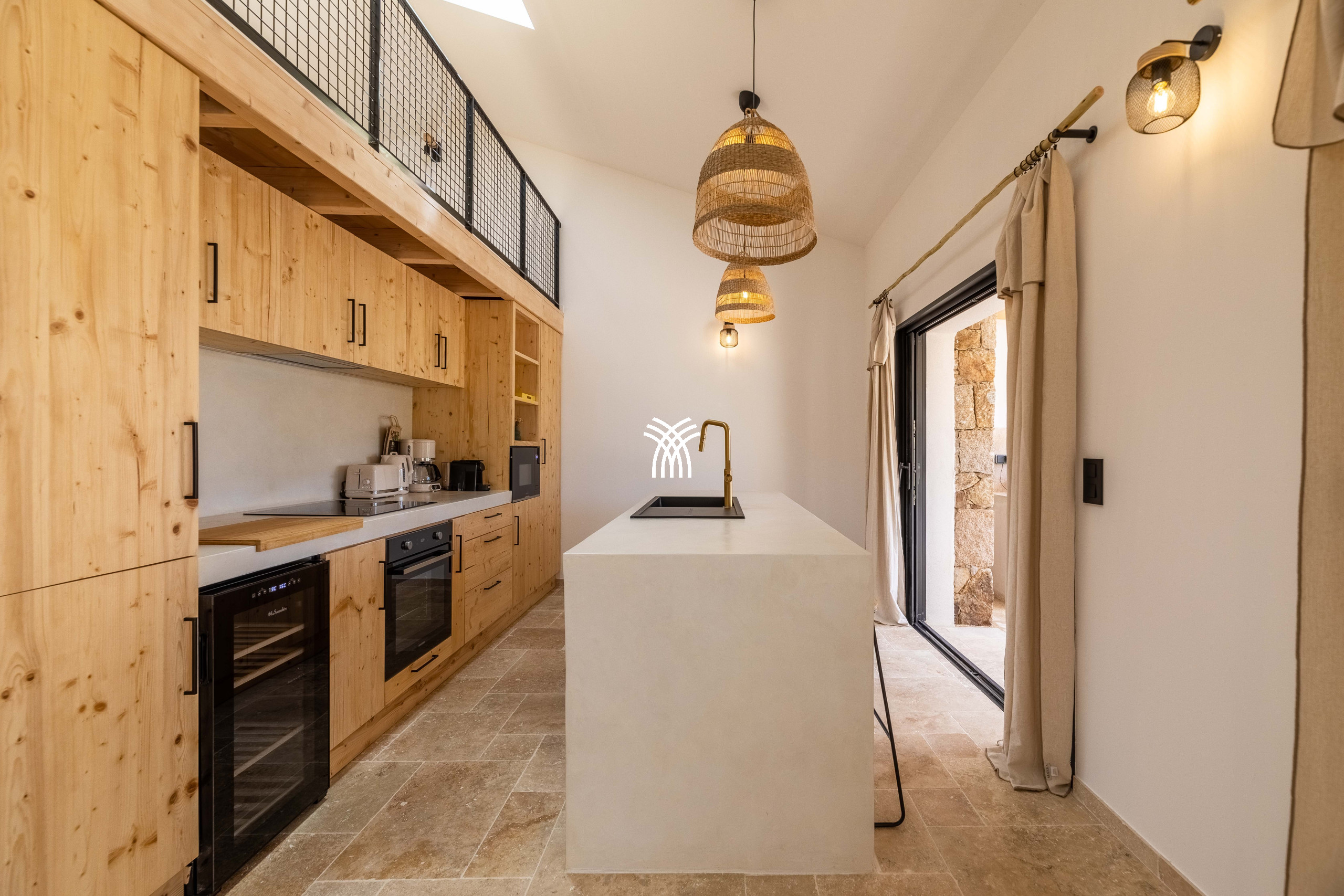 Nichée dans le domaine privé du hameau de Pietragione, à seulement quelques pas de la célèbre plage de Santa Giulia et à 8 kilomètres du centre animé de Porto-Vecchio, la Villa Caza Enjoy O est une adresse confidentielle où luxe, nature et sérénité ne font qu’un. Entièrement rénovée au printemps 2025 par un architecte soucieux d’intégrer les éléments naturels à l’expérience de séjour, cette villa incarne l’art de vivre en Corse dans ce qu’il a de plus apaisant et élégant.