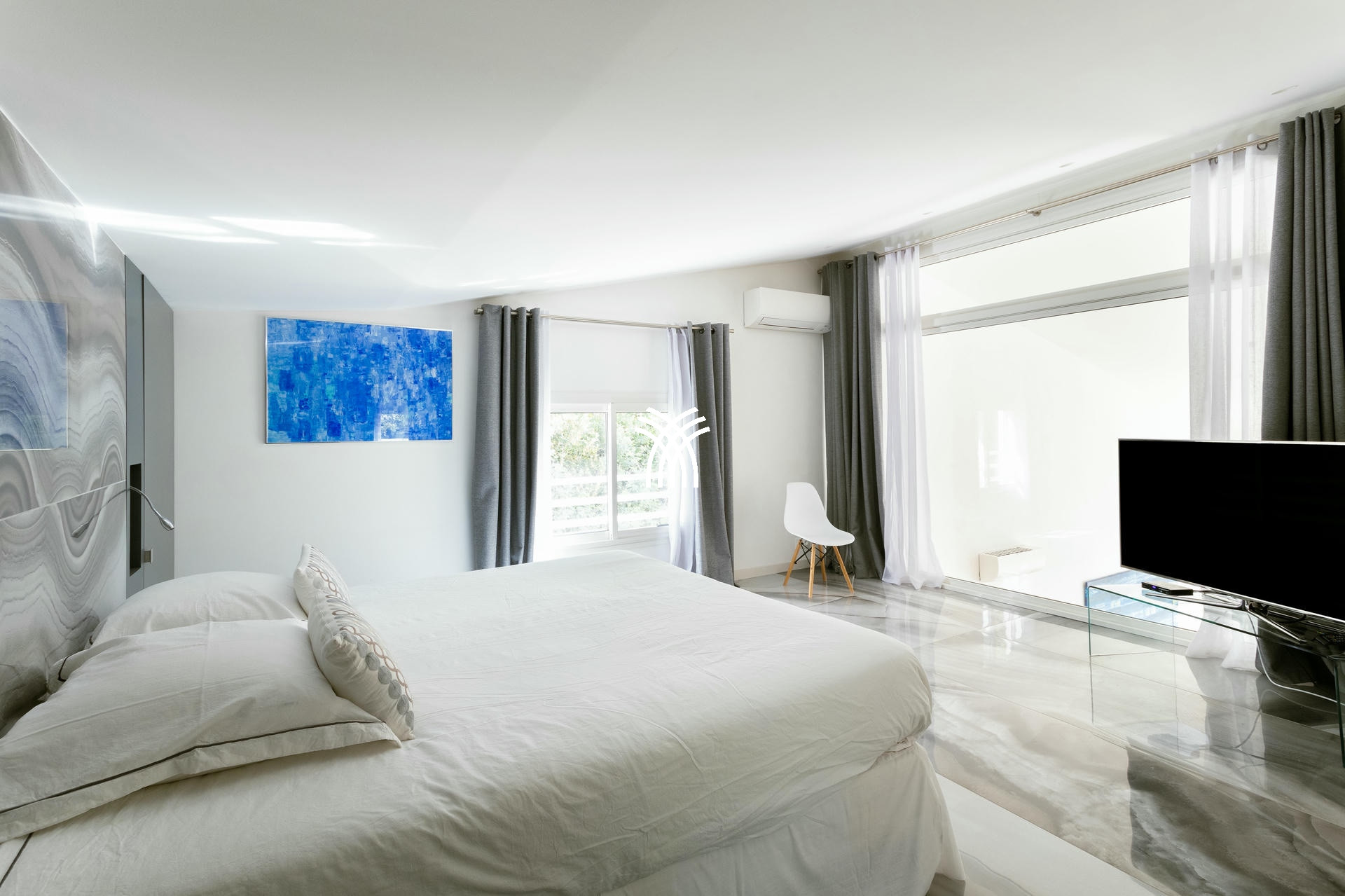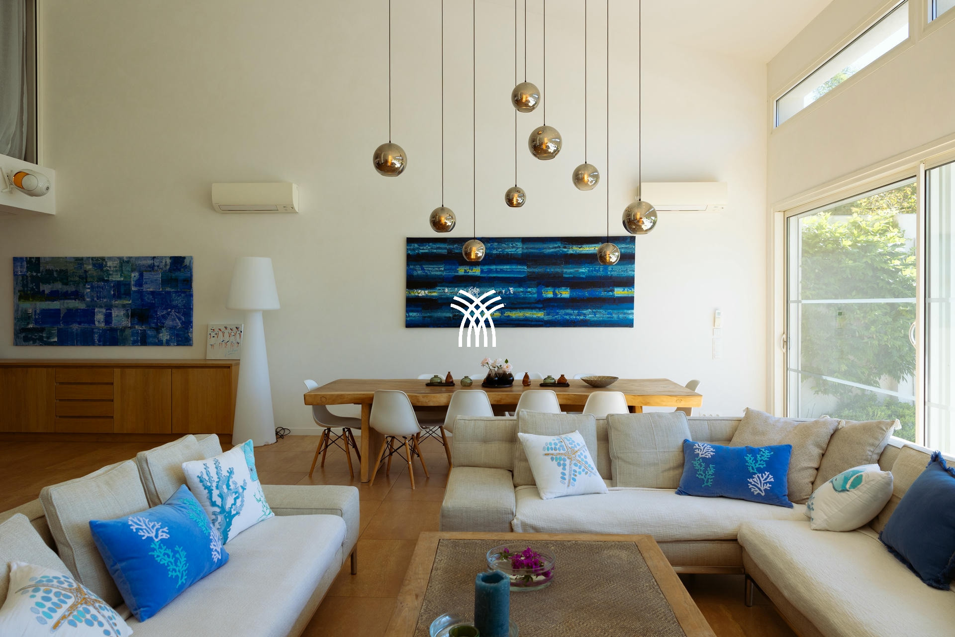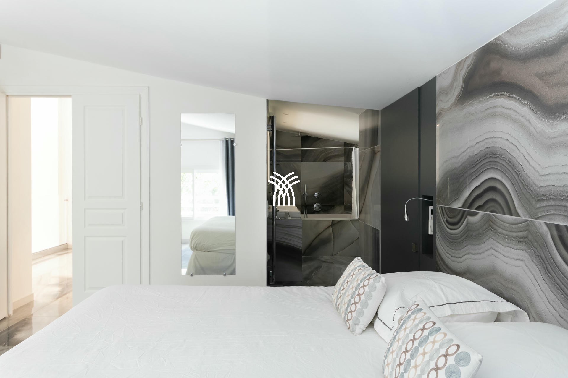 À l’intérieur, la villa séduit par ses espaces lumineux et spacieux. Le salon élégant s’ouvre largement sur l’extérieur, laissant entrer la lumière et offrant une connexion harmonieuse avec la nature environnante. La salle à manger attenante crée un cadre accueillant pour des repas partagés, tandis que la cuisine entièrement équipée répond à toutes les exigences gastronomiques. Côté nuit, cinq chambres raffinées, chacune avec sa salle de bain attenante, garantissent confort et intimité. Deux d’entre elles disposent également d’entrées indépendantes, idéales pour offrir davantage de tranquillité aux invités.