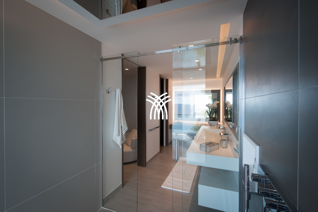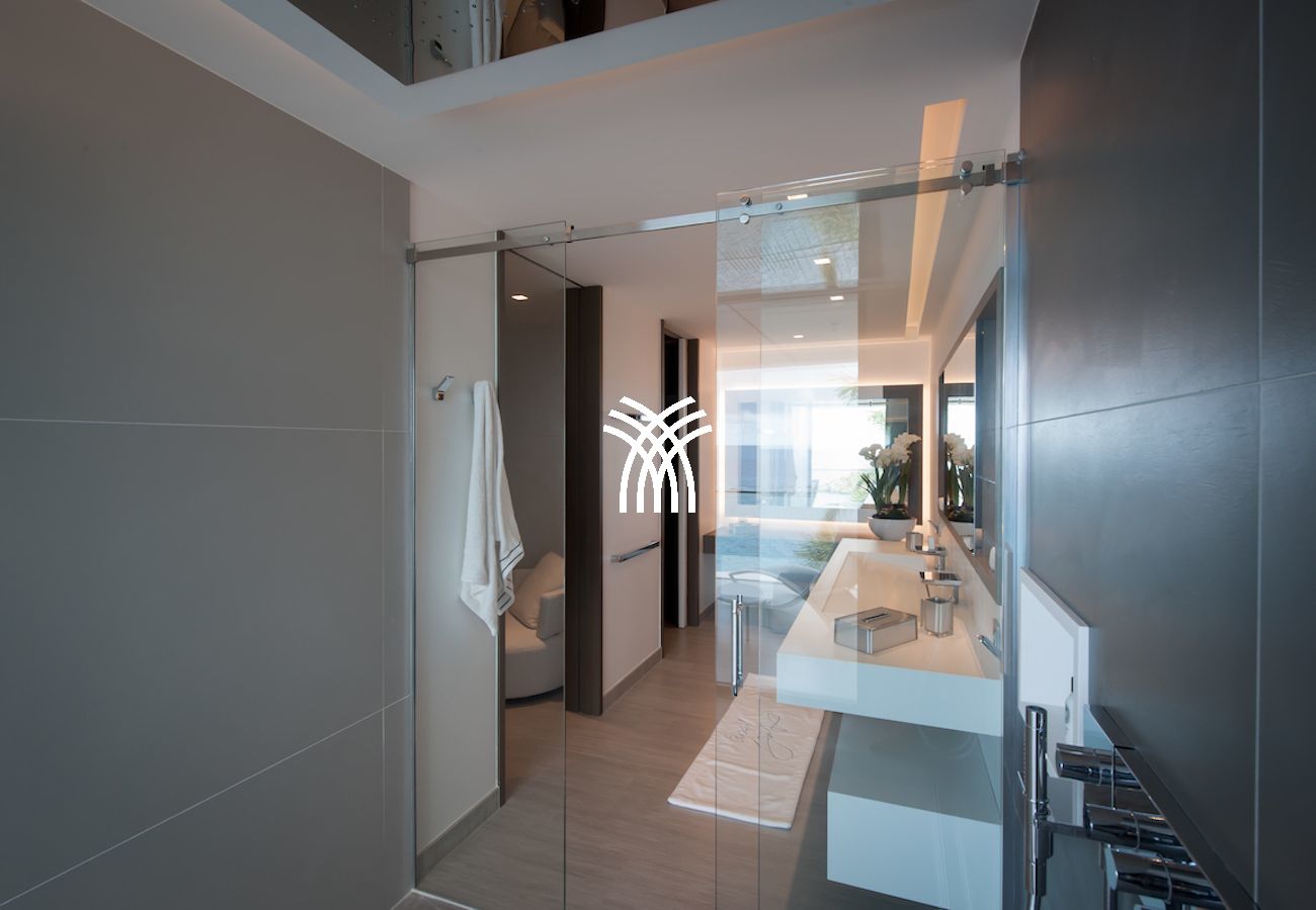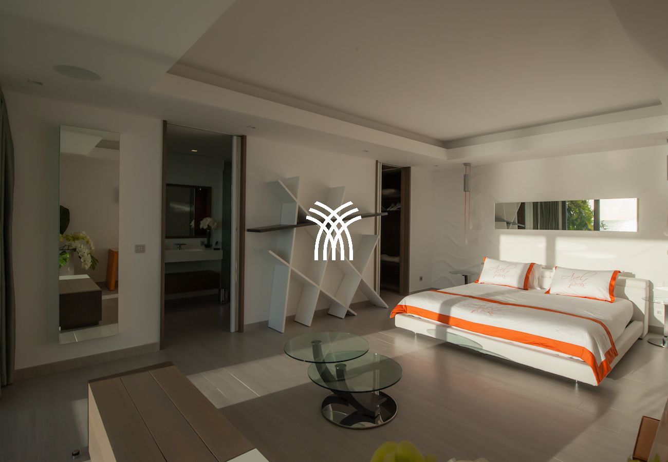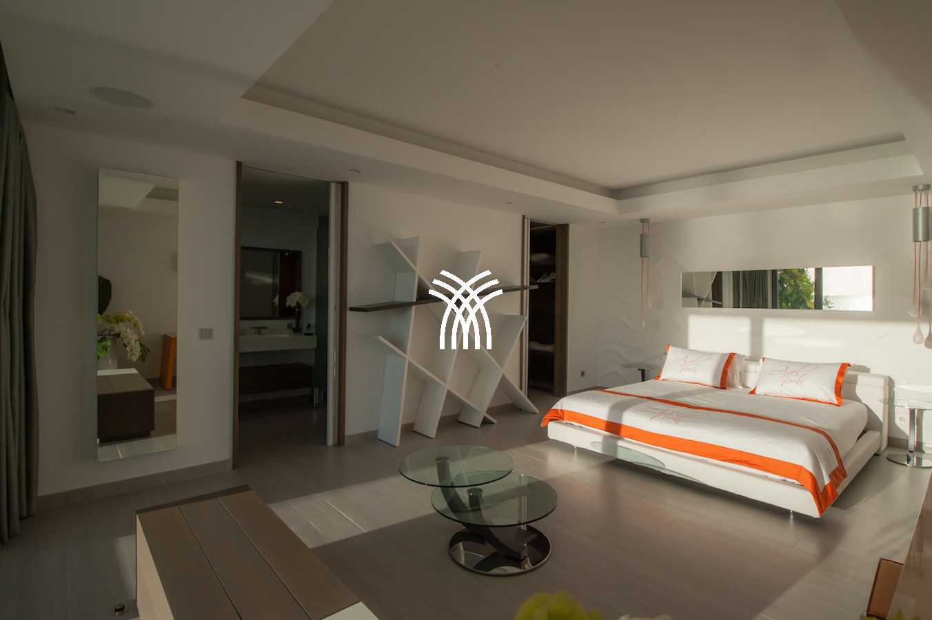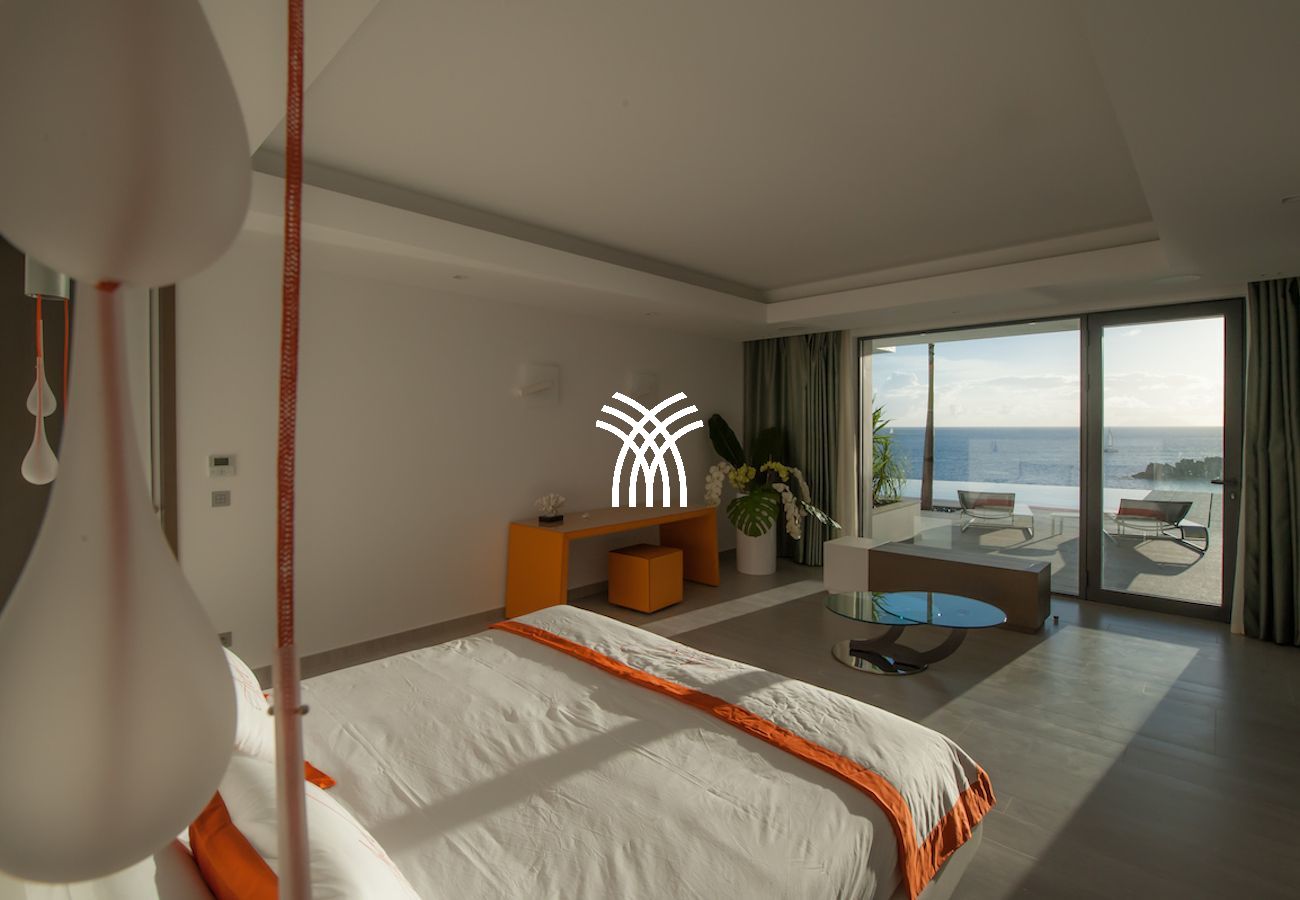 La villa est construite sur 2 niveaux et se compose de 4 suites avec terrasses privées face à l'océan. Au niveau supérieur se trouve l'entrée et 4 suites. La cinquième suite ainsi que les espaces communs et la piscine se trouvent à l'étage inférieur auquel on accède par un somptueux escalier en verre.