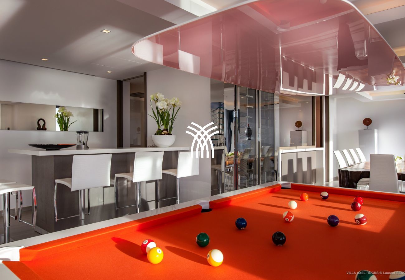 Cette propriété ultra moderne bénéficie de tout le confort d'une villa de haut de gamme: entièrement climatisée, équipement sonore de qualité Sonos, piscine chauffée, cave à vin, billard, caméras de sécurité, coffres-forts...