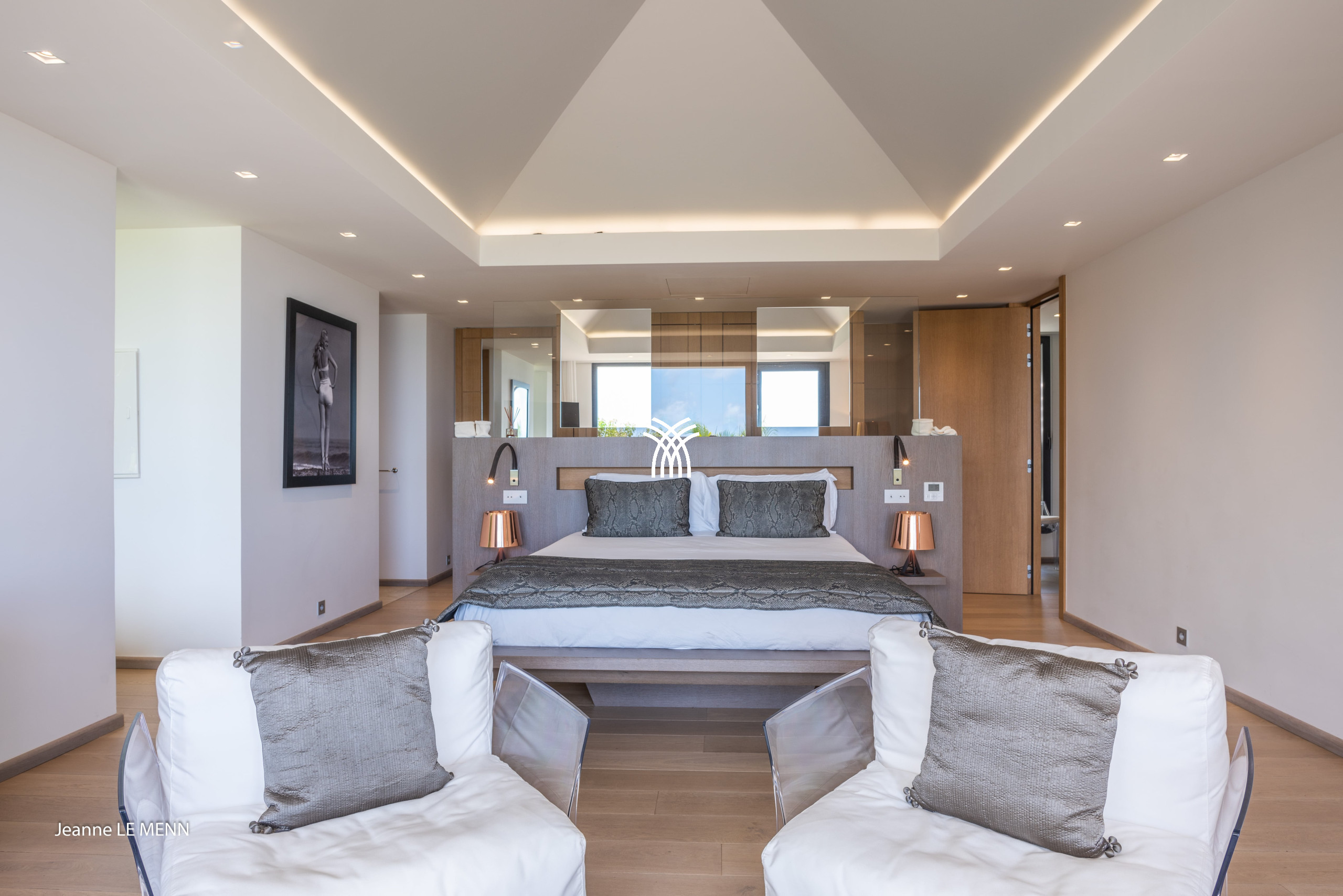 Conçue dans un style contemporain, la Villa Bastide propose trois chambres climatisées de même taille, toutes avec salle de bain privative et vue sur l’océan. Que vous voyagiez en couple, en famille ou entre amis, chaque invité bénéficie d’un confort équitable et d’une totale intimité.