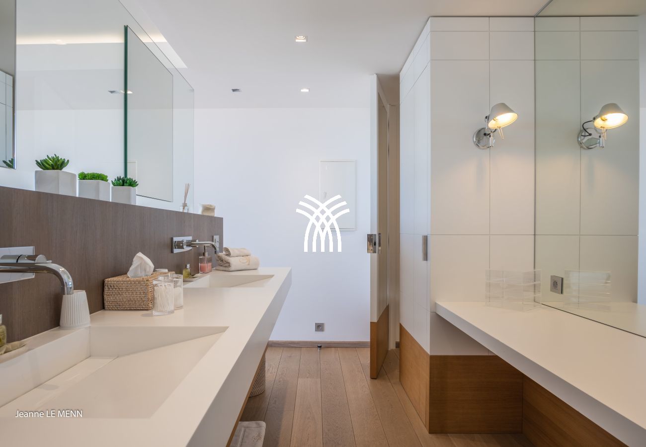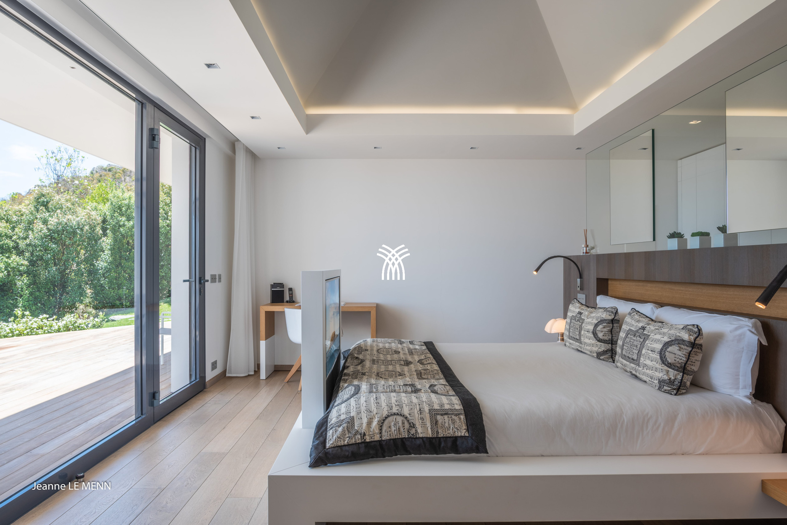 La villa s’articule autour d’une vaste terrasse panoramique prolongée par une piscine élégante à débordement. Les espaces de vie ouverts sont baignés de lumière naturelle et combinent un salon confortable, une cuisine ouverte haut de gamme et une salle à manger pouvant accueillir 8 convives.