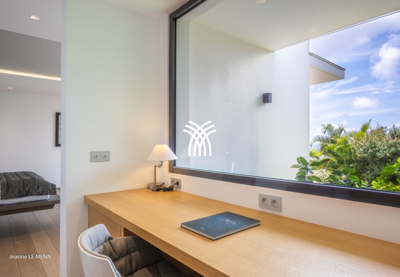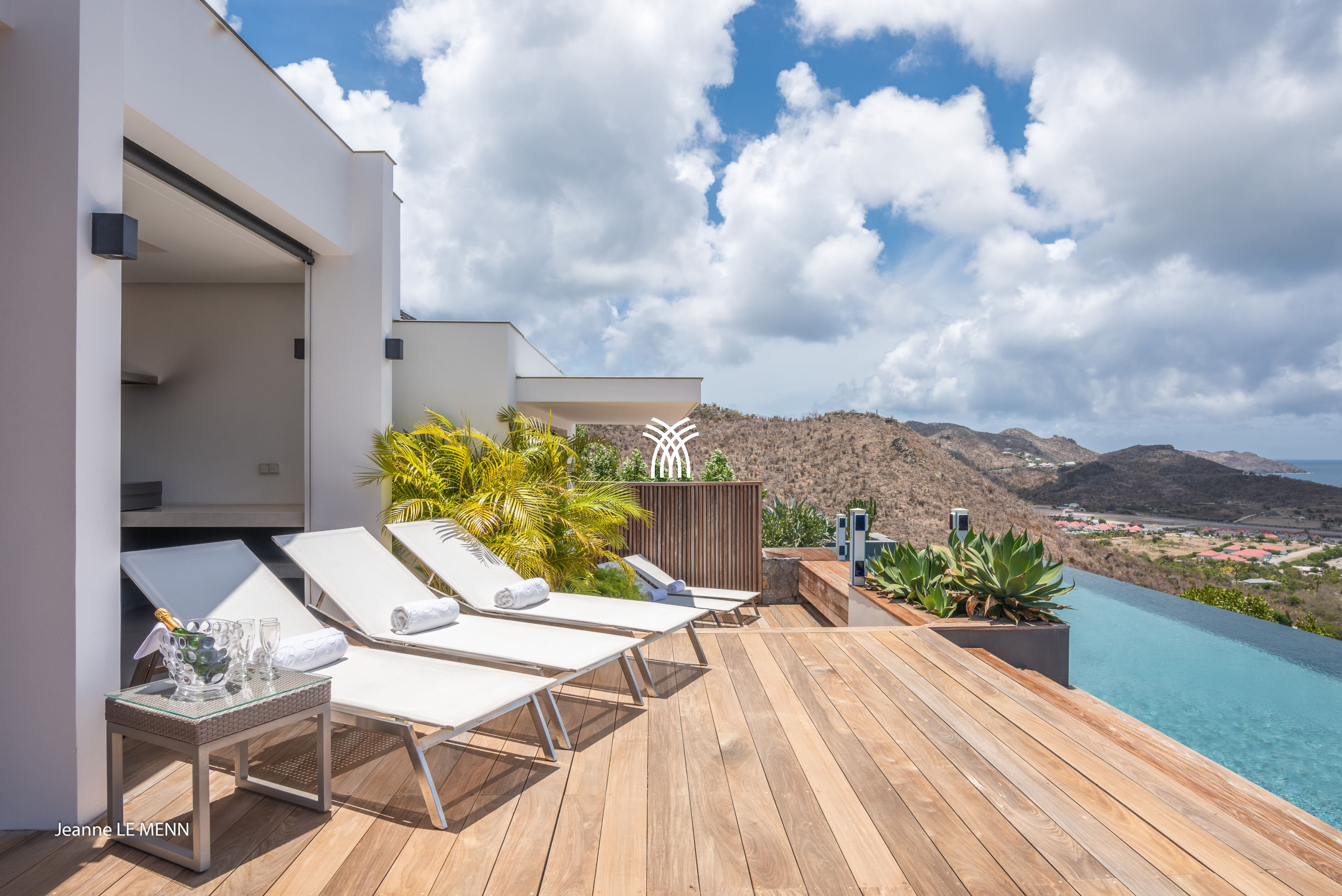 La Villa Bastide est une villa de luxe à louer à St Barth, perchée sur les hauteurs prisées de Lurin. Cette location villa luxe St Barth offre une vue panoramique spectaculaire sur la baie de Saint-Jean et la mer des Caraïbes, un cadre exceptionnel pour des vacances de rêve dans les Antilles françaises.