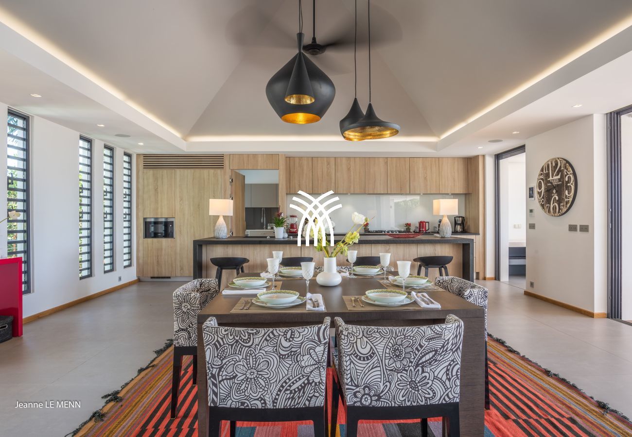 Vous apprécierez son salon ouvert sur la piscine. Toute la villa est orientée vers l’océan