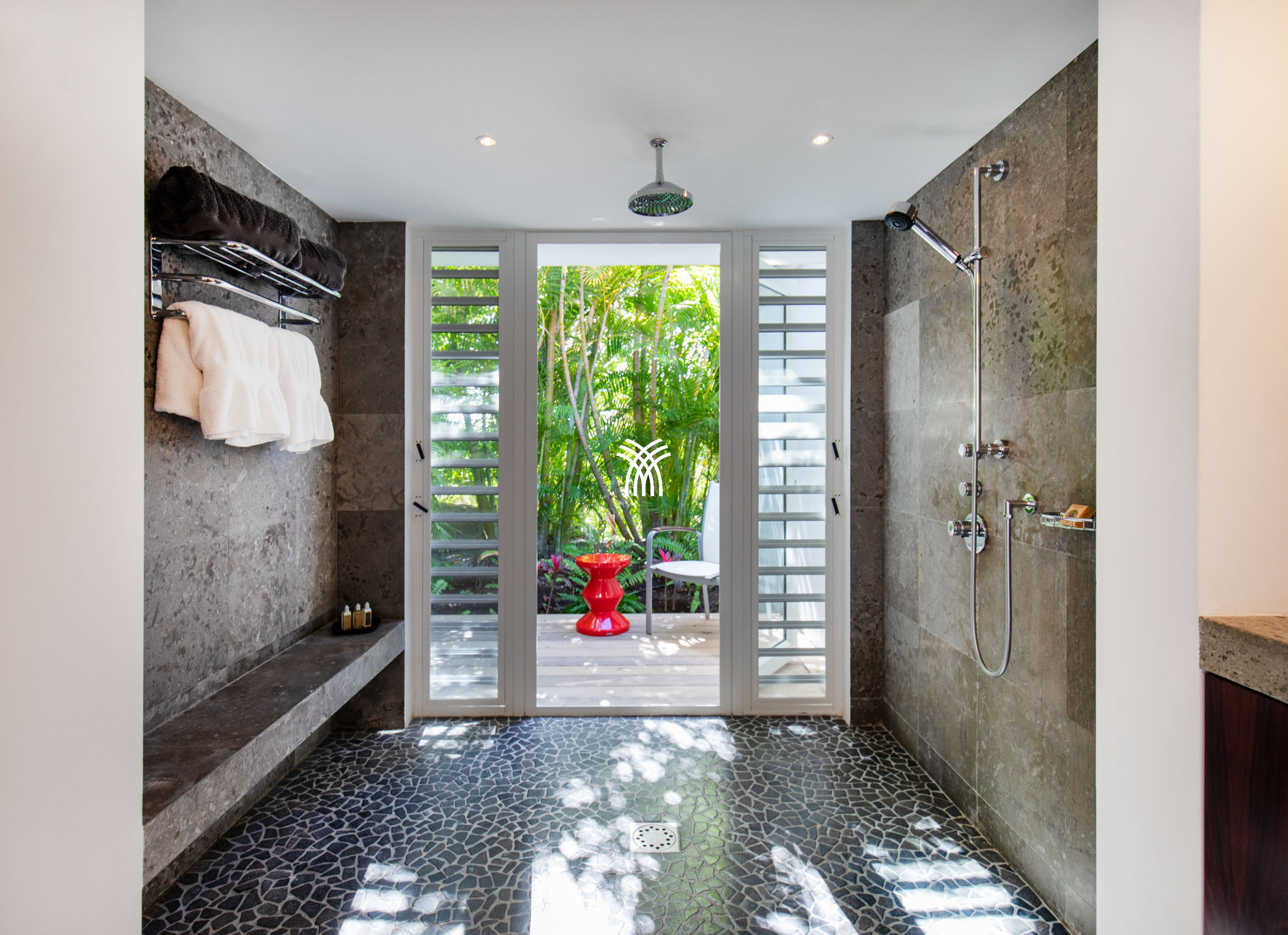 Chaque chambre est nichée sur un niveau indépendant, garantissant intimité et tranquillité, et dispose de sa terrasse privée avec jacuzzi, de sa salle de bains attenante, d’une literie haut de gamme et d’un décor soigné mêlant modernité et matières naturelles.