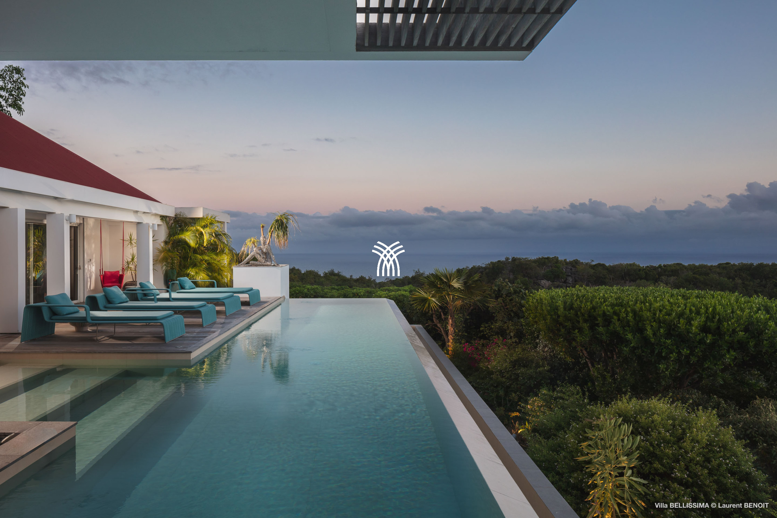 Cette villa de location de luxe offre une vue exceptionnelle sur l’océan et le coucher de soleil.