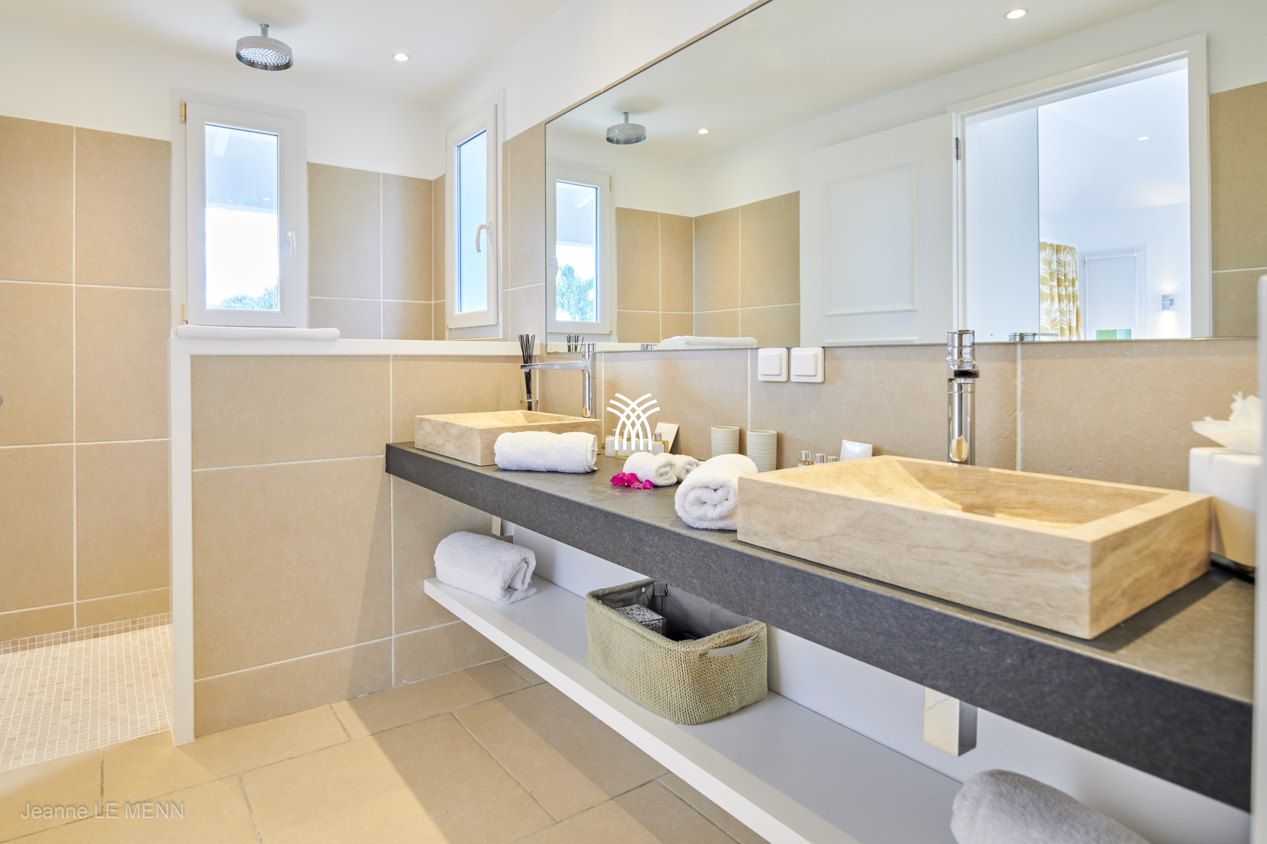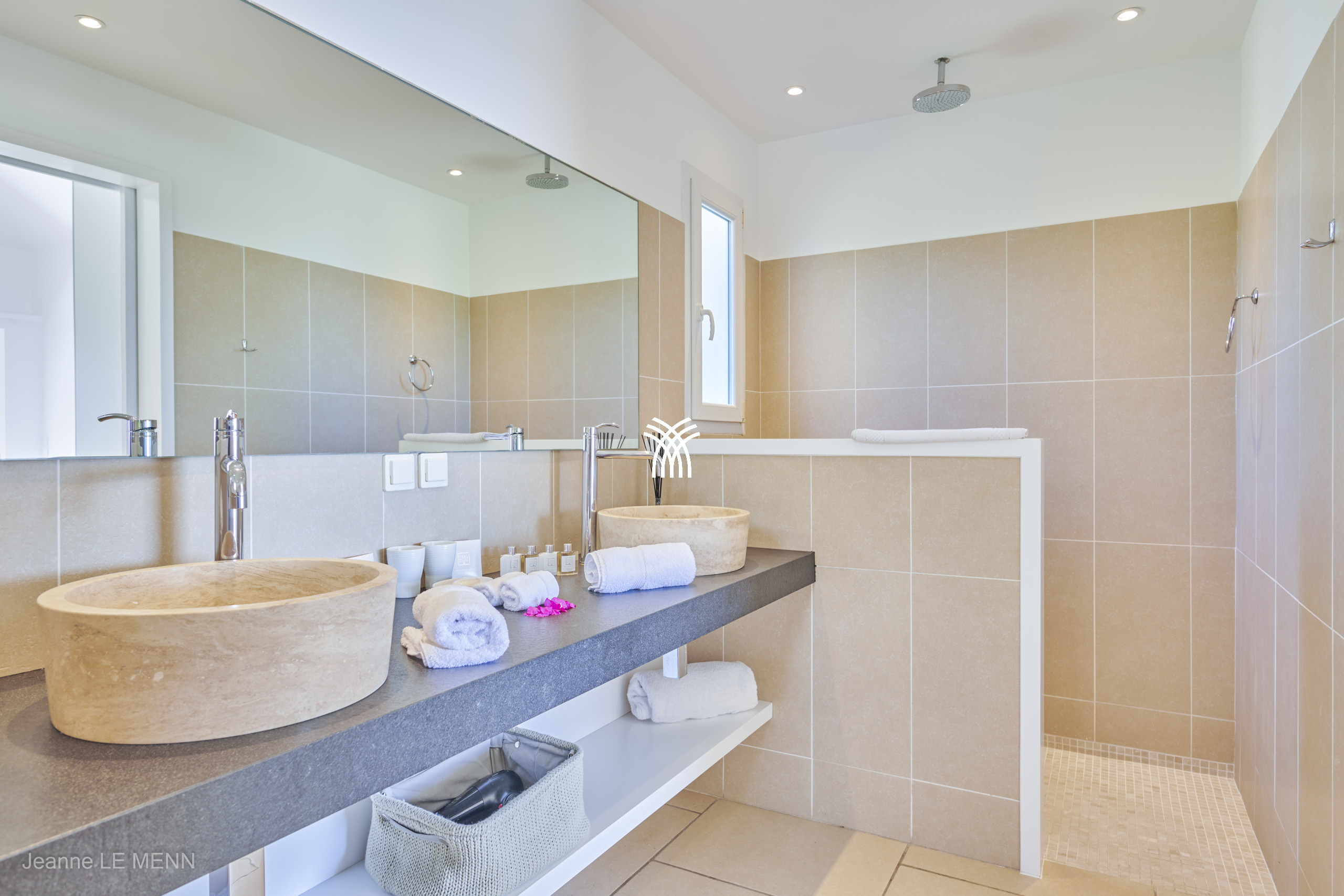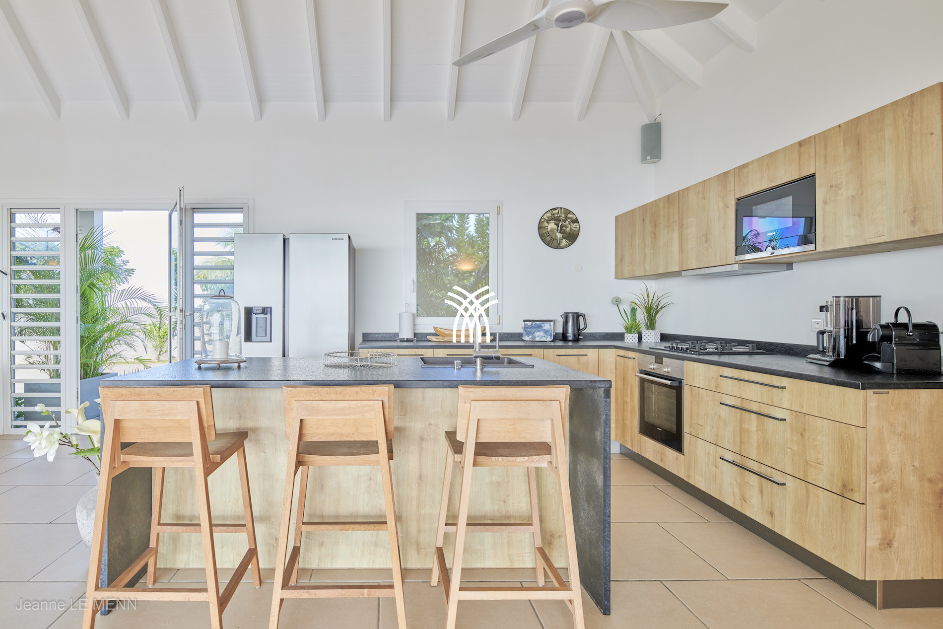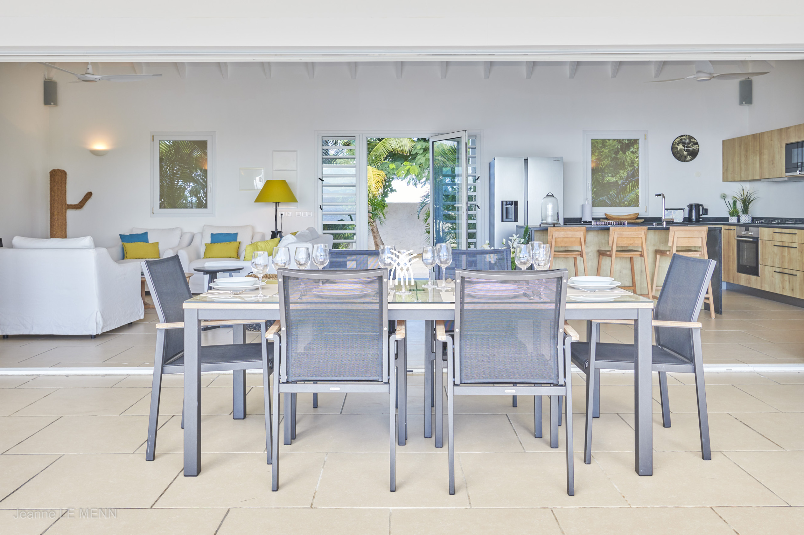 Vous apprécierez son salon ouvert sur la piscine. Toute la villa est orientée vers l’océan