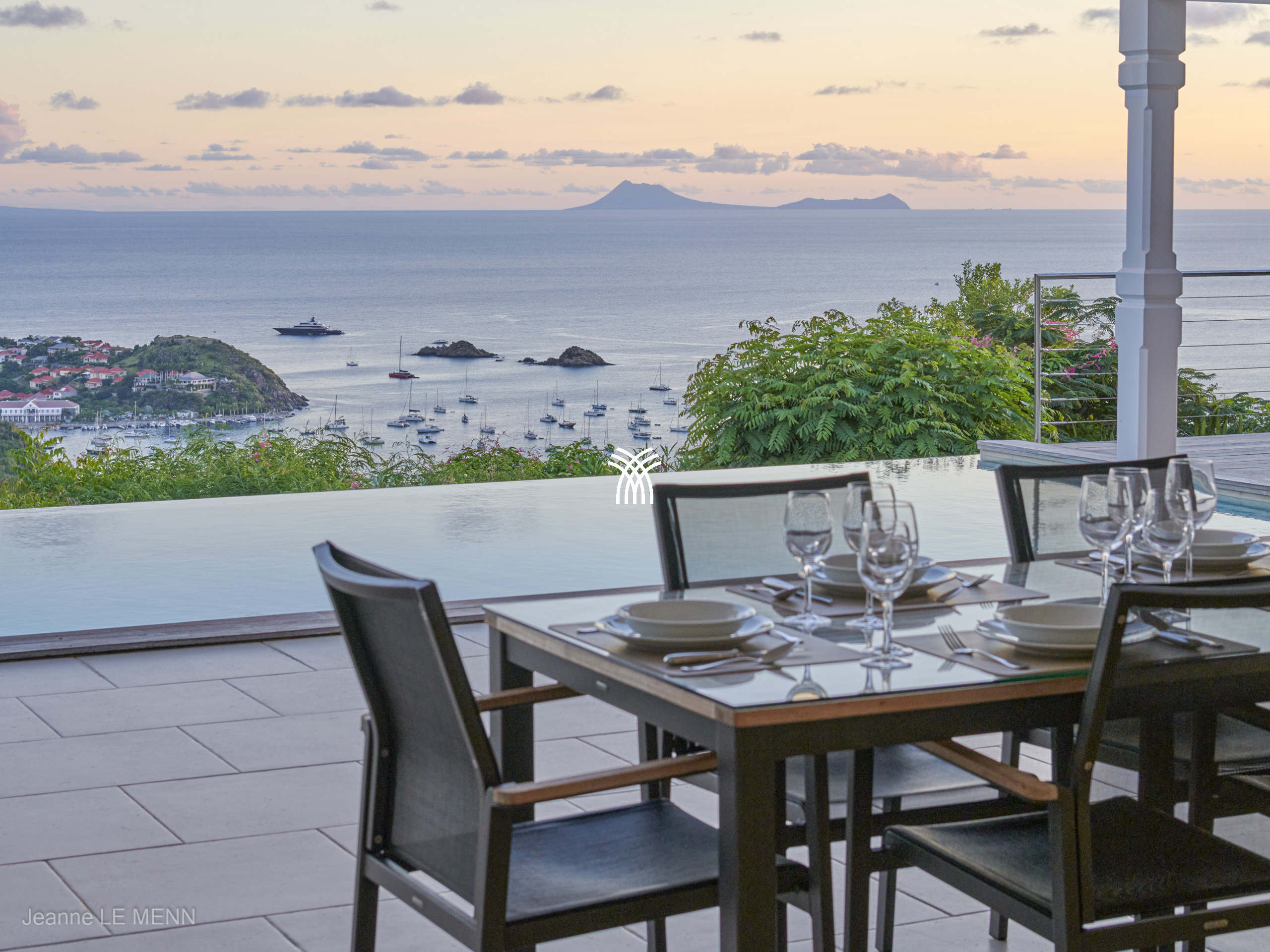 La Villa Cactus est une villa de luxe à louer à St Barth, perchée sur les hauteurs de Colombier. Offrant une vue spectaculaire sur l’océan et l’entrée du port de Gustavia, cette location villa luxe St Barth est parfaite pour un séjour paisible en famille ou entre amis.