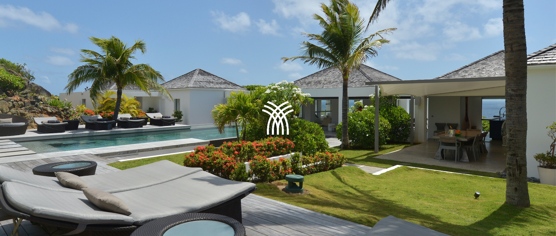 La villa Dunes St Barth est une des plus grande et spacieuse villa de l’île de Saint - Barthélemy. Vous pourrez profiter de deux immenses piscines chauffées et d'un jardin flamboyant