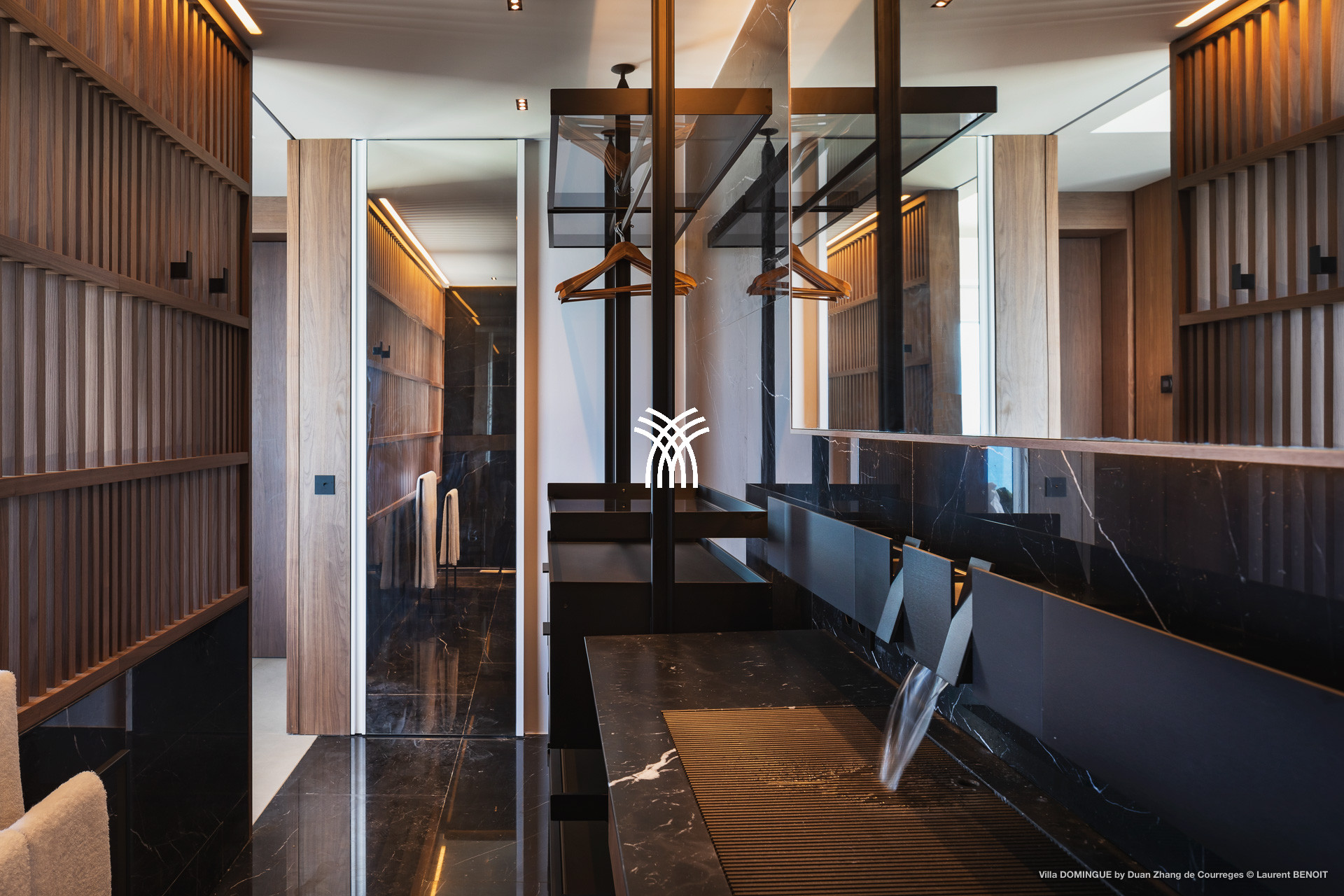La villa dispose de 3 chambres avec salles de bain privatives, aménagées avec raffinement dans un style contemporain alliant bois exotiques, teintes douces et matériaux naturels. Chaque espace est pensé pour la détente, avec des ouvertures sur l’extérieur et une lumière naturelle omniprésente.