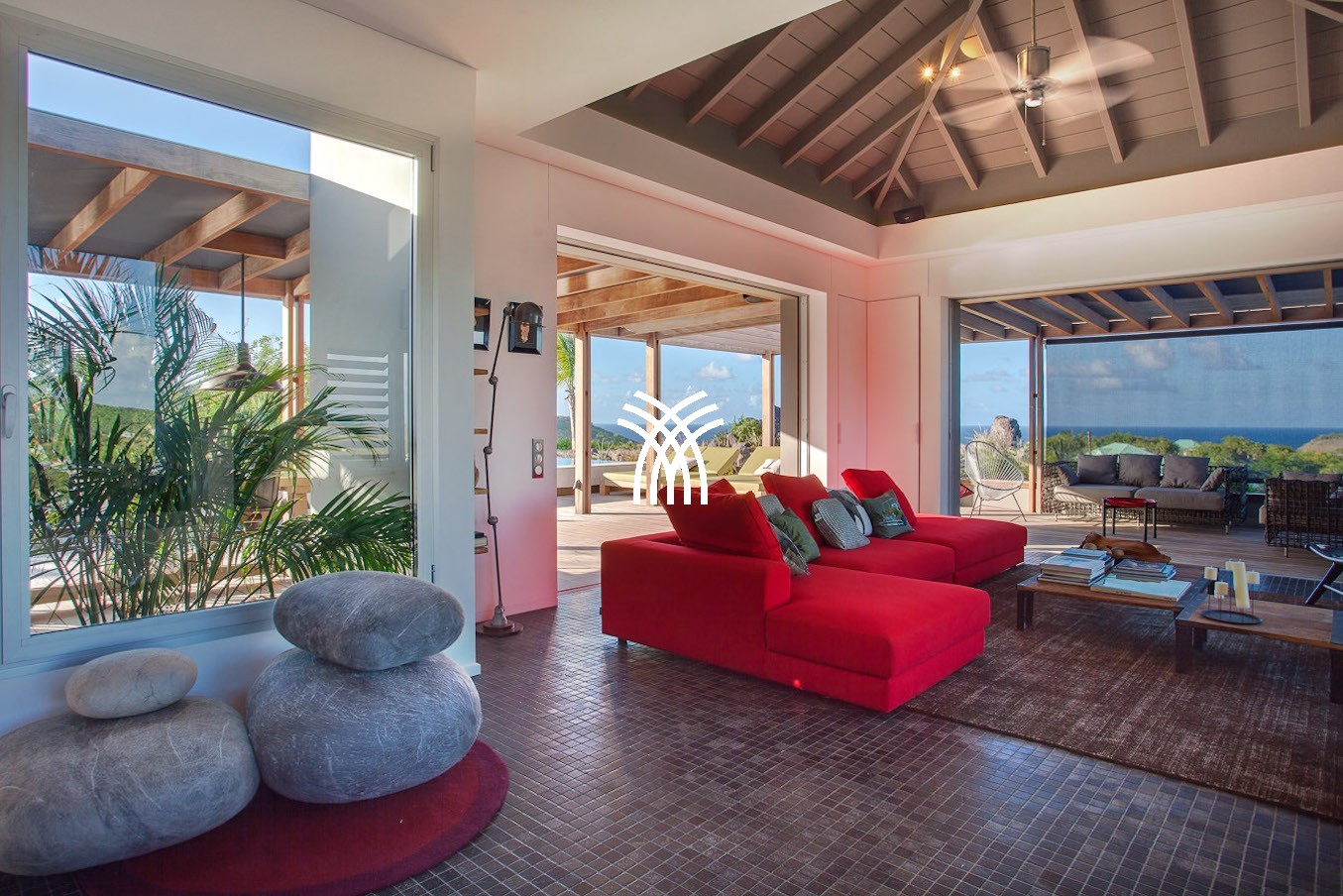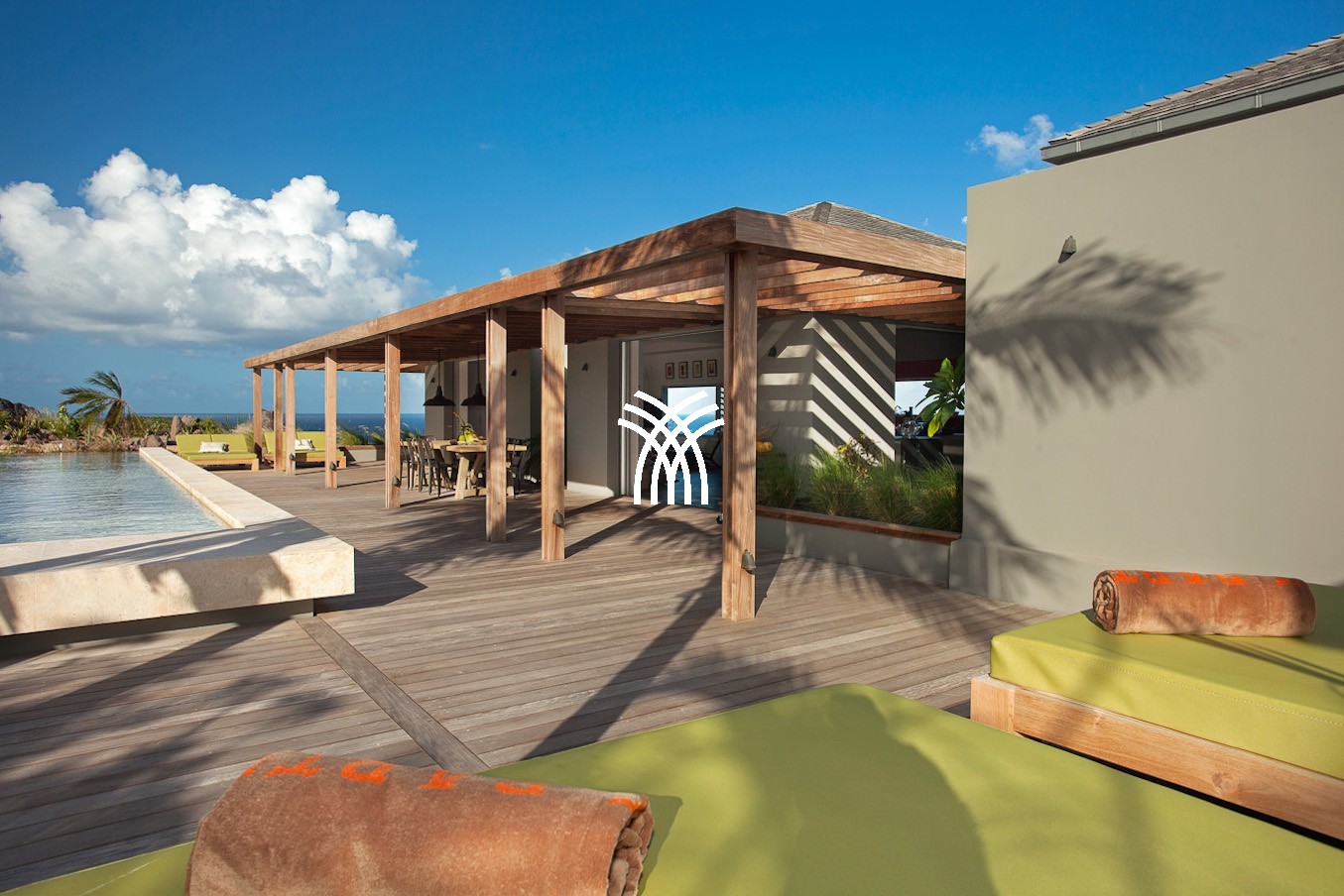 La villa Imagine à St Barth fait face à l'Est. Elle est construite de manière à juste profiter d'une légère brise sur la terrasse
