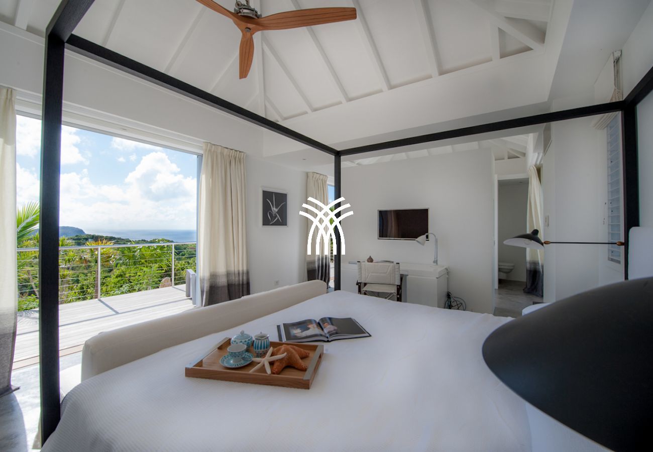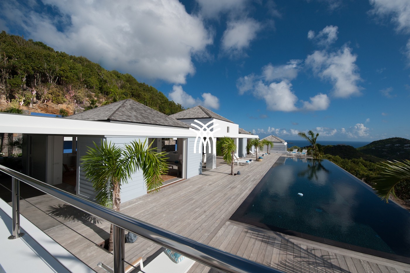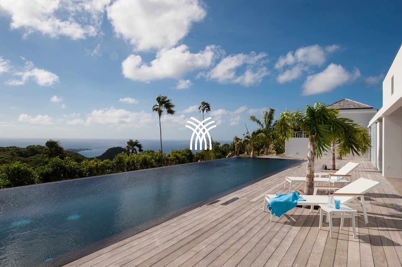 Située dans un domaine privé de Gouverneur, la Villa Jasmine St Barth possède une vue exceptionnelle à 180° de la baie de Gouverneur à la baie de Saint-Jean.