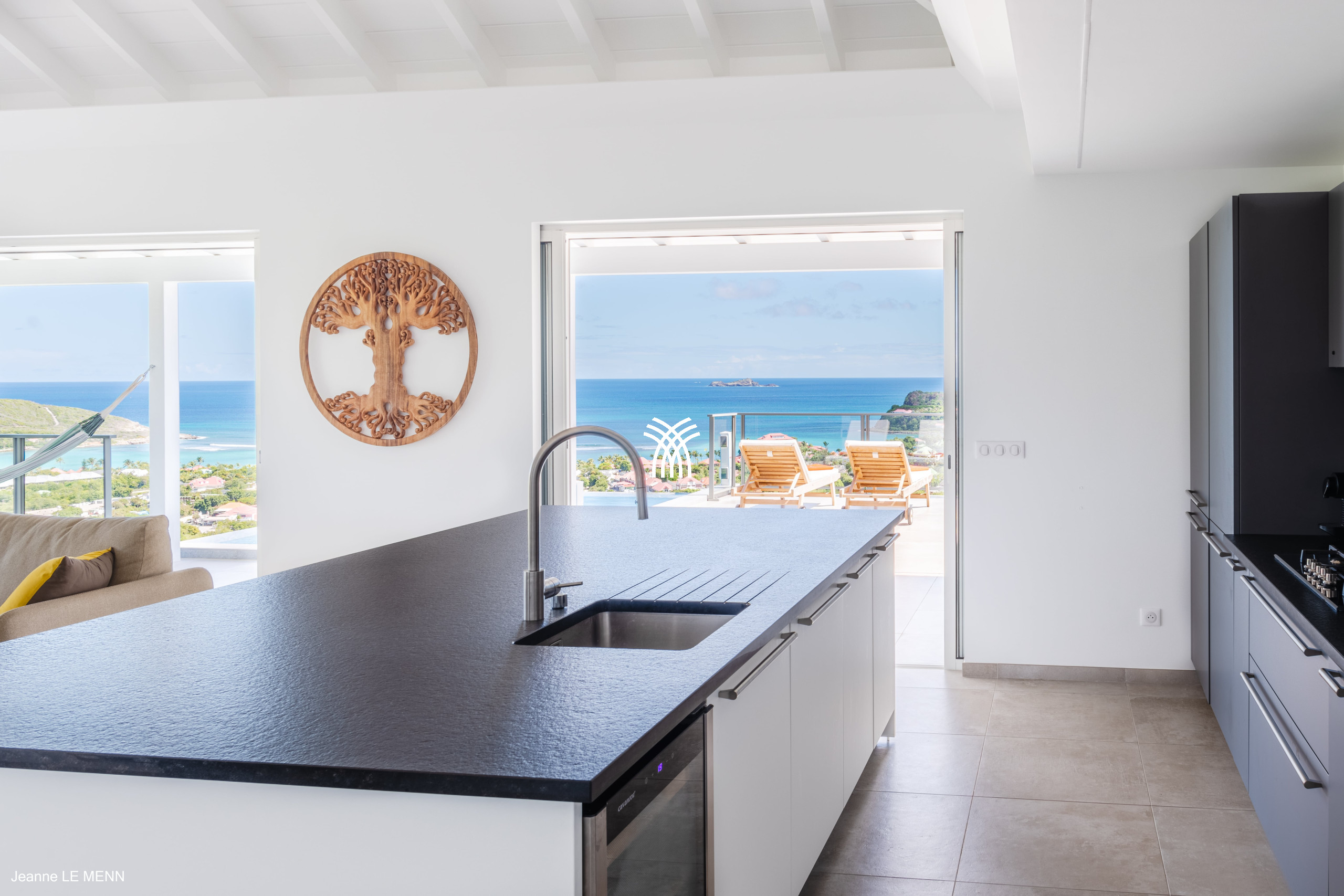 Vous apprécierez son salon ouvert sur la piscine. Toute la villa est orientée vers l’océan