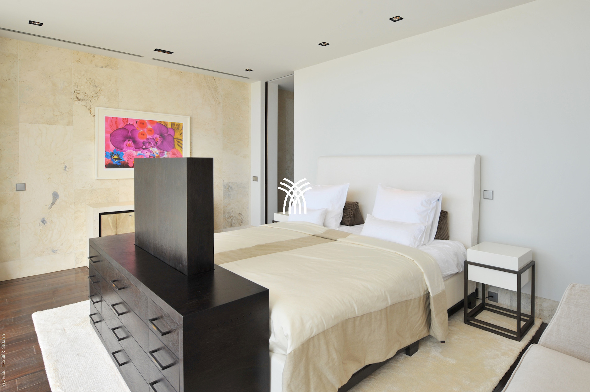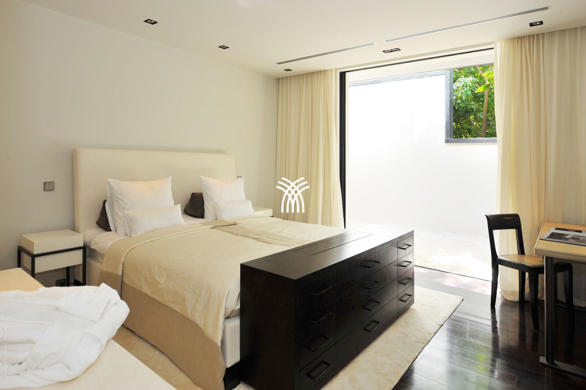 Construite en 3 différents modules. Dans l'unité principale se trouvent la cuisine ultra moderne ouverte sur une grande salle de séjour avec sa salle à manger et la chambre principale. La deuxième unité est composée de deux chambres. La dernière chambre est située dans un bungalow séparé. Toutes les chambres ont une vue sur l’océan, des lits King size et leur propre salles de bain. Une pièce TV avec trois sofas, qui peuvent être convertis en trois lits de une place, est située à l'arrière de l'unité principale.