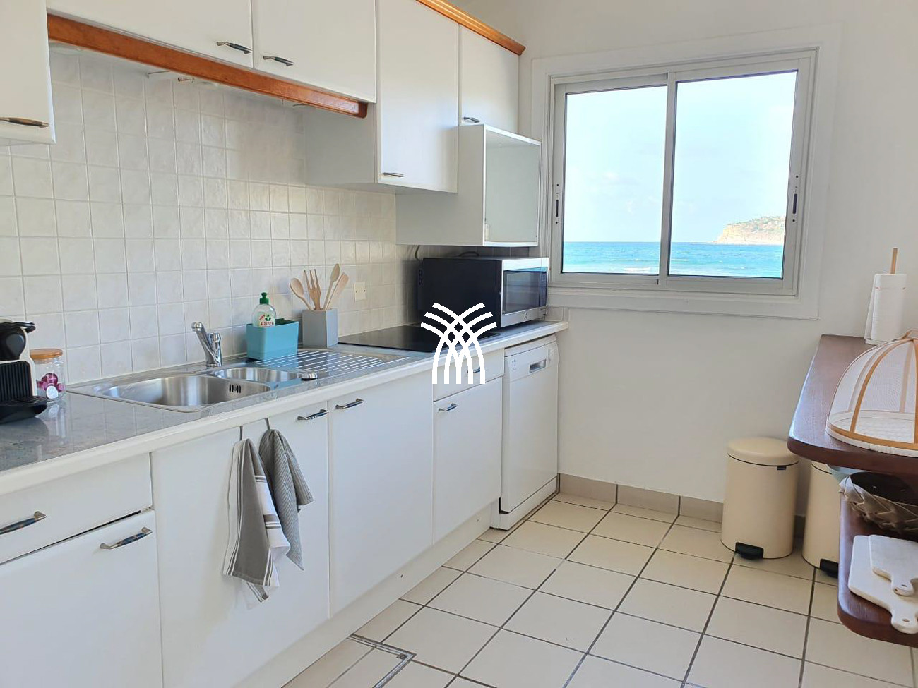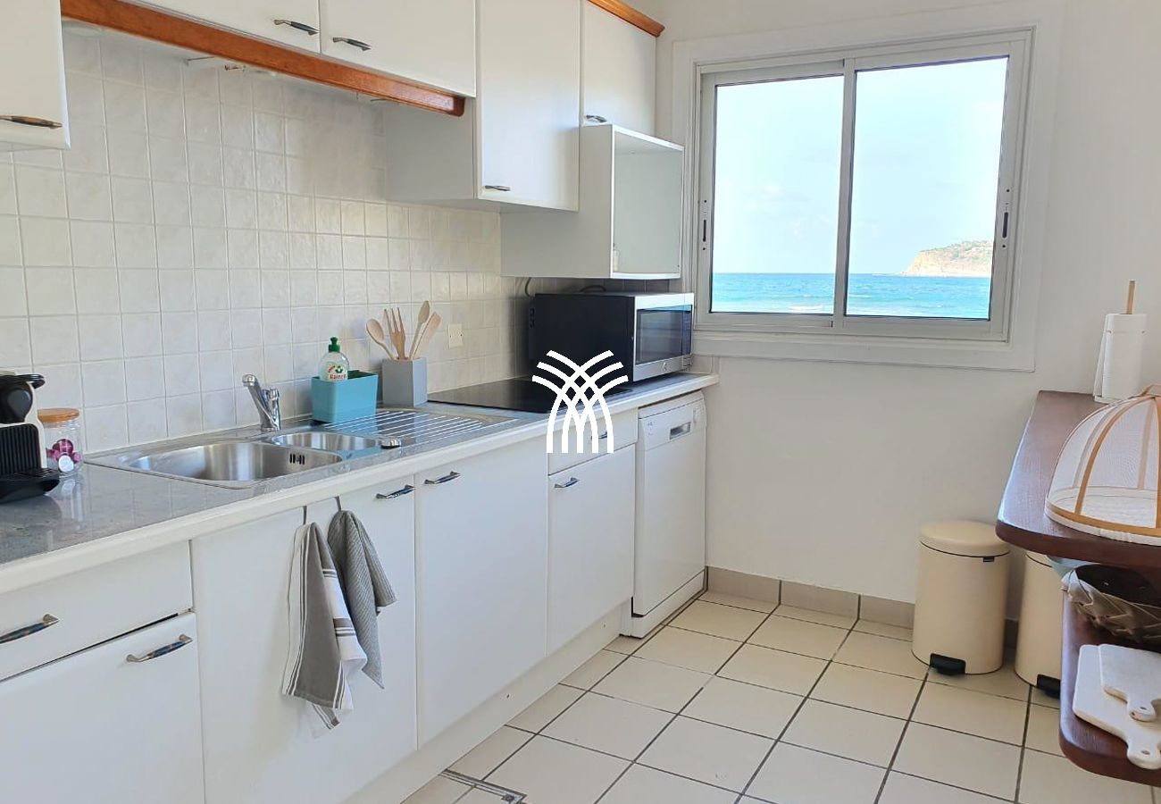 La cuisine moderne, entièrement équipée, donne directement sur la piscine à débordement, offrant une vue imprenable sur l’océan. Vous pourrez vous y détendre à toute heure de la journée, en admirant les voiliers au loin et les couchers de soleil spectaculaires.