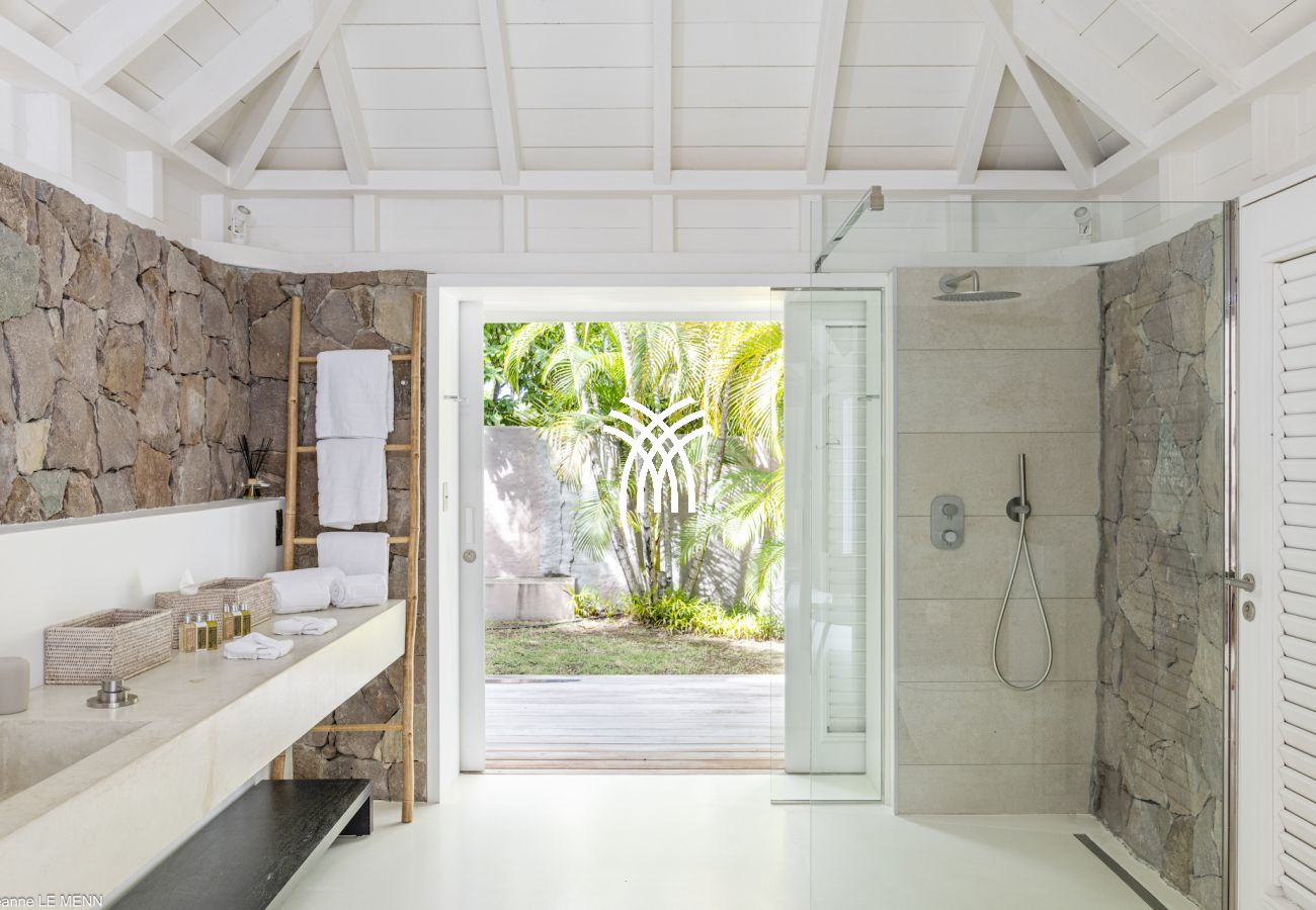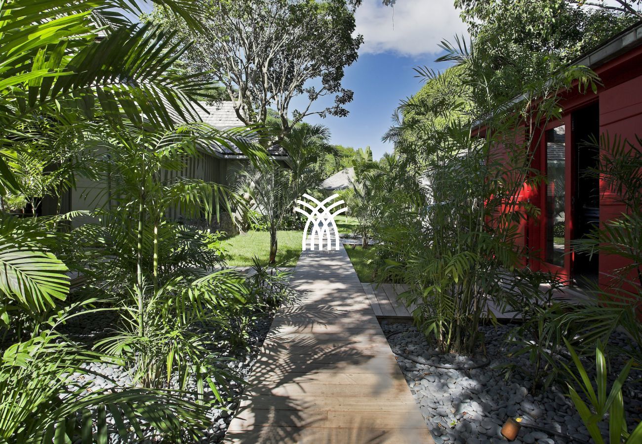La villa principale est composée d'un grand salon, une salle à manger intérieure et extérieure, une cuisine et une mezzanine. Les chemins en deck vous amèneront aux différentes unités de la propriété incluant la partie des enfants avec ses deux chambres (1 lit King et 1 lit King ou jumeaux), trois chambres avec leurs lits King et un espace de détente couvert à côté de la piscine. Chaque chambre possède sa propre salle de bain.